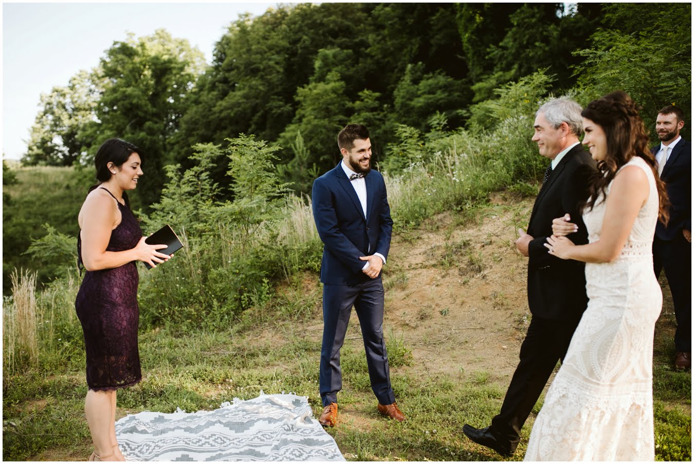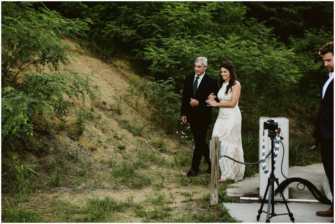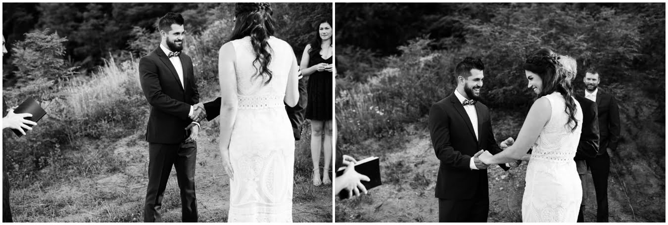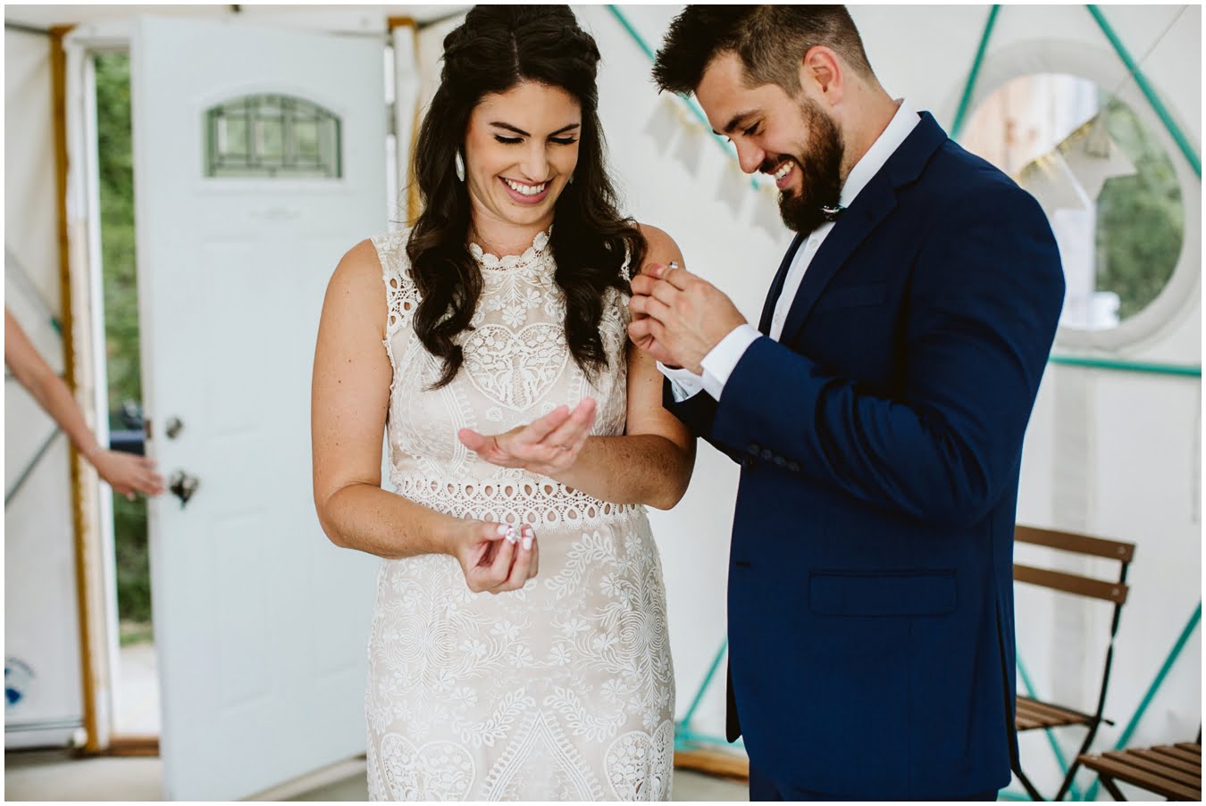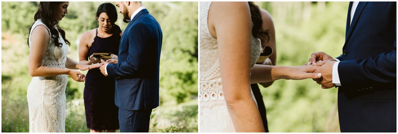 I arrived at Asheville Glamping for their sweet intimate wedding and was immediately greeted by hugs and smiles, even though they were right in the middle of re-arranging everything. They had some issues with the original site for the ceremony, and when I got there all their friends and family were right in the middle of flipping the dome they were staying in to make it the perfect celebration location! It was amazing to watch everyone come together, decorating the dome, setting up the custom donut cake from Suarez Bakery (CHECK IT OUT), and picking out the perfect outdoor spot for their ceremony. Krause ending up throwing on his wedding clothes just outside the dome, using the car window as a mirror to do his hair, and everyone STILL was all smiles!
