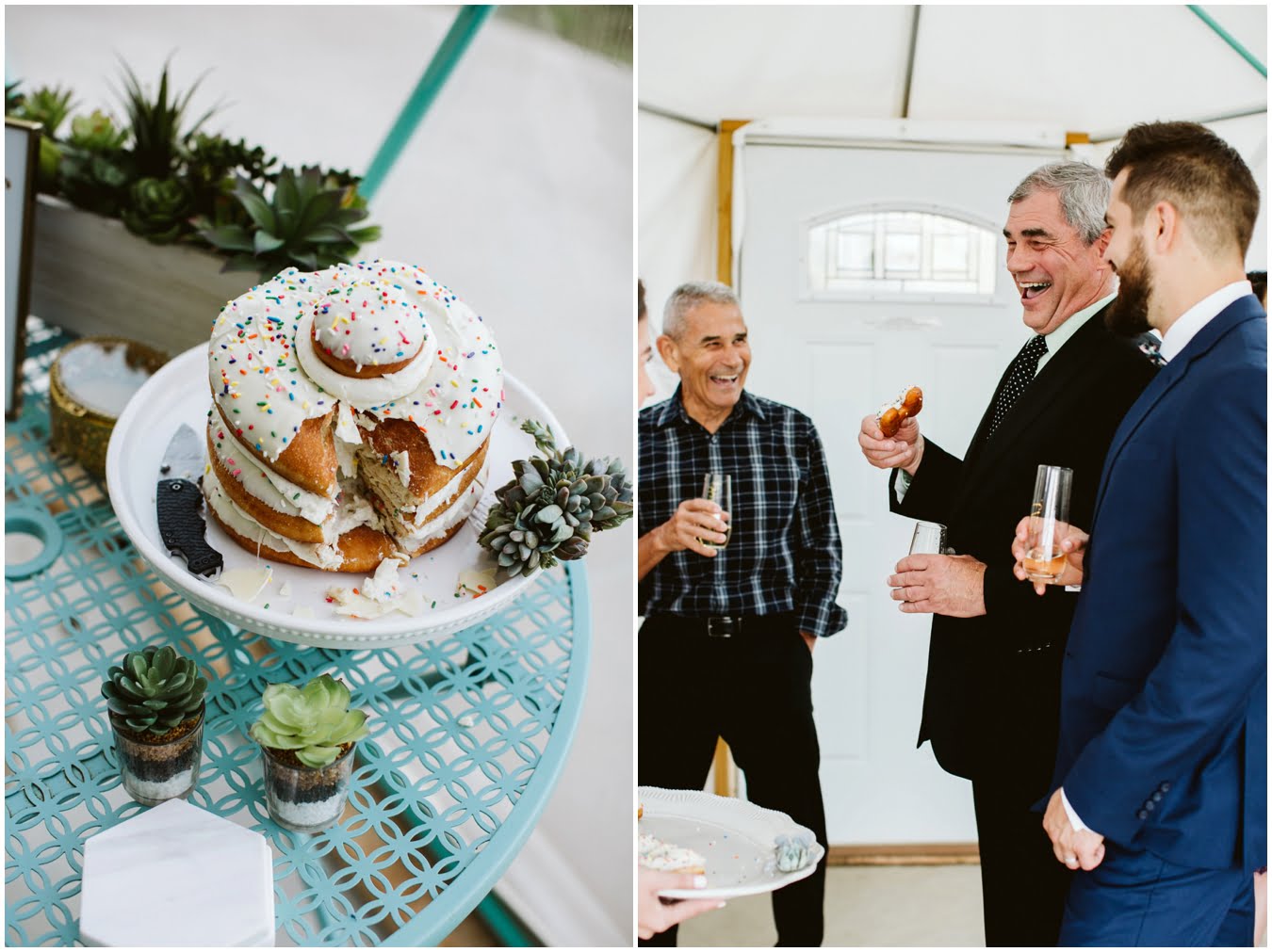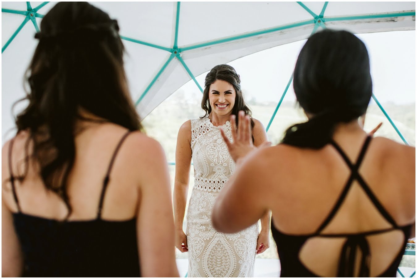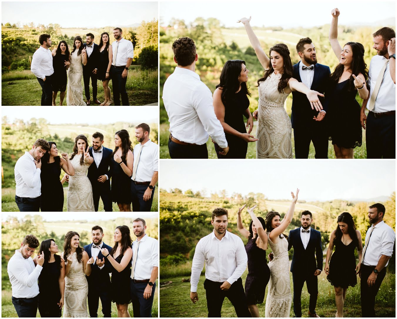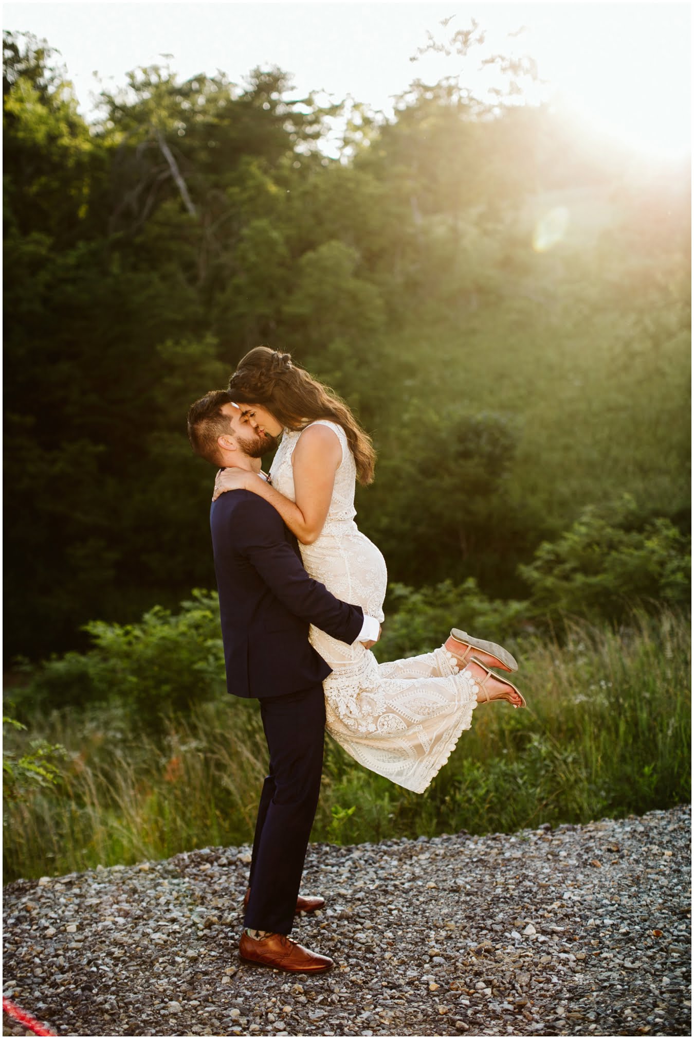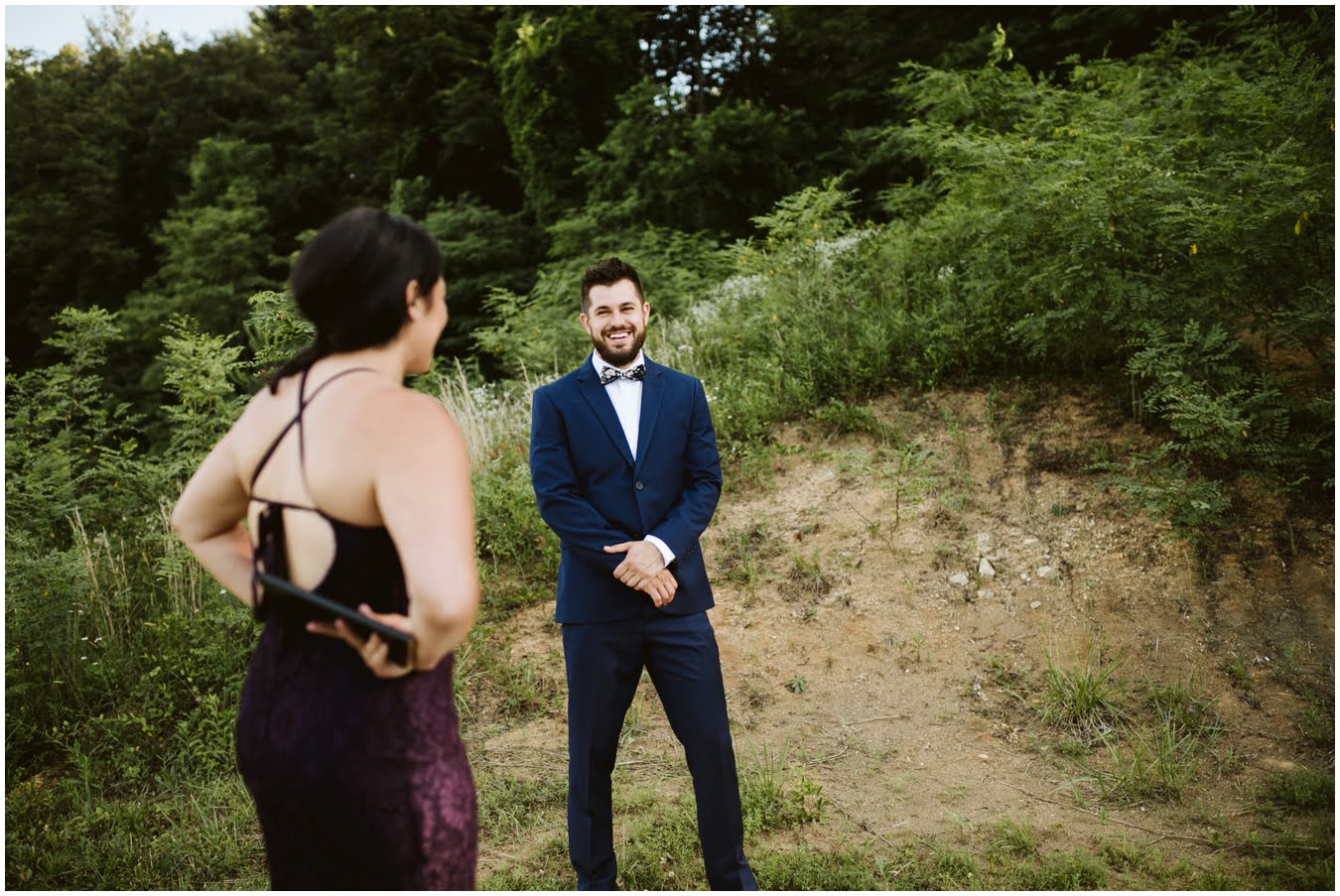 I arrived at Asheville Glamping for their sweet intimate wedding and was immediately greeted by hugs and smiles, even though they were right in the middle of re-arranging everything. They had some issues with the original site for the ceremony, and when I got there all their friends and family were right in the middle of flipping the dome they were staying in to make it the perfect celebration location! It was amazing to watch everyone come together, decorating the dome, setting up the custom donut cake from Suarez Bakery (CHECK IT OUT), and picking out the perfect outdoor spot for their ceremony. Krause ending up throwing on his wedding clothes just outside the dome, using the car window as a mirror to do his hair, and everyone STILL was all smiles!