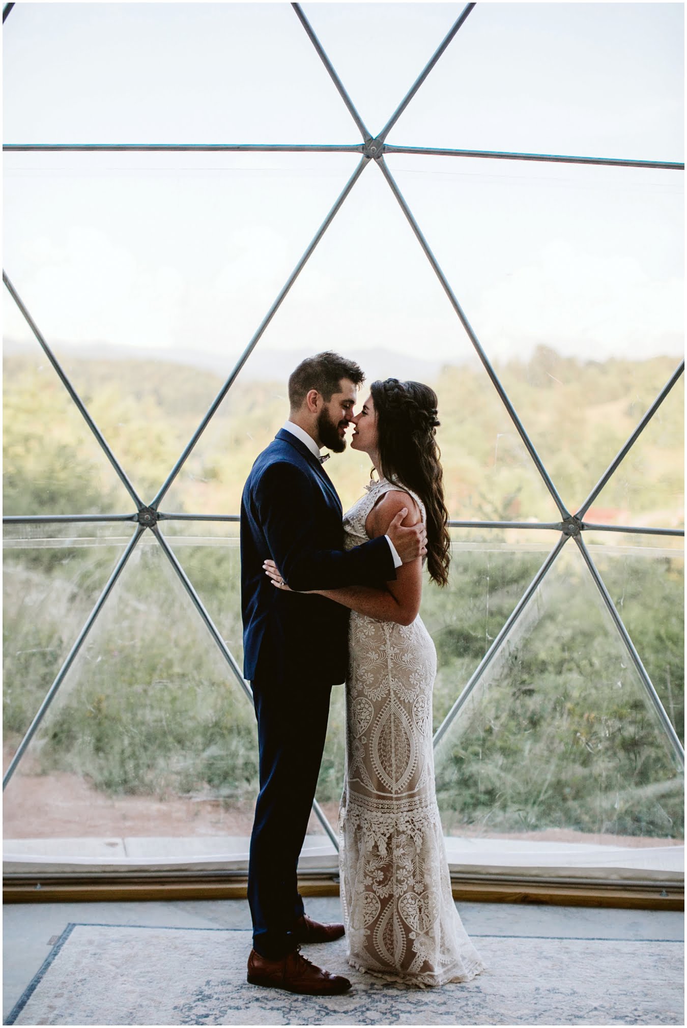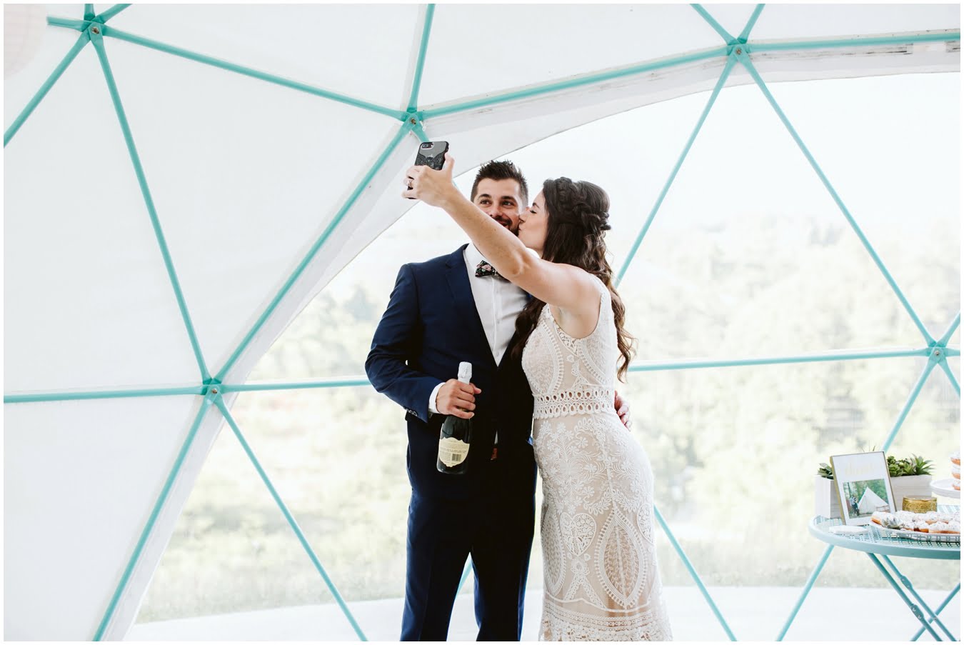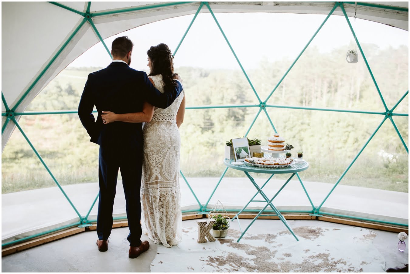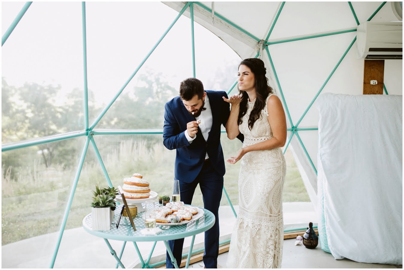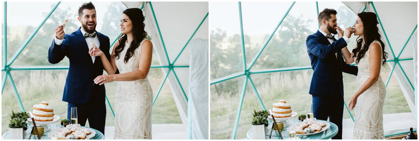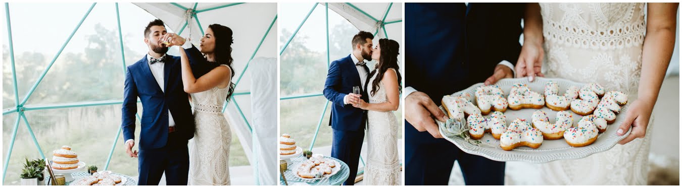 Take a peek into their gorgeous day and enjoy all the sweetness, from the donut cake, to the sunset champagne pop, to the gorgeous snuggly photos in the Mega Dome at Asheville Glamping. I dare you not to grin the whole time 🙂