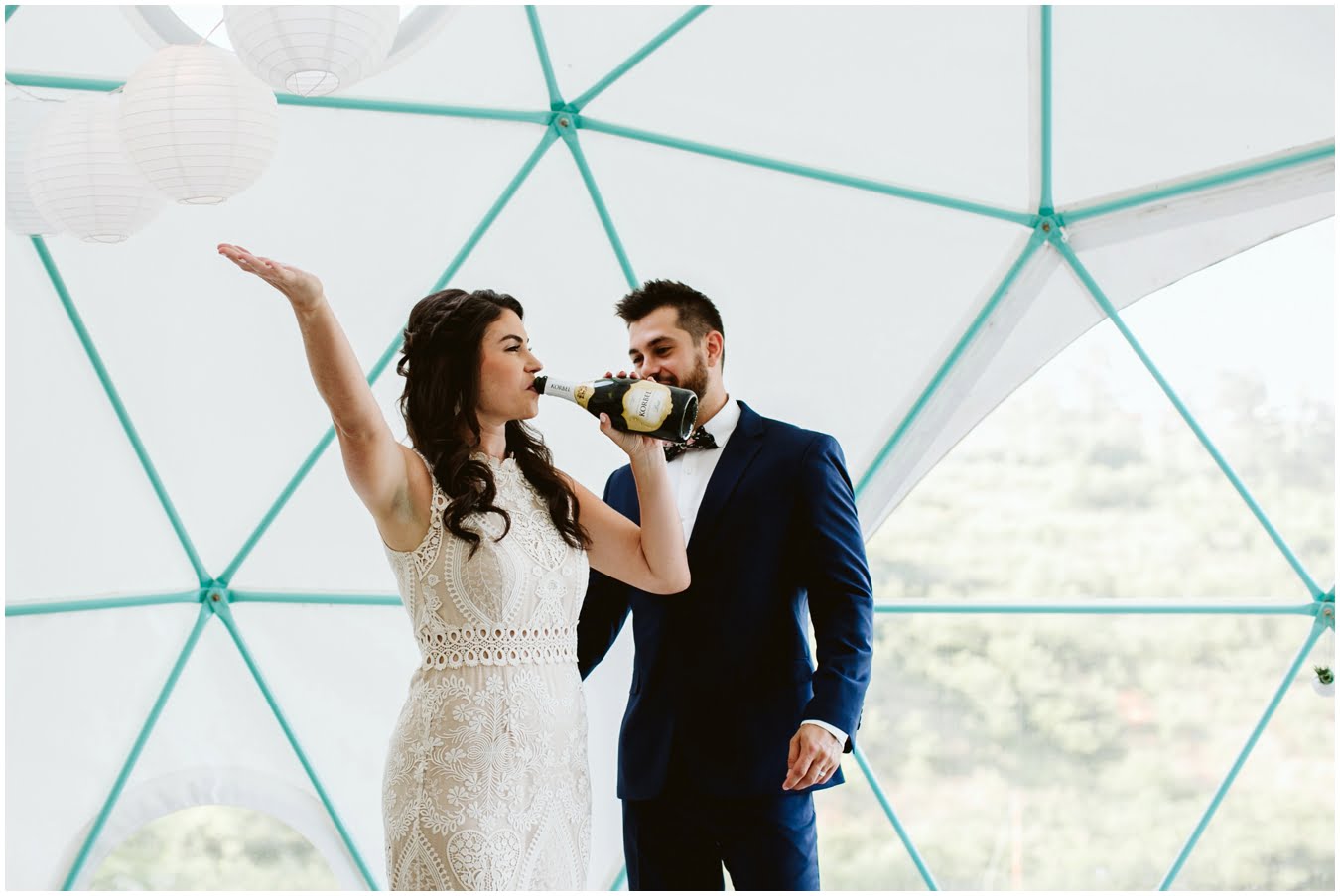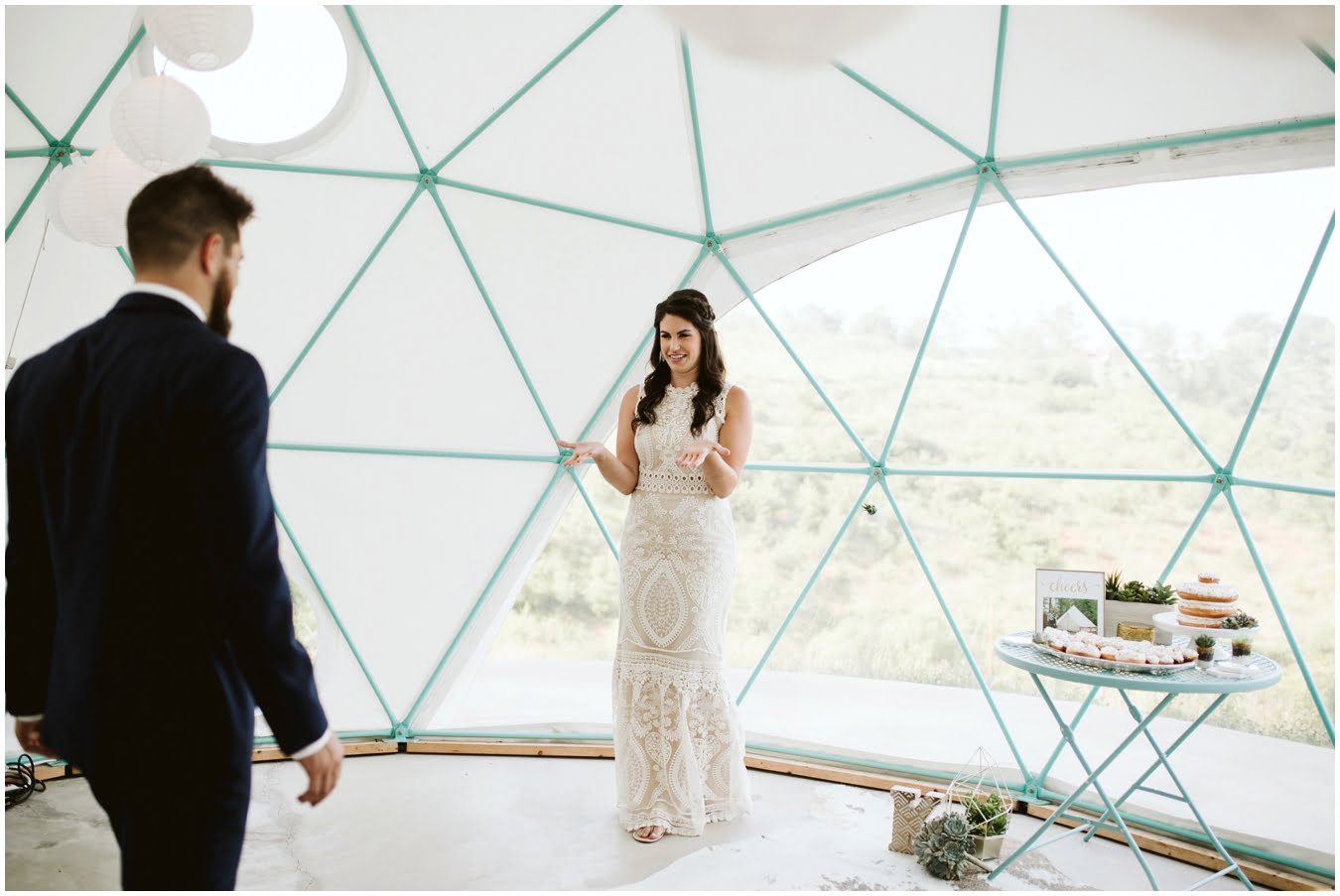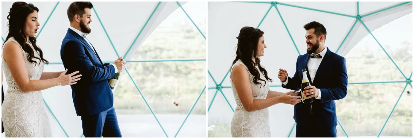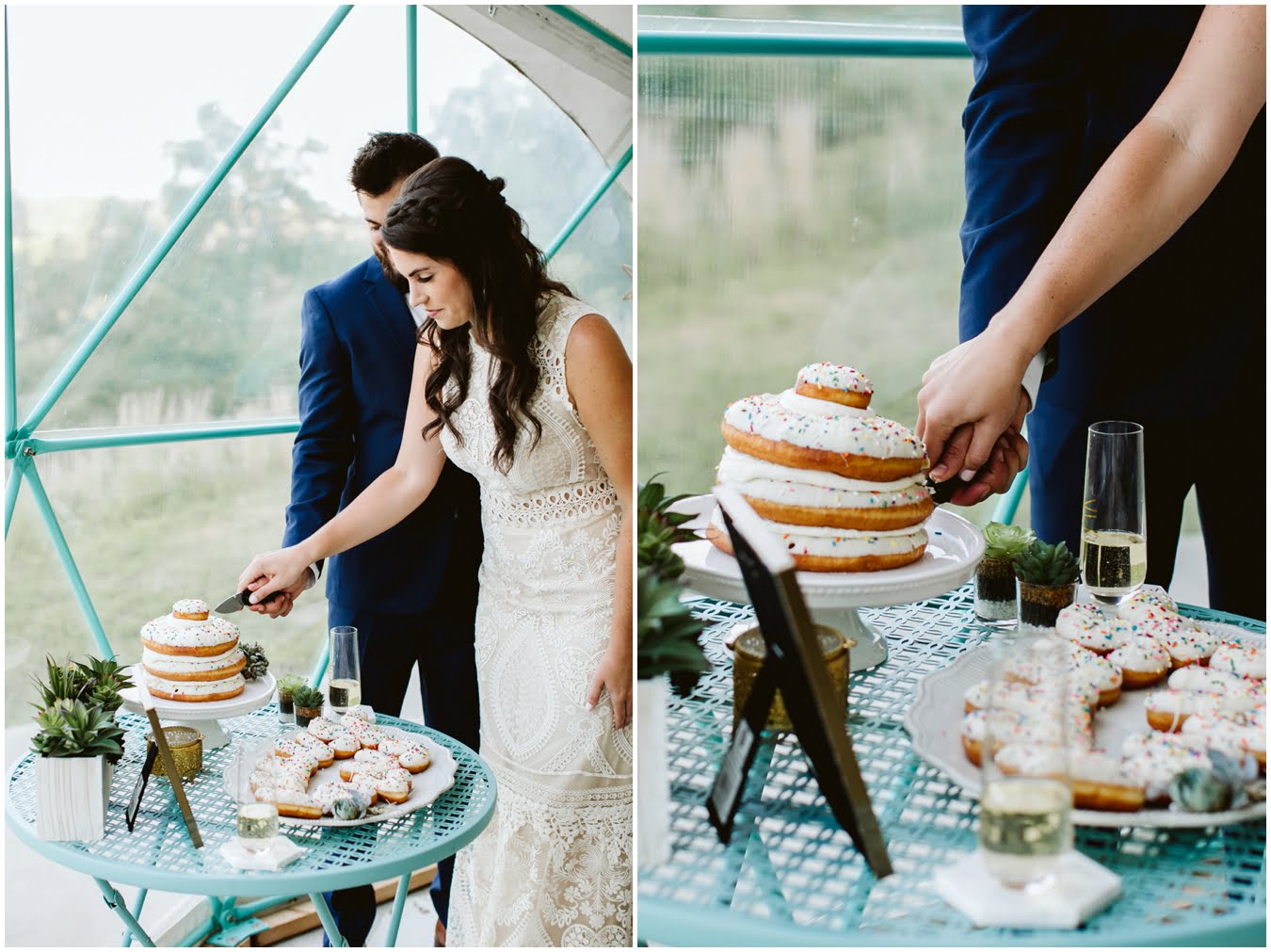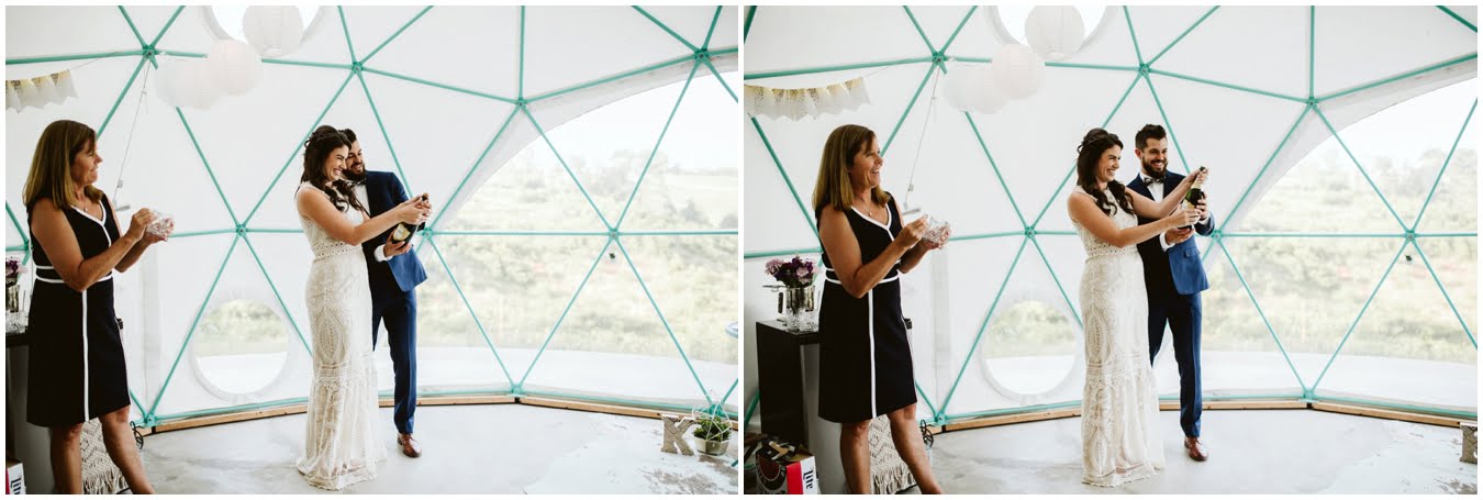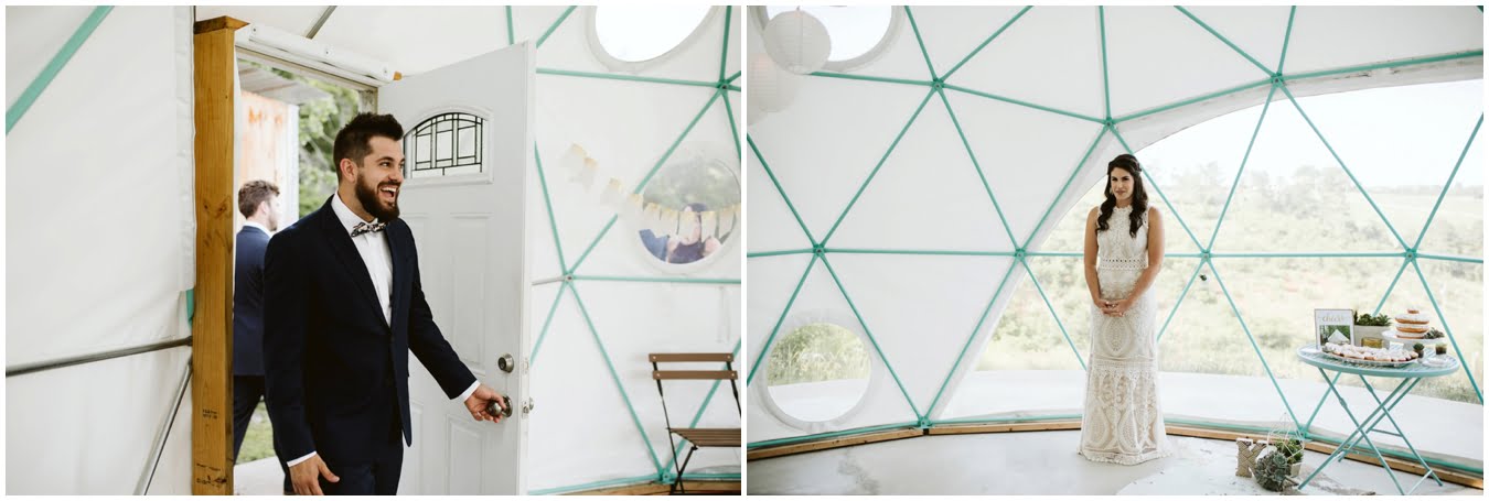 Take a peek into their gorgeous day and enjoy all the sweetness, from the donut cake, to the sunset champagne pop, to the gorgeous snuggly photos in the Mega Dome at Asheville Glamping. I dare you not to grin the whole time 🙂