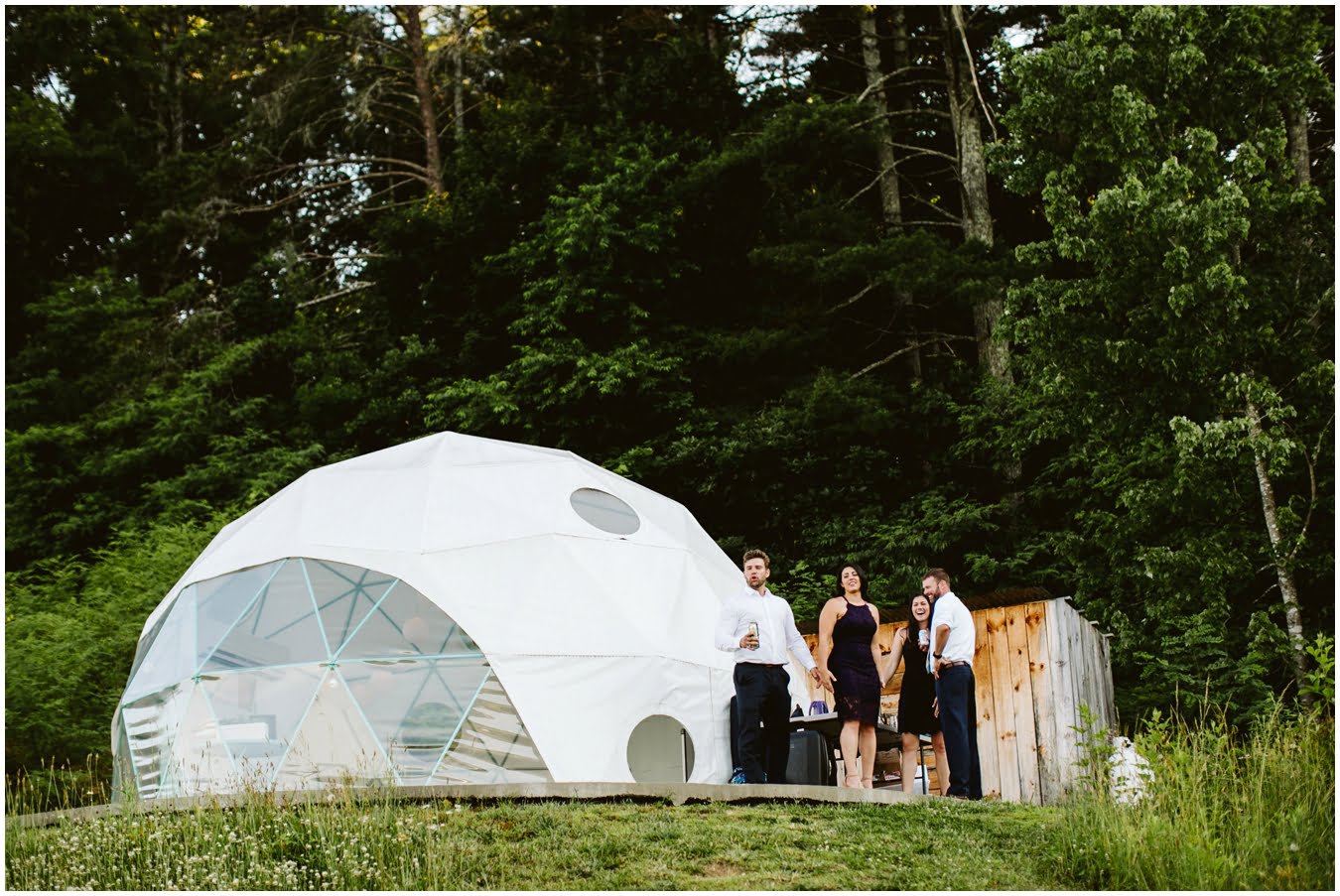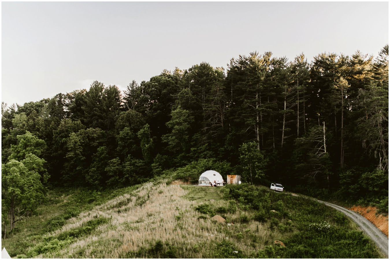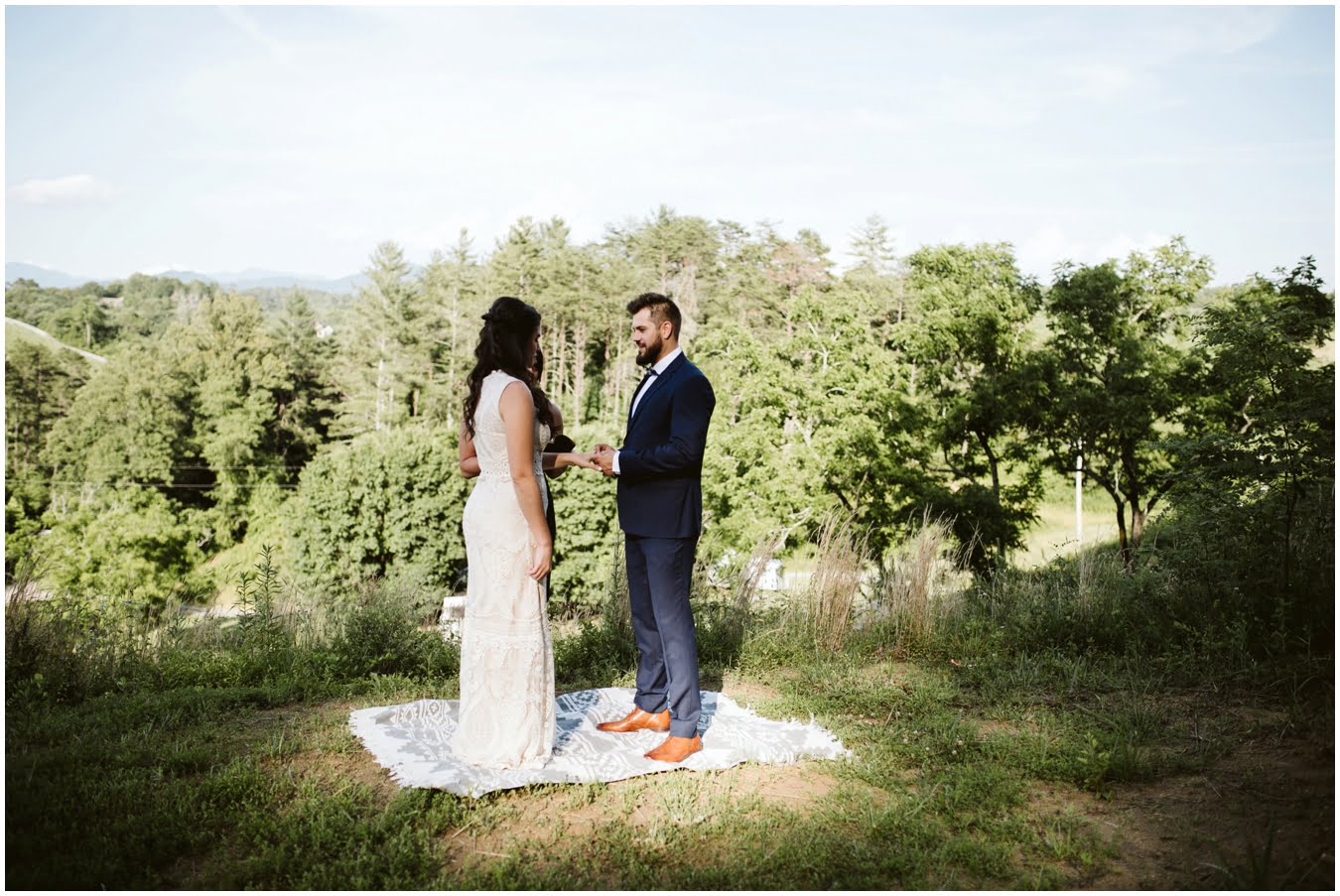 This Asheville Glamping elopement was the stuff dreams are made of. When you think of a gorgeous, adventurous intimate wedding that your friends and family can still attend easily, a glamping elopement should be the first thing that comes to mind! Stew and Kraus planned this sweet, tiny ceremony and celebration with their parents and best friends at Asheville Glamping before heading back to their hometown for a bigger celebration a few weeks later, and it was the perfect way to get the best of both worlds.