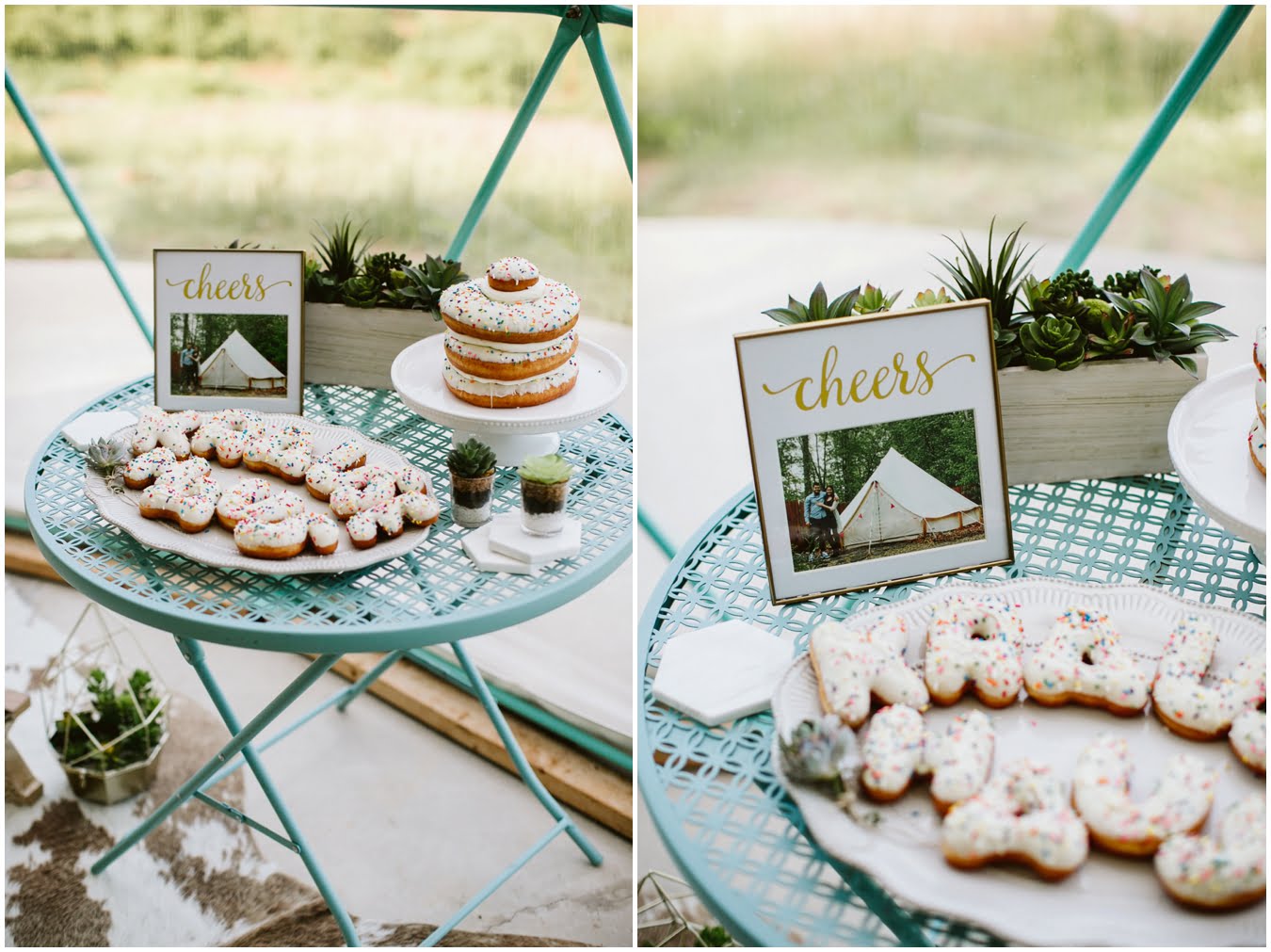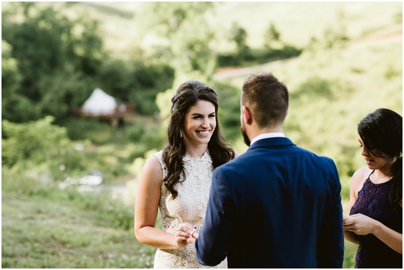 Venue: Asheville Glamping :: Hair and Makeup: Be Pretty Charlotte :: Dress: BHLDN :: Florals: Succulent Art Works :: Cake: Suarez Bakery ::