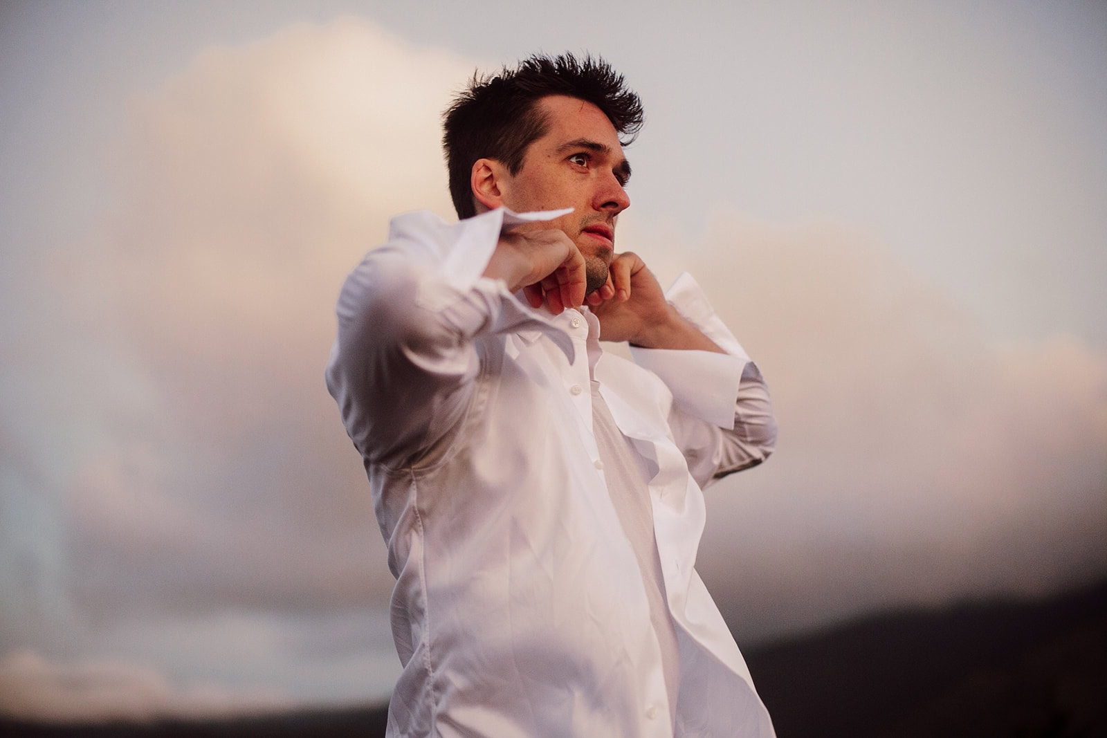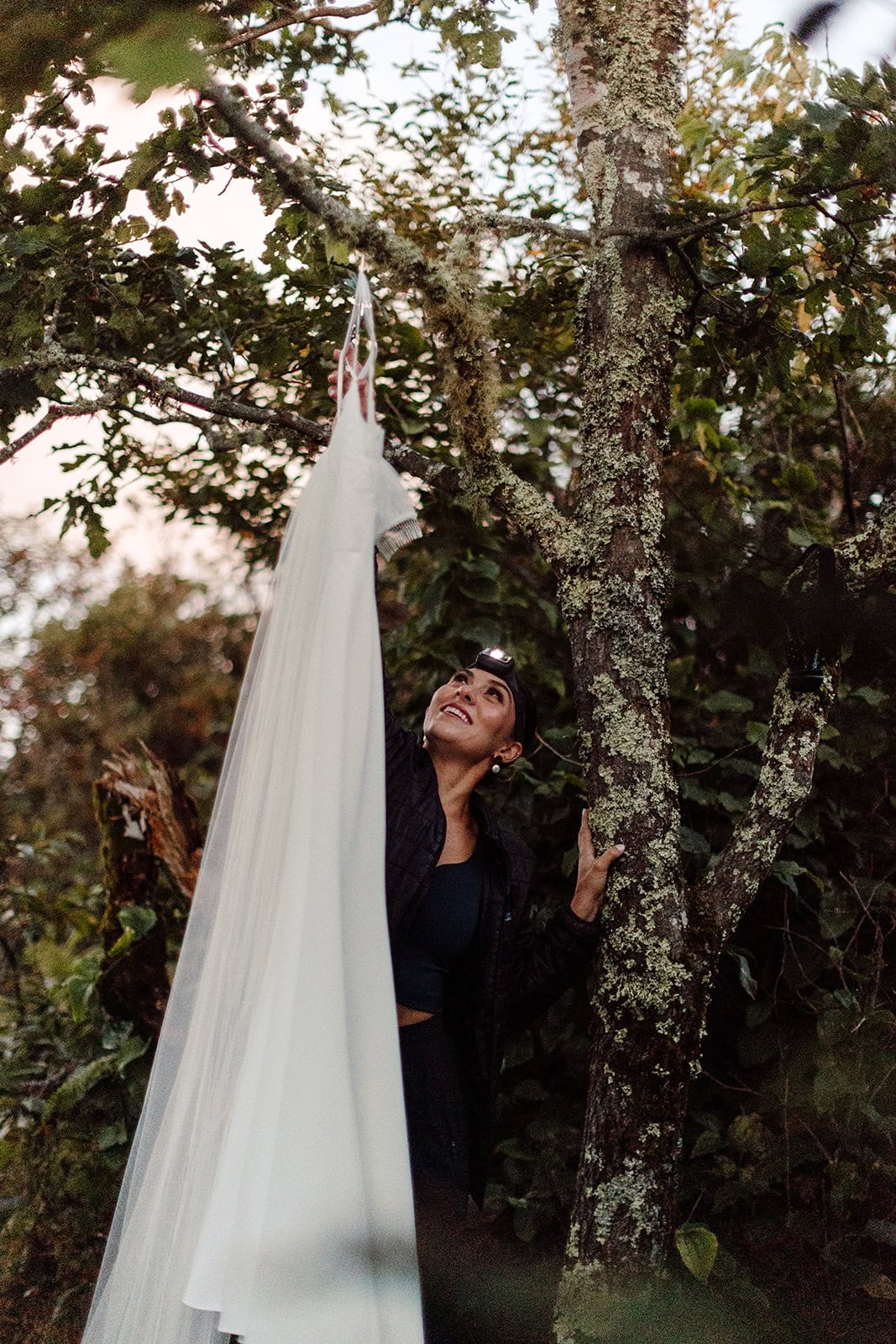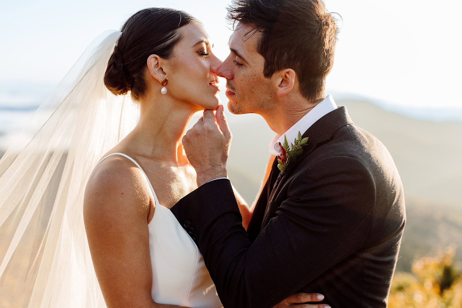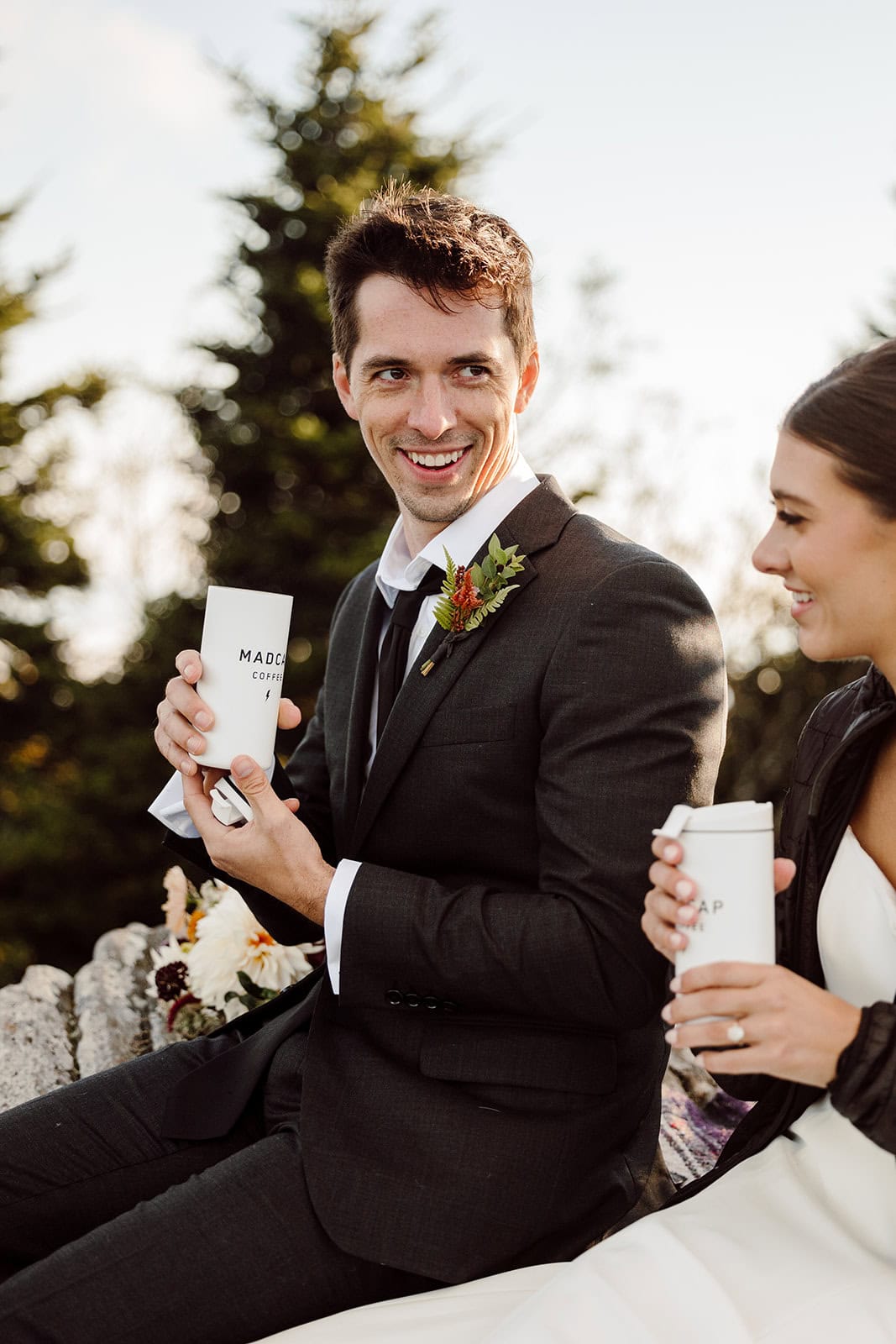 At the summit, they slipped into their wedding clothes as the first light painted the sky. With a simple vow exchange at sunrise, they promised each other forever in the glow of the morning mountains. After their vows, they enjoyed a coffee and breakfast picnic—taking time to soak in the view and the meaning of the moment before the rest of the day unfolded.
