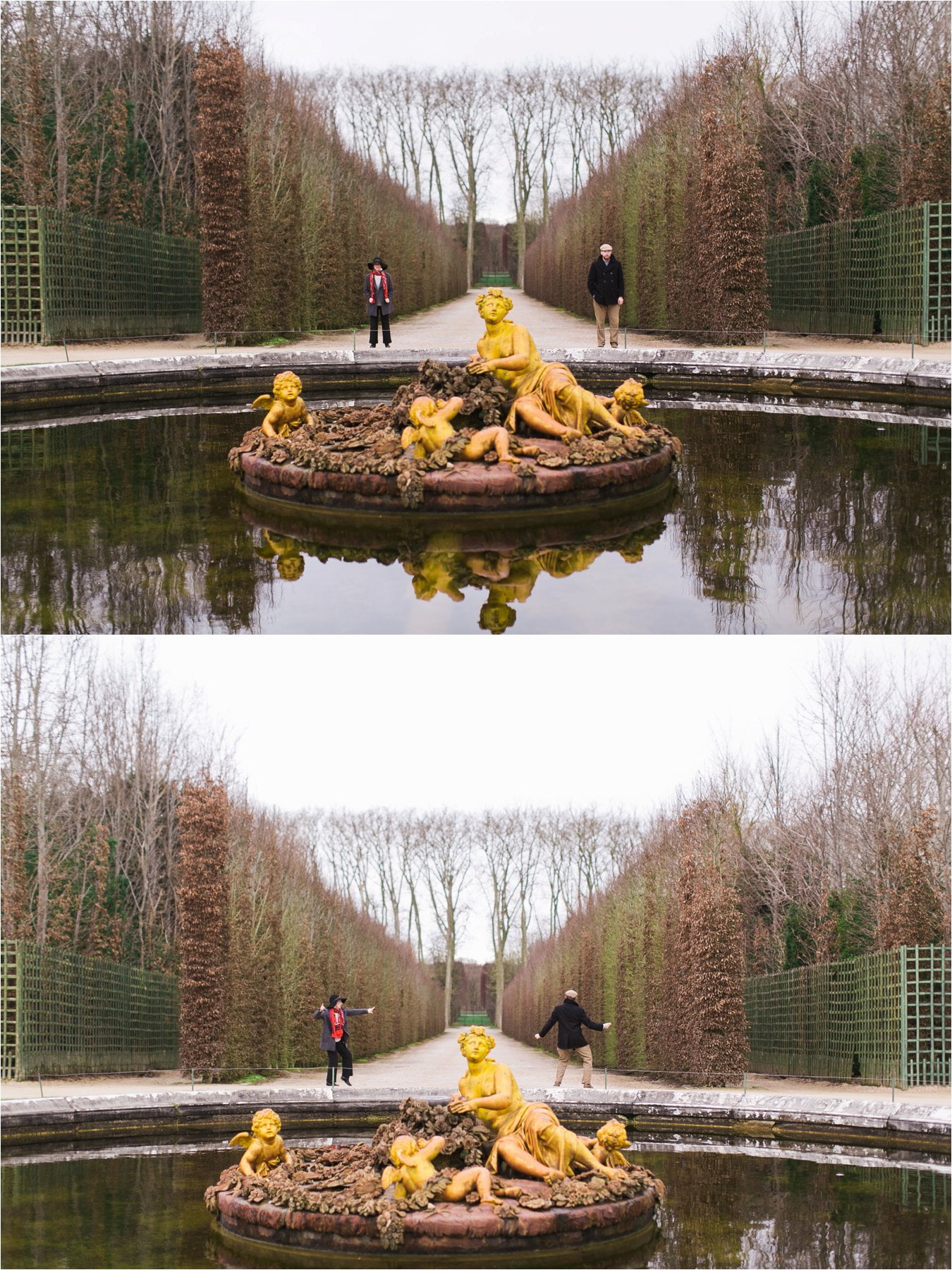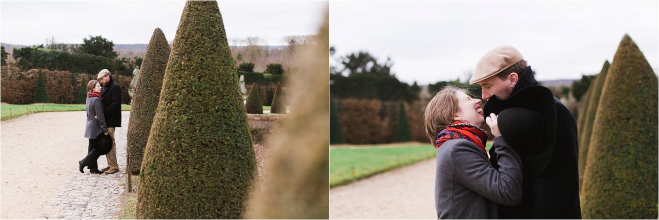 Beth and Jack are a hoot. These two can go from deadpan serious to goofing off and laughing in less than a second. And I love it! I had so much fun shooting with them at Versailles Palace during their recent trip to Paris. The gardens weren’t exactly lush but their love and laughter more than made up for it!