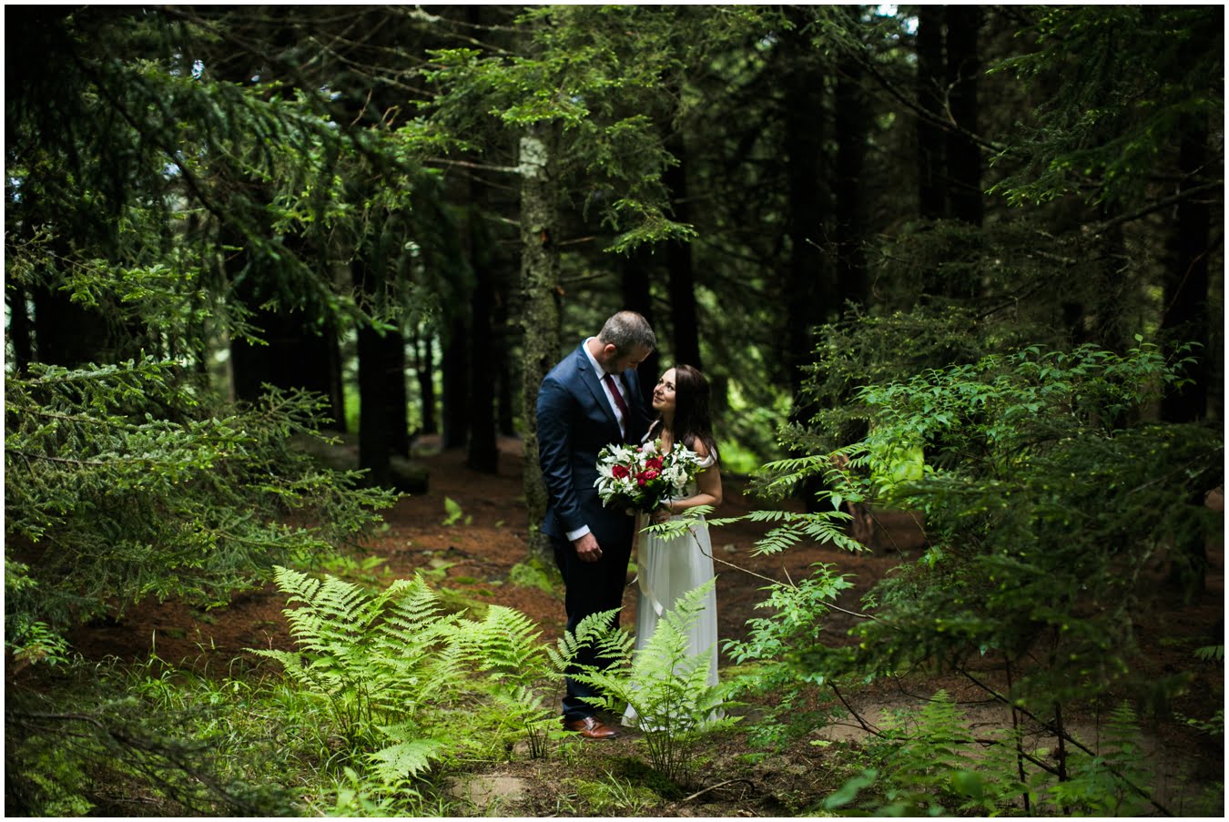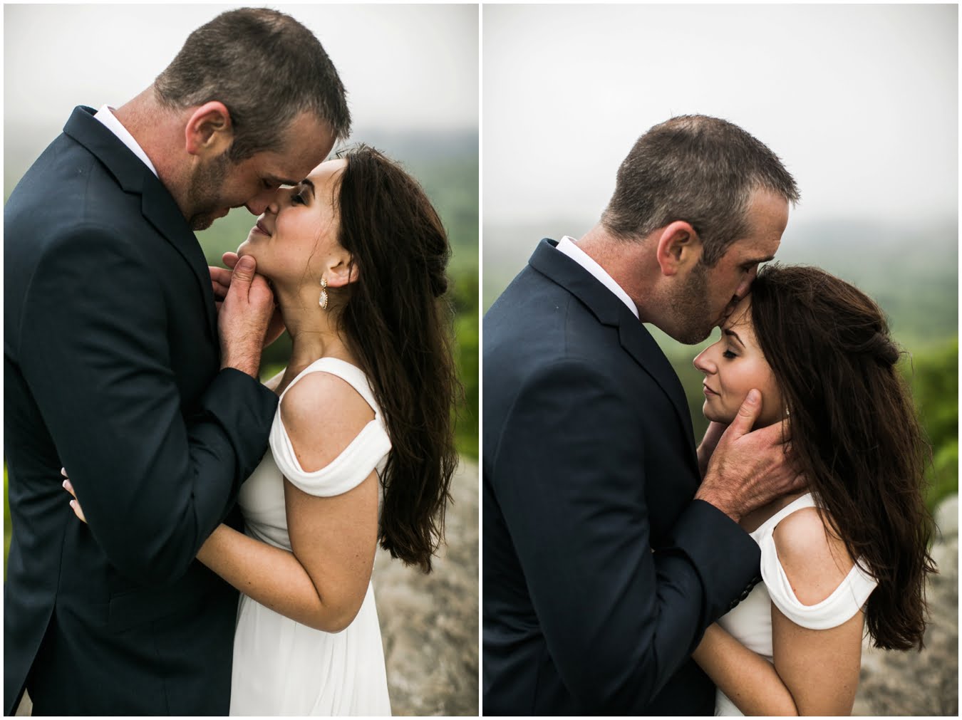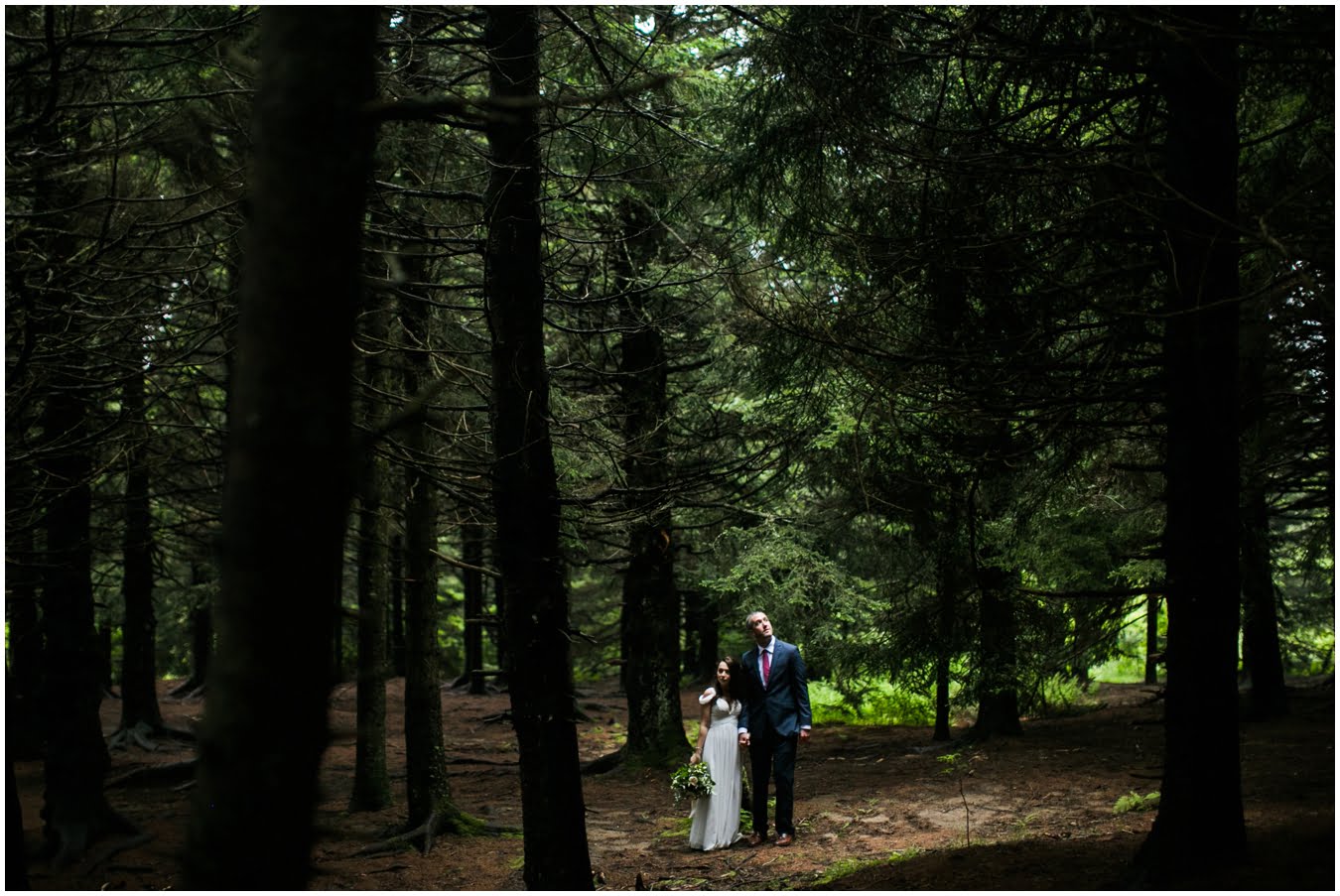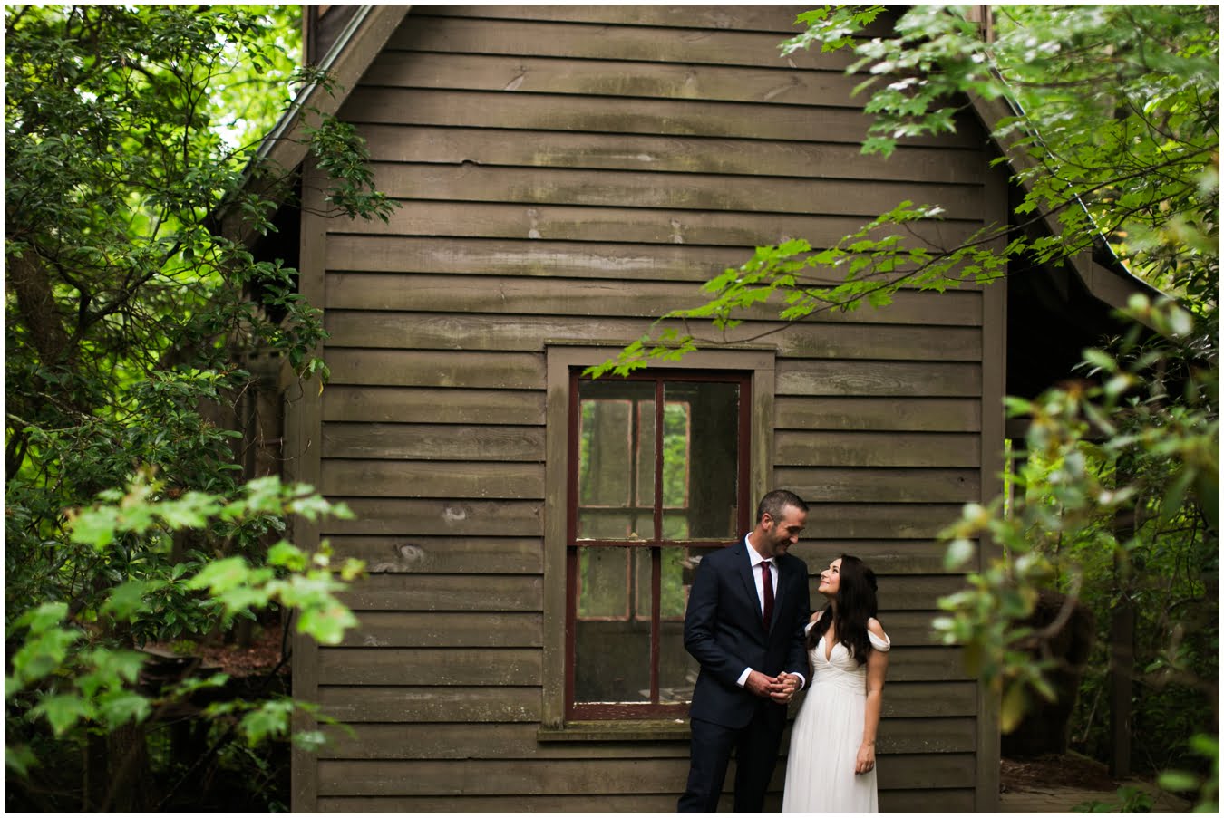 It was raining lightly when I arrived at Tori and Jon’s cabin to capture their getting ready photos. Jenna Wilson had styled Tori’s hair to perfection and Joanna Ferree of Powder Me Pretty was just finishing her makeup. The bride and groom dressed separately and then met each other in the garden for their sweet first look as the rain sprinkled around them. We then all headed up the mountain to Black Balsam Knob, where black clouds and fog threatened all afternoon, but we didn’t get a single drop of rain! Just gorgeous mist that turned the summit into something reminiscent of Scotland. After saying their vows, Tori and Jon had a first dance, all to themselves on the mountaintop, before popping their champagne and enjoying their doughnuts with a view! It was such a sweet, intimate day and I was so honored to have been a part of it. We spent the rest of the daylight taking portraits across the mountaintops and down in deep fir forests. As we wrapped up we got a final burst of golden sunset light and everything was literally perfect.