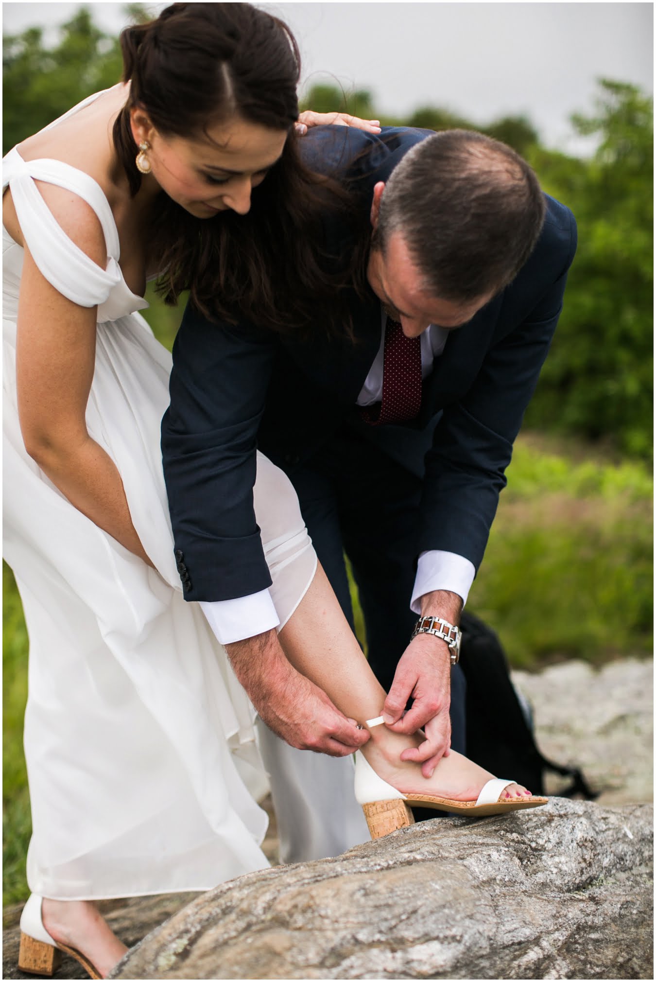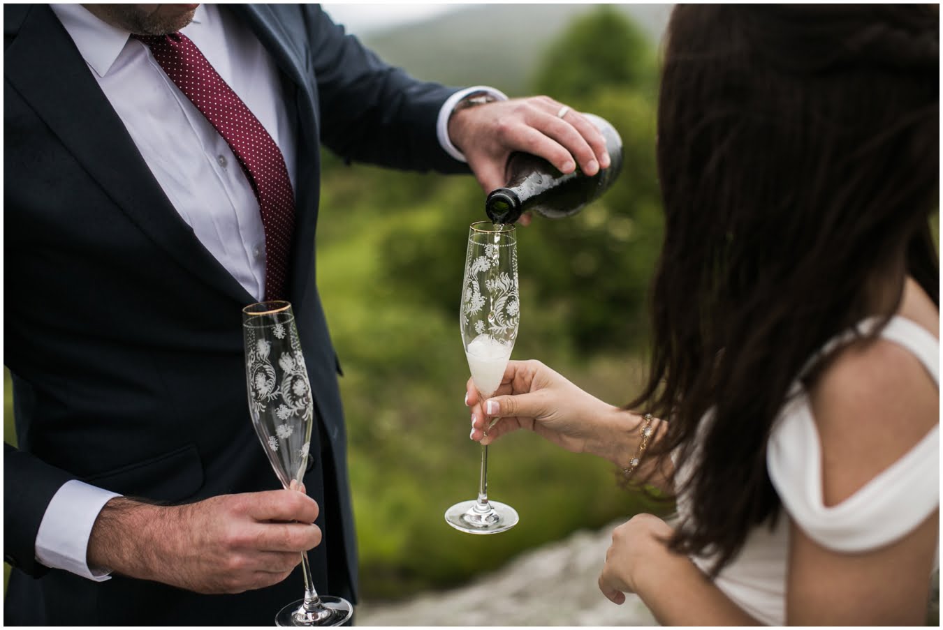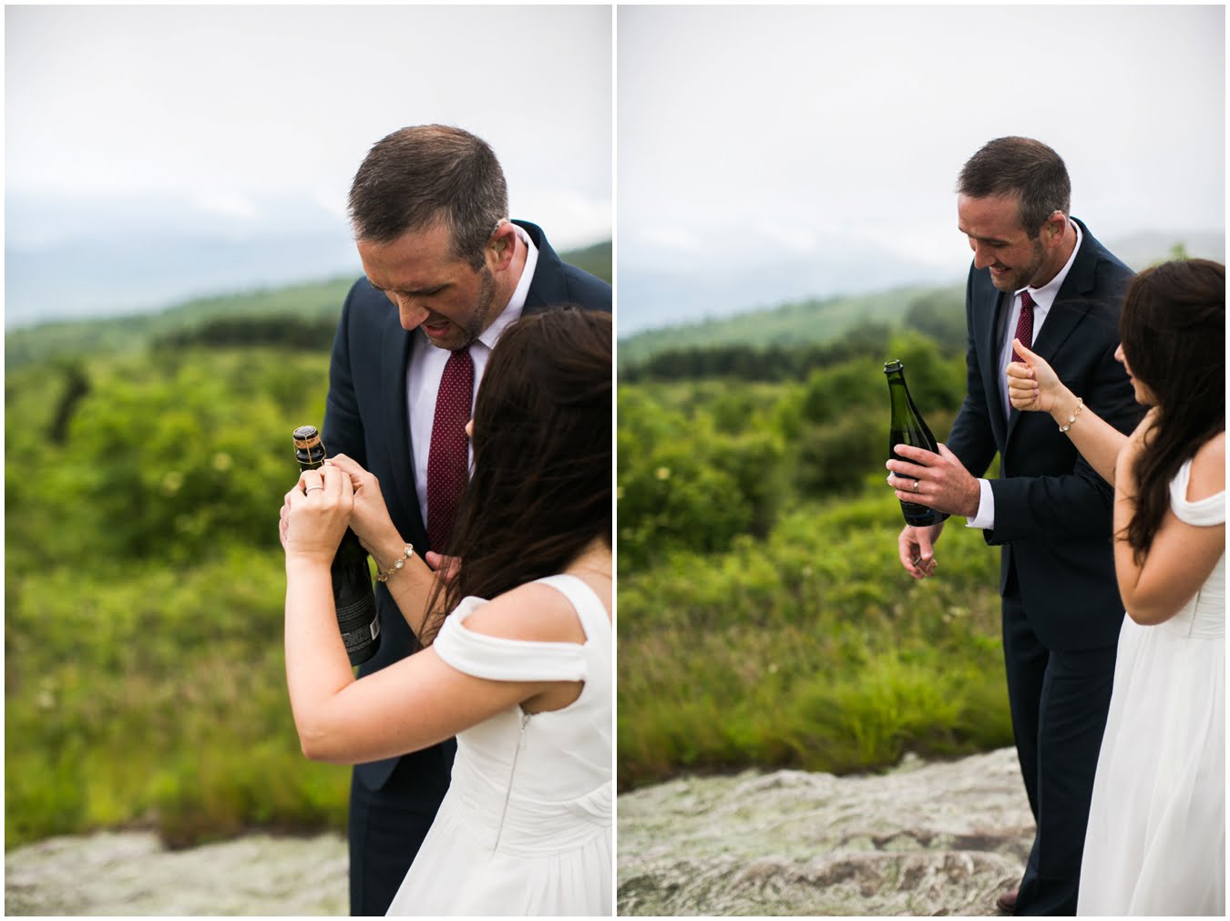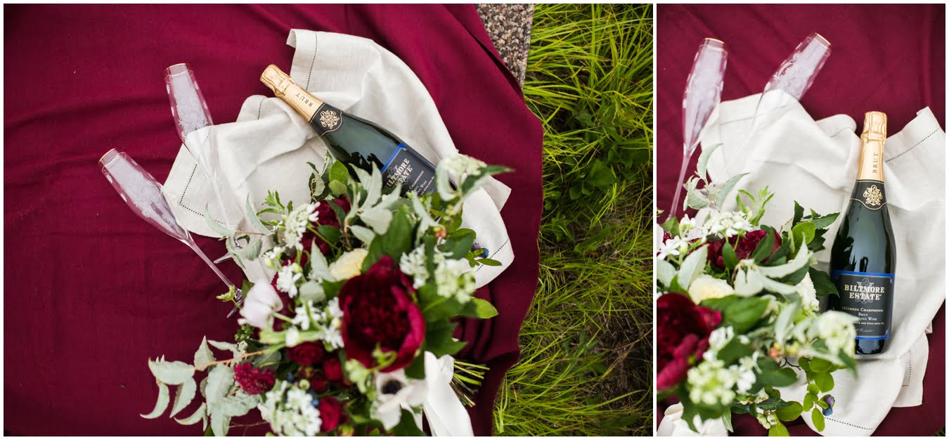 This year has just been the year of elopements. I’m not sure what it is, whether it’s the changing political climate, economic changes, or that people are just gravitating towards a more simple, sweet style of wedding, but it seems that more and more people are opting to forego the big traditional wedding celebration. Instead, I’ve had dozens of couples recently choose to run off into the mountains together to promise each other forever, and it’s just the most magical thing. Tori and Jon planned their Black Balsam Elopement so it roughly followed a traditional wedding day, but with just the two of them to enjoy it all, privately. Alex Fisher of Lucky Penny Creative styled their mini reception perfectly, with lush florals from Flora (check out Tori’s amazing, and delicious, something blue tucked into her bouquet!), sweet doughnuts from Vortex, and a champagne toast with Biltmore bubbly. I couldn’t have imagined a more perfect setup.