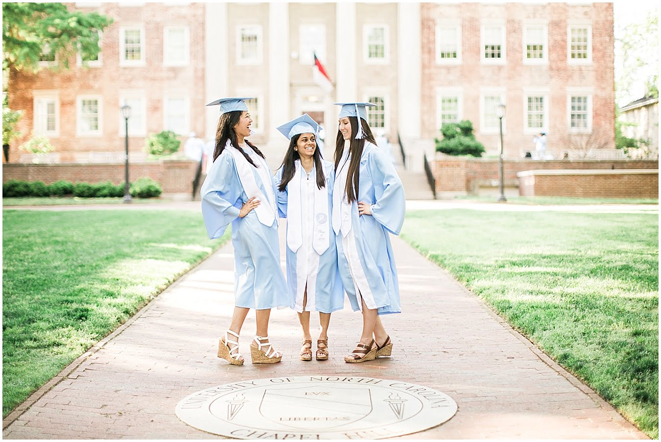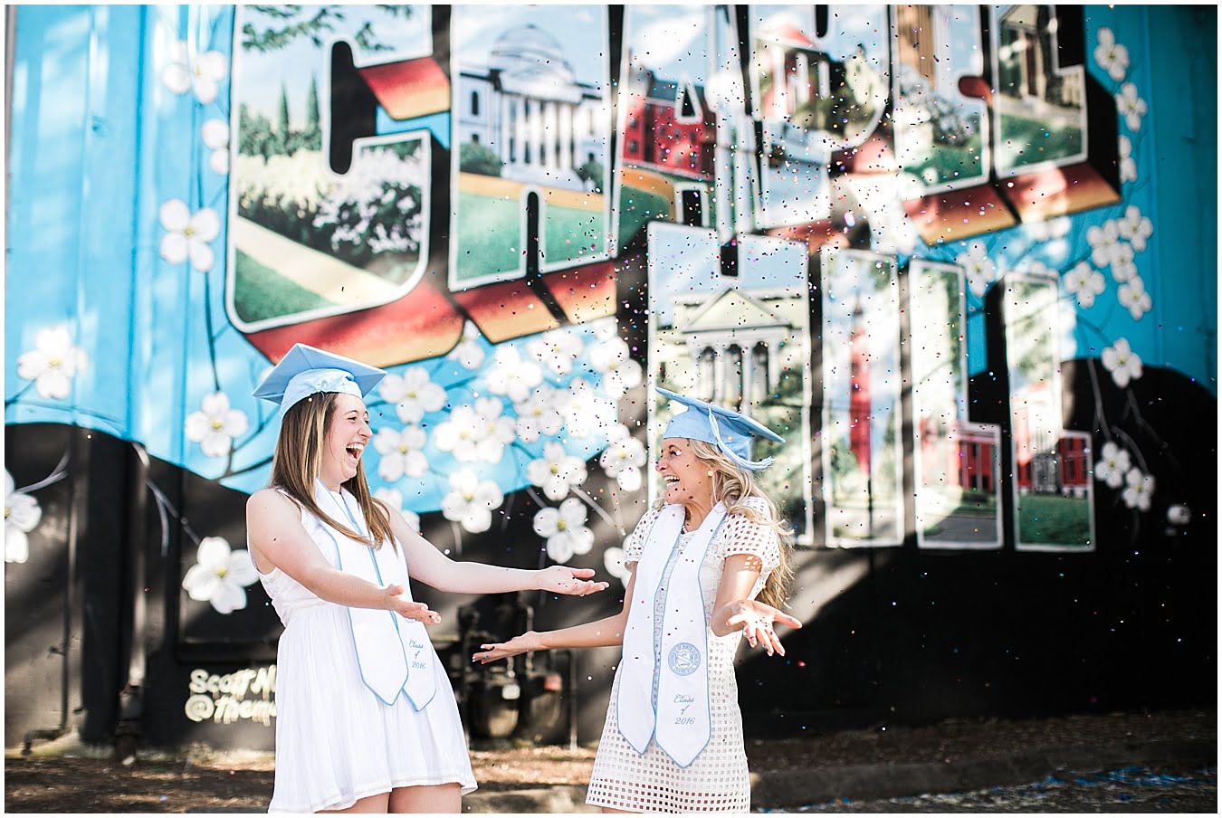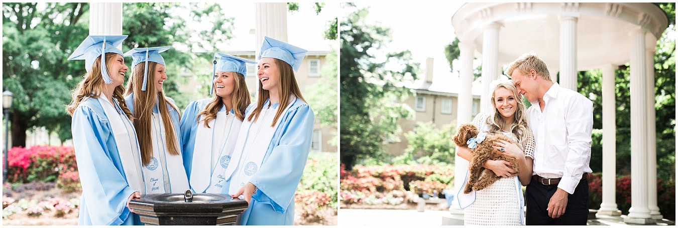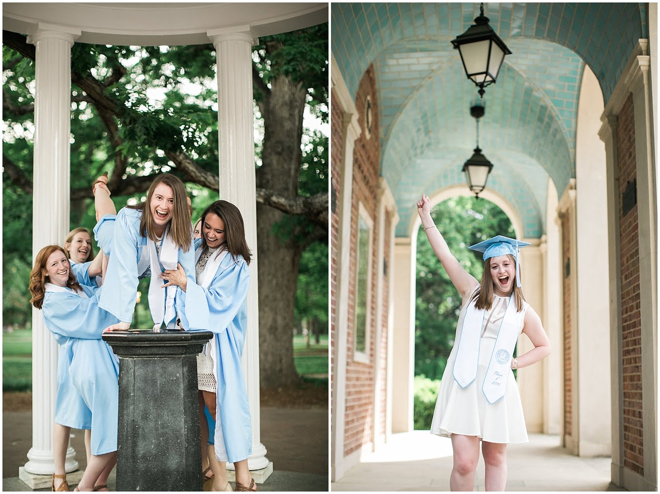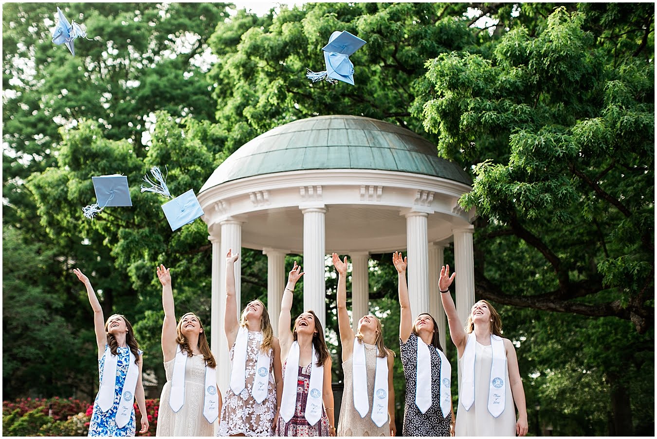 I strive every year to make your UNC grad photos a very personalized experience, talking with you ahead of time to figure out how we can make the shoot a unique celebration of this awesome milestone for you, whether its by popping a bottle of bubbly in front of the camera, tossing confetti with your best friends, or bringing your sweet pup along for the shoot. The hour is yours to get as creative as you want! Check out the photos below for some inspiration, and see why so many other grads have chosen me as their UNC Graduation Photographer!