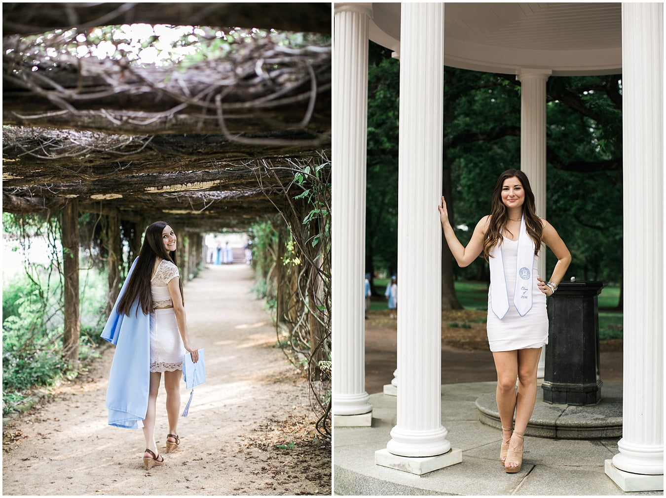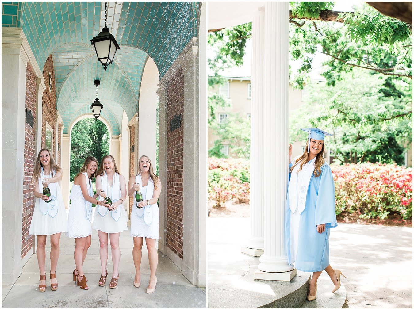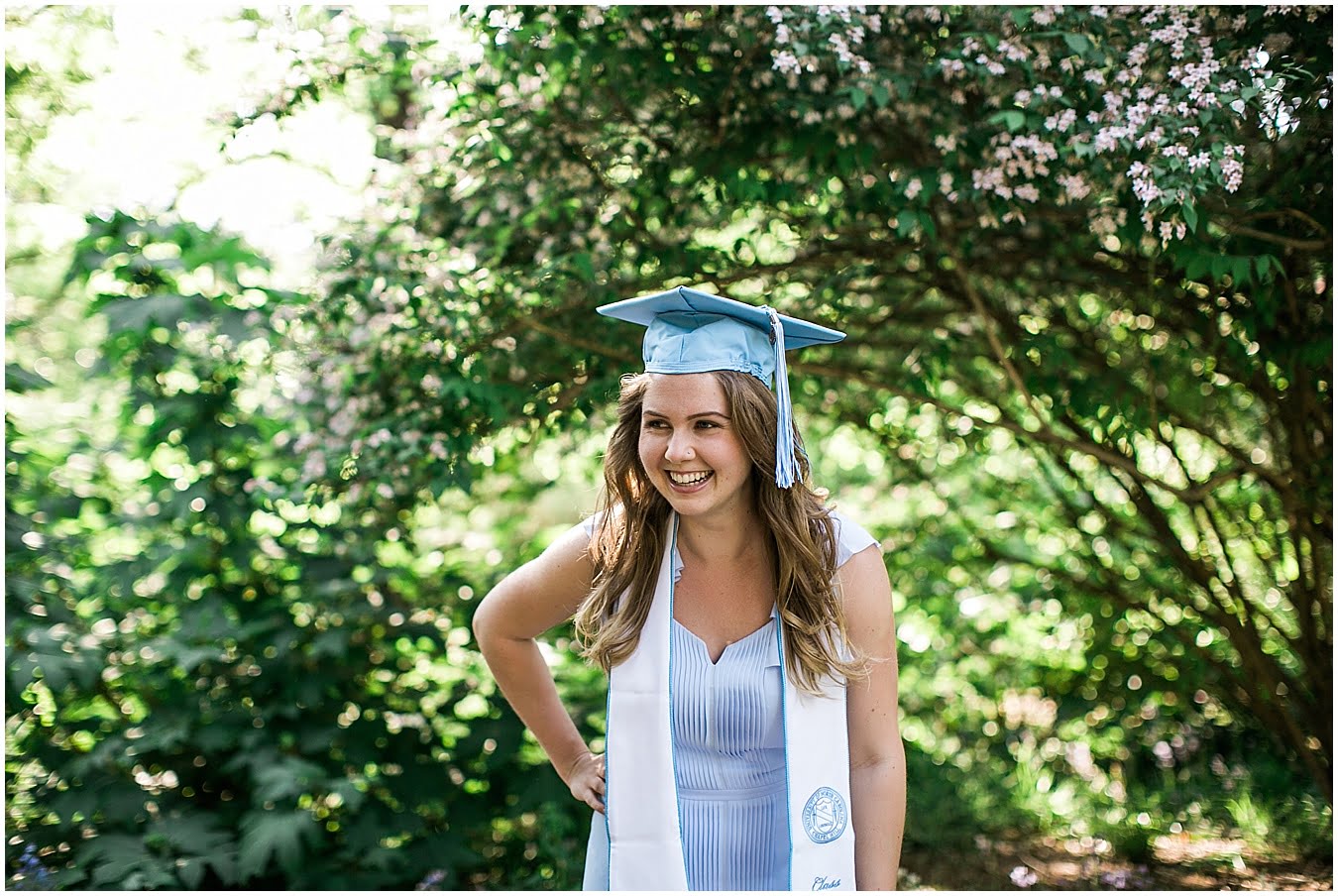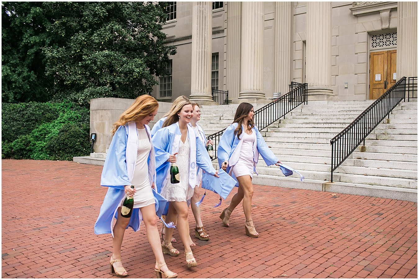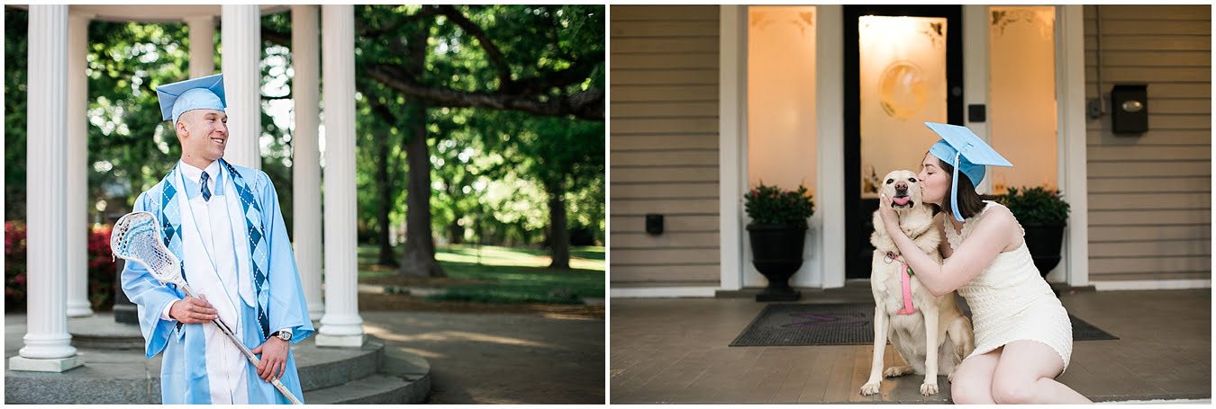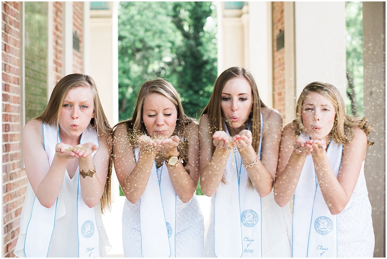 I strive every year to make your UNC grad photos a very personalized experience, talking with you ahead of time to figure out how we can make the shoot a unique celebration of this awesome milestone for you, whether its by popping a bottle of bubbly in front of the camera, tossing confetti with your best friends, or bringing your sweet pup along for the shoot. The hour is yours to get as creative as you want! Check out the photos below for some inspiration, and see why so many other grads have chosen me as their UNC Graduation Photographer!