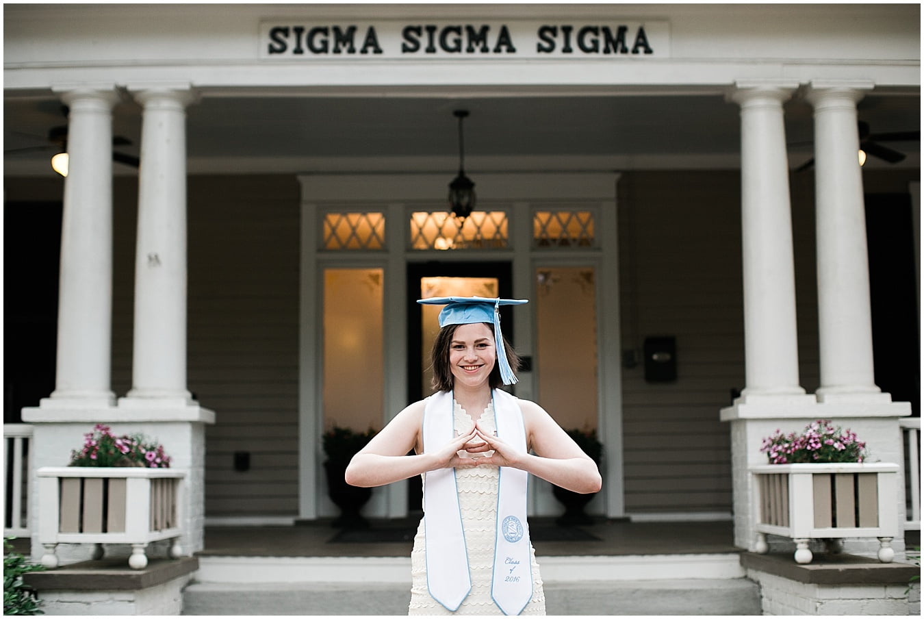 This year I’m excited to bring back my wildly popular celebration sessions! Everyone’s experience at Carolina is different, so your grad photos should reflect that. You’ve come to the end of a long, hard, rewarding journey, and that is worth CELEBRATING. So these shoots are going to be all about that…celebrating a job well done at the best place on earth. I’m really excited to be offering hour-long shoots, so we don’t have to limit your time to just two locations! I’d love to go with you to your dorm, or your favorite intramural field, your art studio or practice room, the chem lab where you spent most of your college career, or your favorite bar or coffee shop on Franklin street where you spend so much time…er, “studying”. And the best part is you and all your friends can get in on the shoot together! The shoot price includes up to 5 people and you can add more than that for just $50 a person. Want photos with your whole house, or your dorm hall, or your sorority sisters or fraternity brothers? The more the merrier!