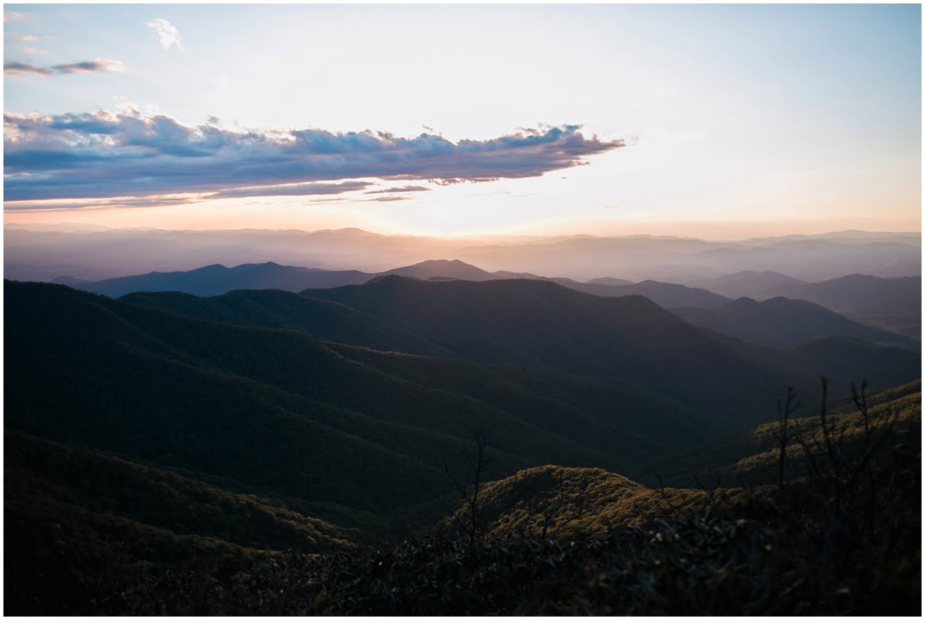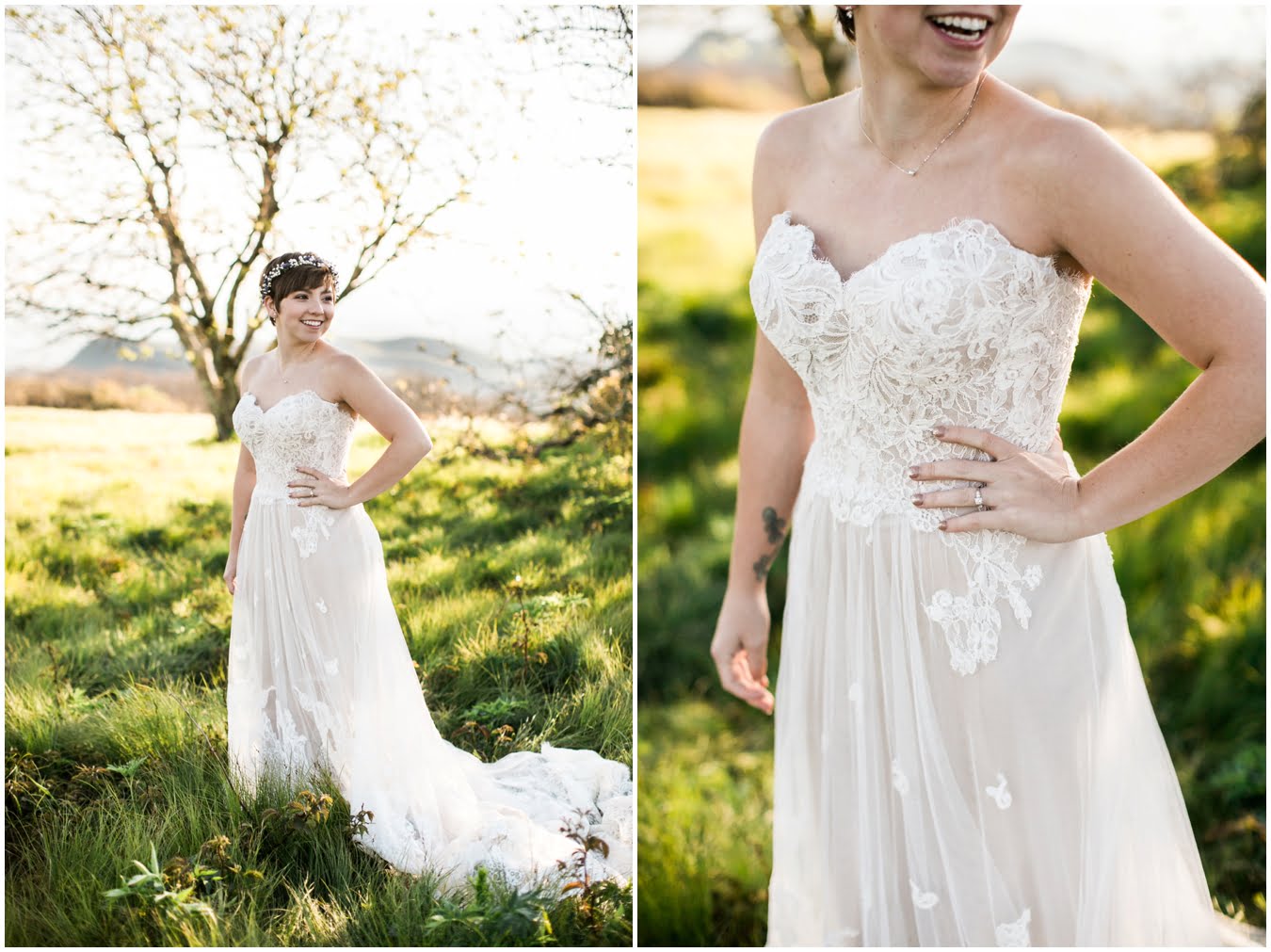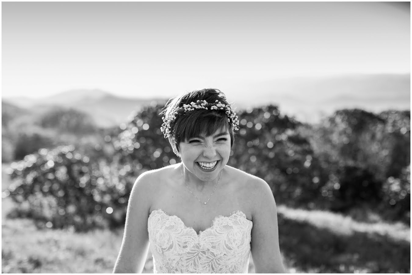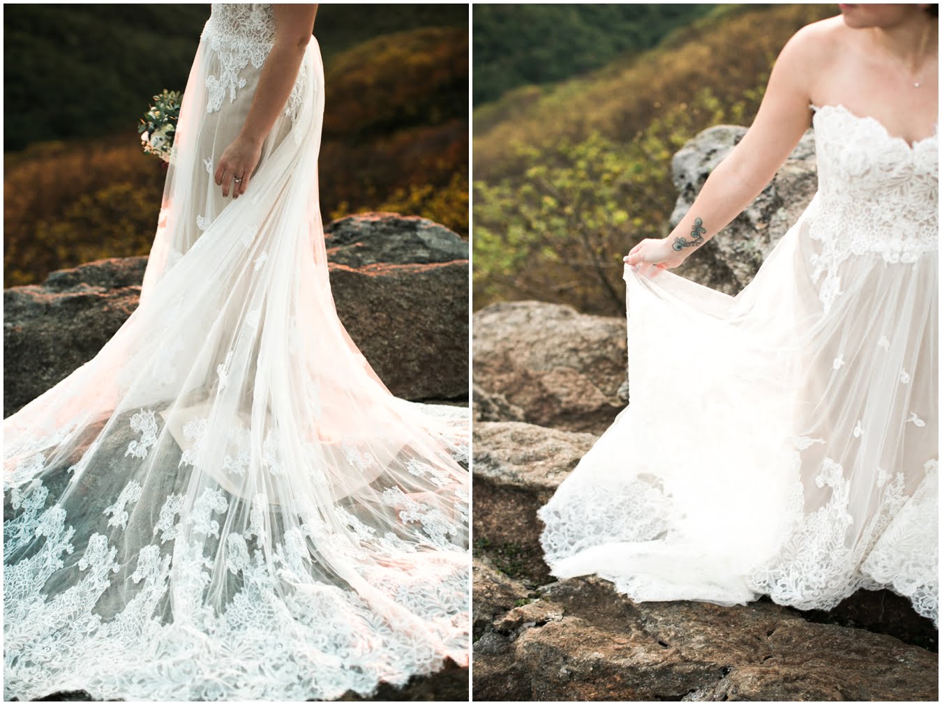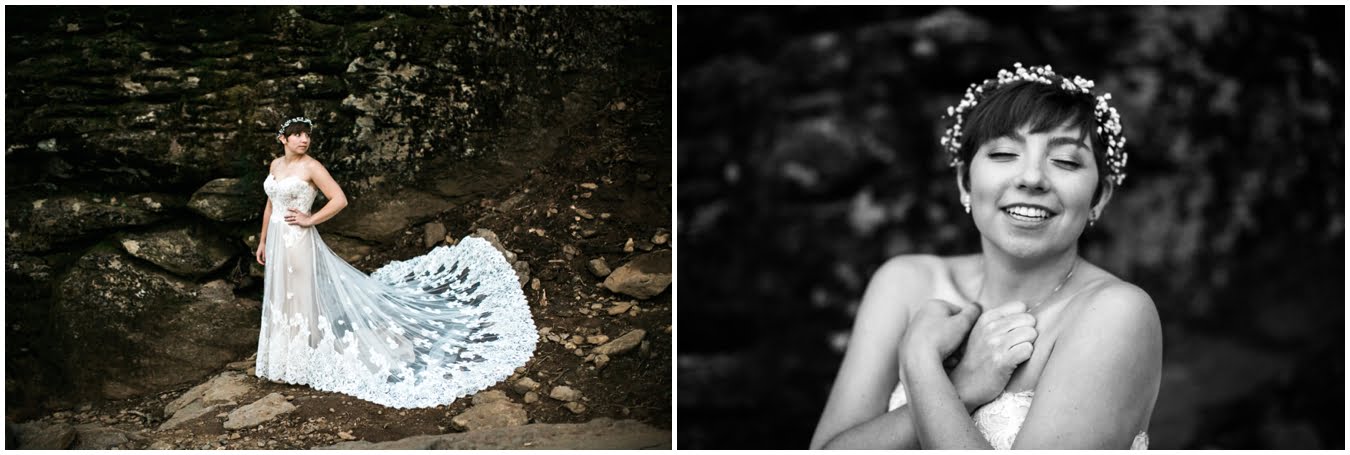 There’s really no other way to describe Sarah in all her bridal glory. From her delicate floral crown nestled atop her cute pixie cut to the flow and drape of her gorgeous lace train she was every inch a bridal queen, from head to toe. I love brides who are adventurous enough to trek up a mountain in their wedding dresses! We were rewarded with the most gorgeous sunset atop Craggy Gardens, with lots of laughter a long the way. I’m so excited to be able to share these images now that Sarah and Nathaniel have tied the knot!