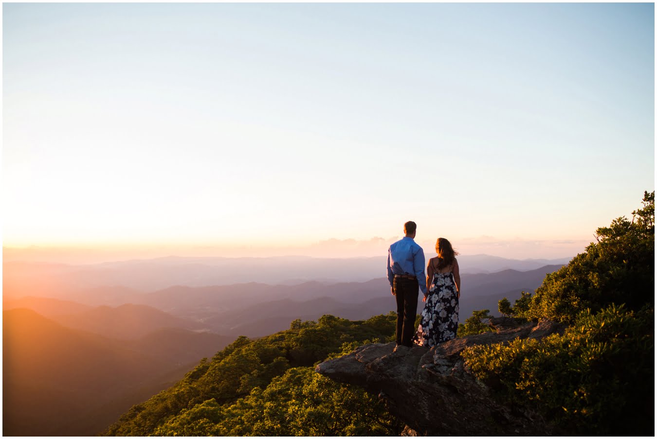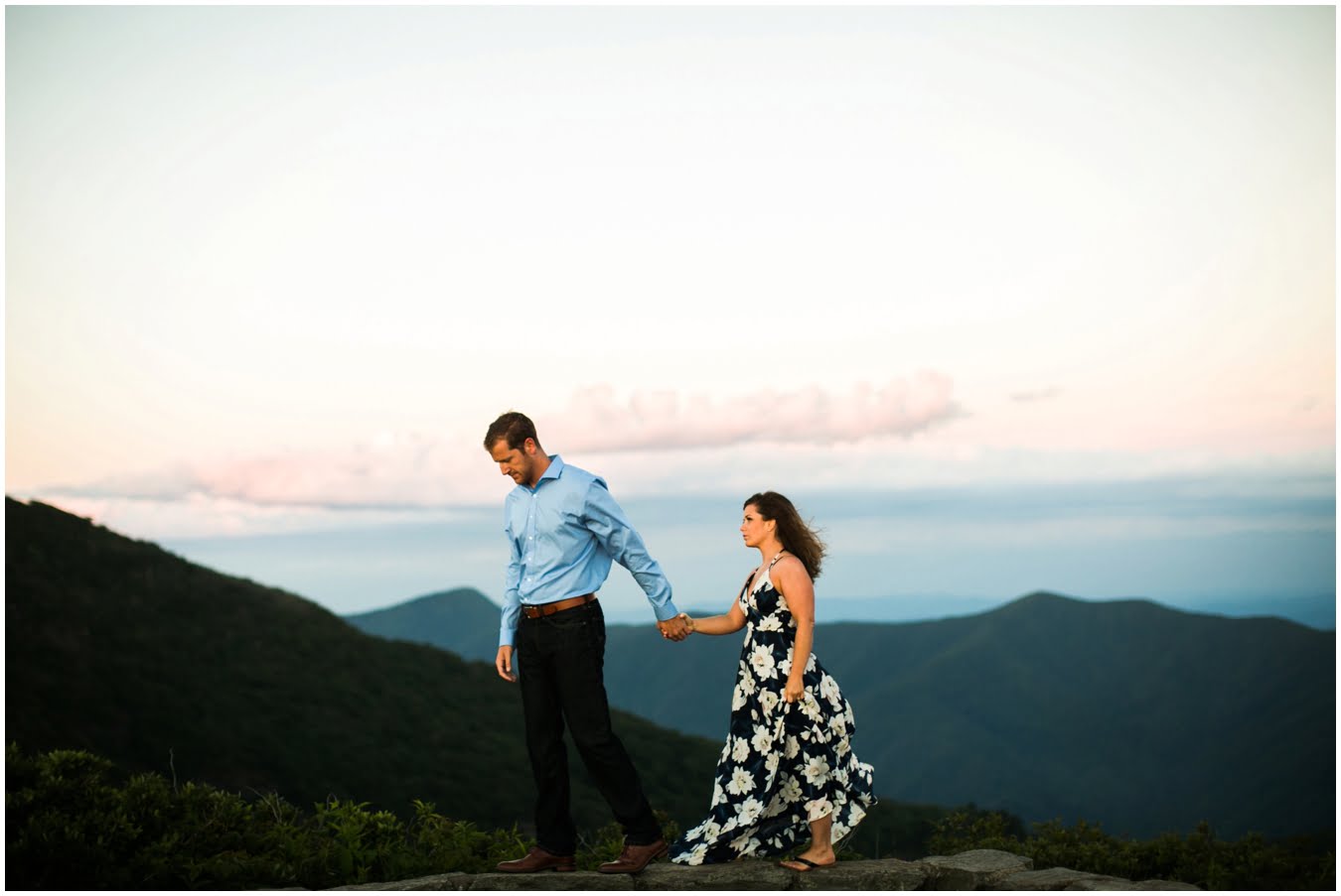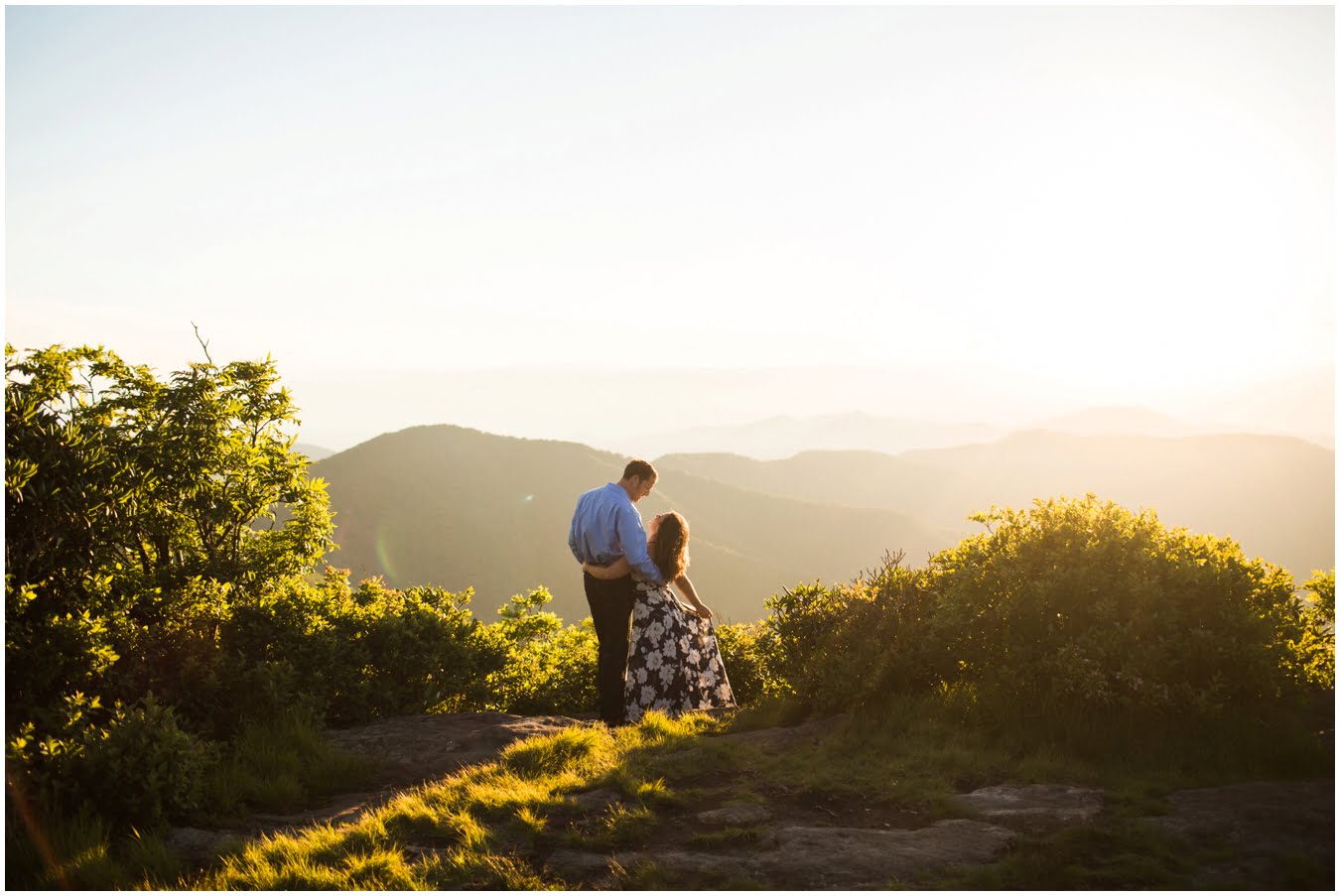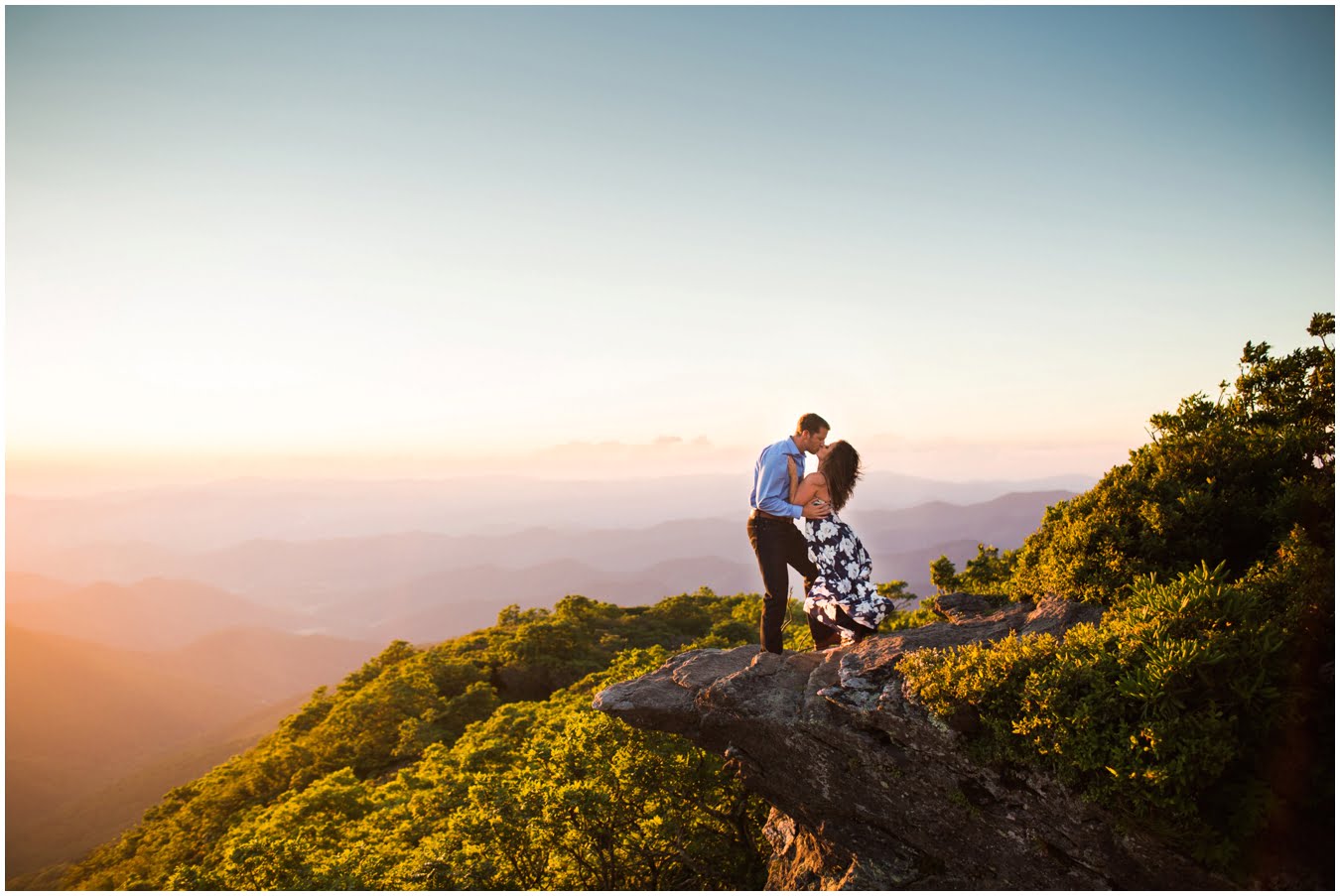 This past weekend Courtney and Alex flew in from the west coast for their Craggy Gardens engagement session, and were rewarded with one of the most gorgeous mountain sunsets I’ve seen this year. We met up for drinks beforehand to get to know each other better and spent the drive up talking about their plans for their December wedding and marveling over the beauty of the Blue Ridge Mountains. These two have a quiet strength to their relationship that came out in their photos. We laughed, cried (really!), and frolicked our way up the mountain, reaching the summit just in time for the sun to dip below the horizon. It was a gorgeous evening with a wonderful couple in love. Can’t wait for their December Crest Center wedding!!