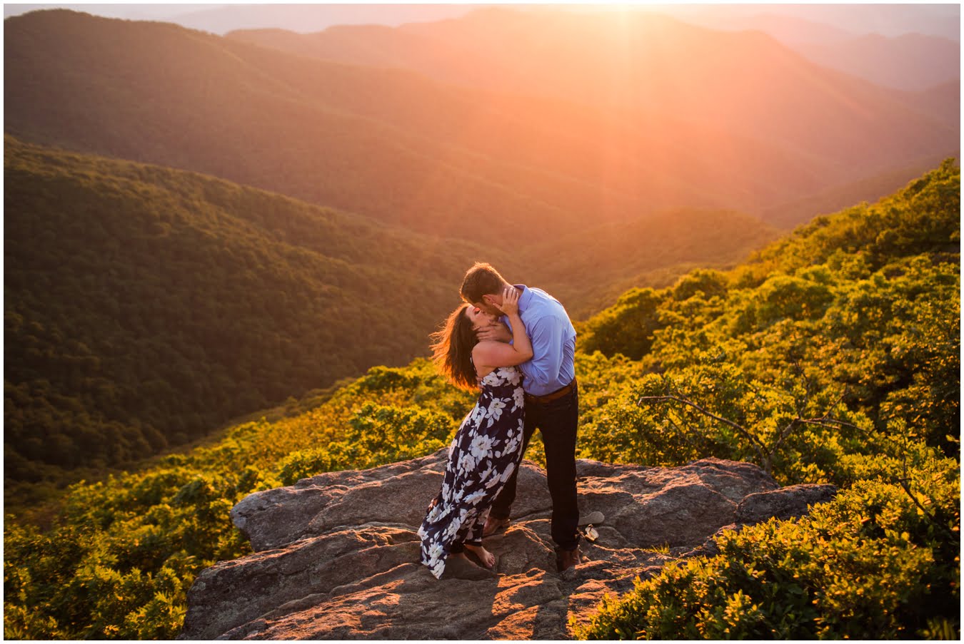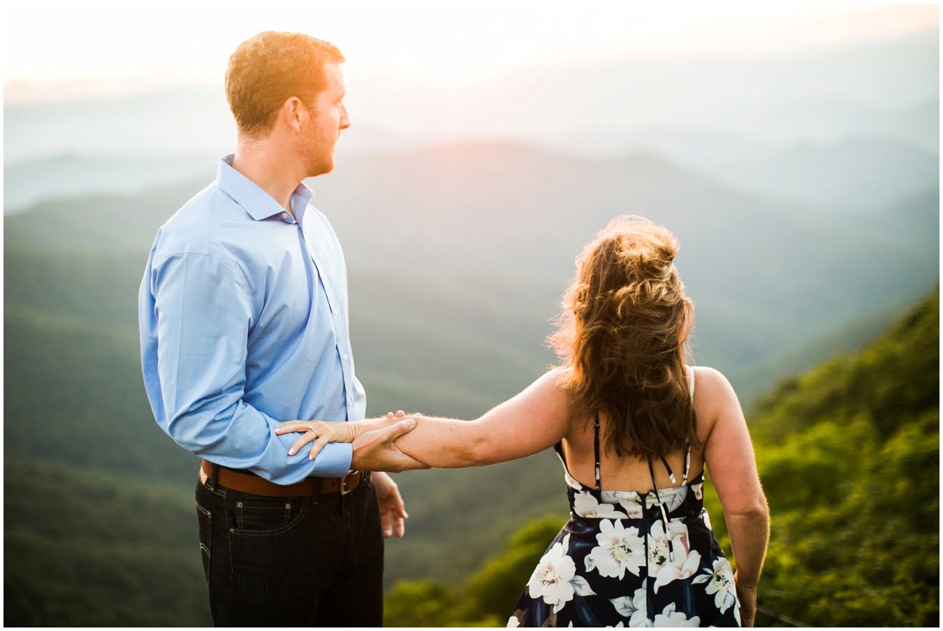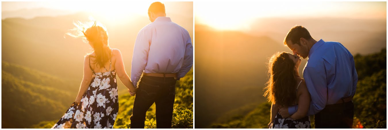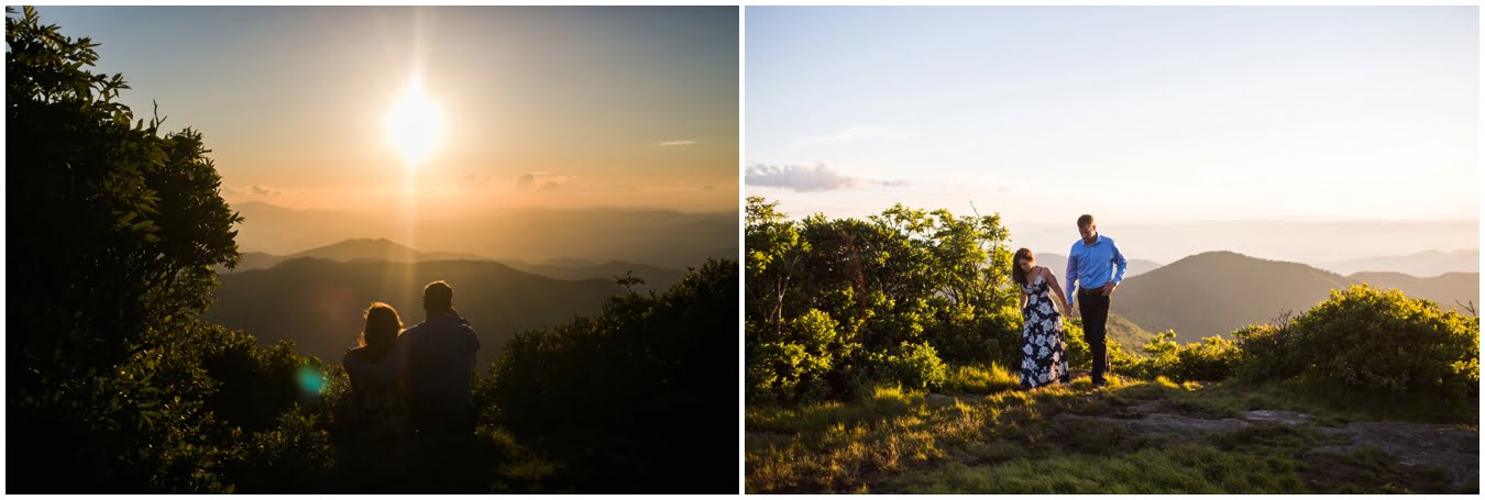 This past weekend Courtney and Alex flew in from the west coast for their Craggy Gardens engagement session, and were rewarded with one of the most gorgeous mountain sunsets I’ve seen this year. We met up for drinks beforehand to get to know each other better and spent the drive up talking about their plans for their December wedding and marveling over the beauty of the Blue Ridge Mountains. These two have a quiet strength to their relationship that came out in their photos. We laughed, cried (really!), and frolicked our way up the mountain, reaching the summit just in time for the sun to dip below the horizon. It was a gorgeous evening with a wonderful couple in love. Can’t wait for their December Crest Center wedding!!