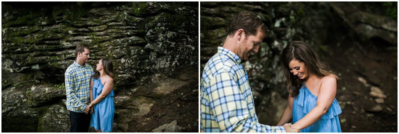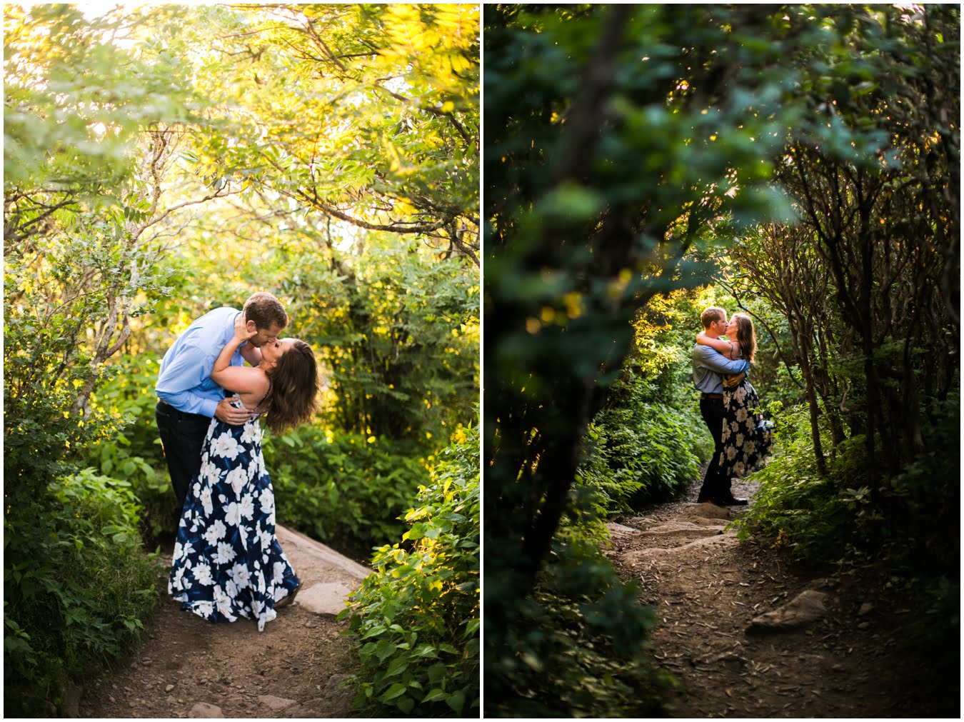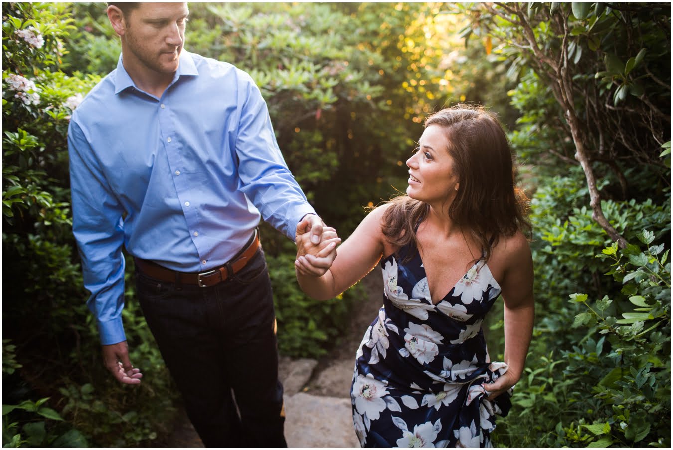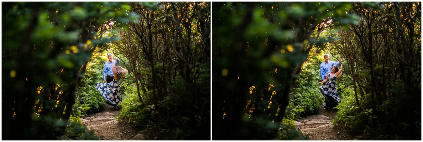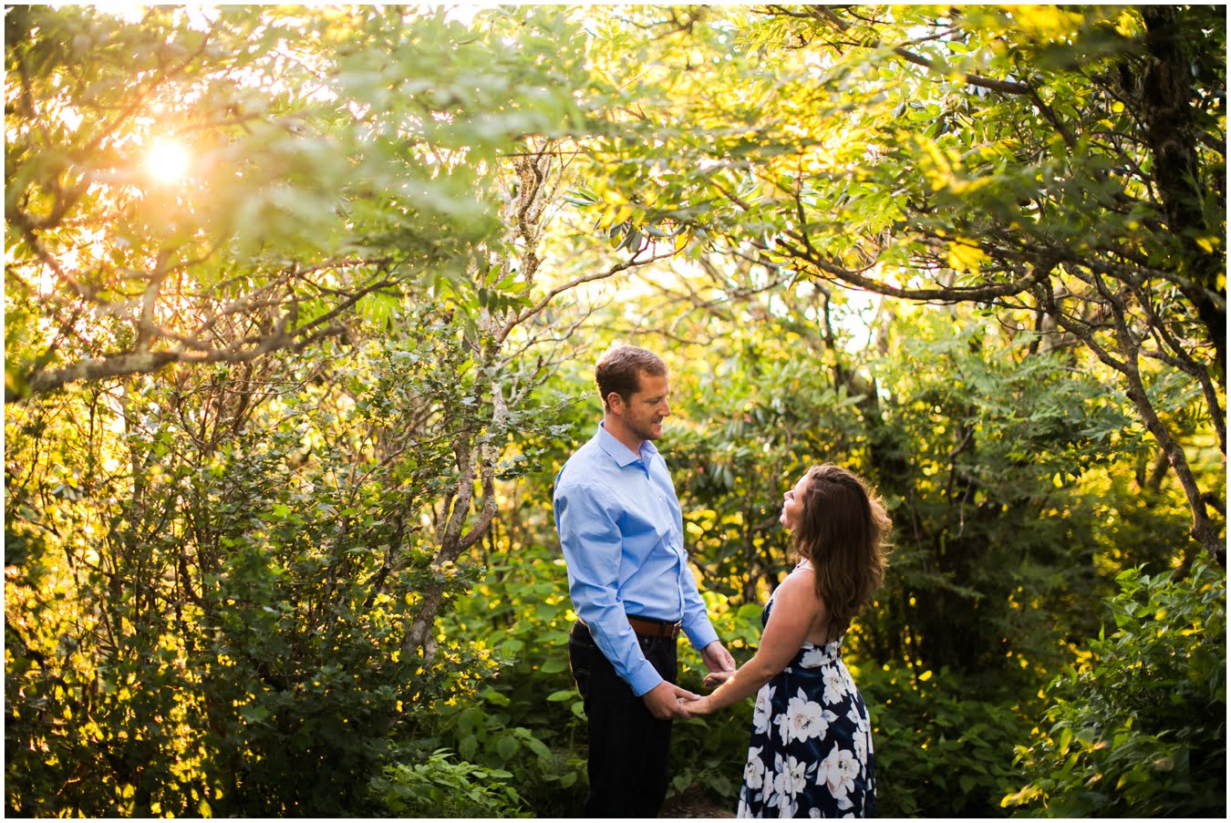 This past weekend Courtney and Alex flew in from the west coast for their Craggy Gardens engagement session, and were rewarded with one of the most gorgeous mountain sunsets I’ve seen this year. We met up for drinks beforehand to get to know each other better and spent the drive up talking about their plans for their December wedding and marveling over the beauty of the Blue Ridge Mountains. These two have a quiet strength to their relationship that came out in their photos. We laughed, cried (really!), and frolicked our way up the mountain, reaching the summit just in time for the sun to dip below the horizon. It was a gorgeous evening with a wonderful couple in love. Can’t wait for their December Crest Center wedding!!