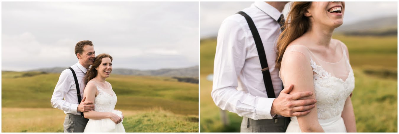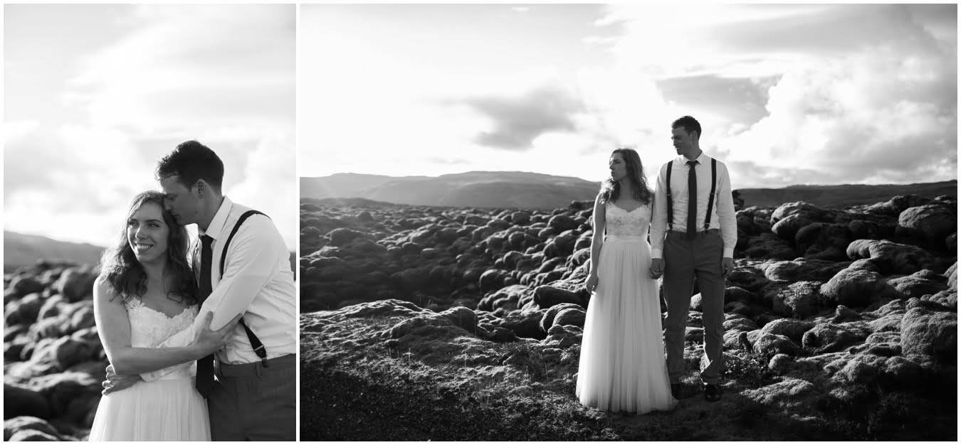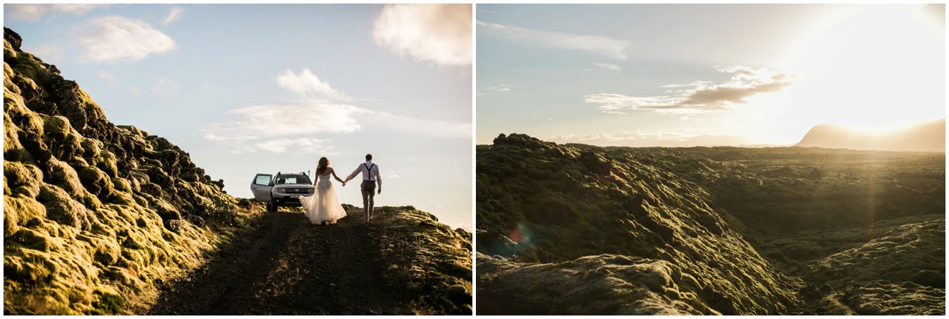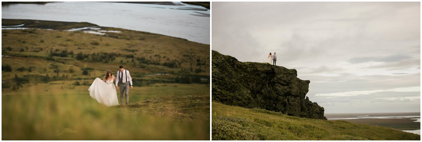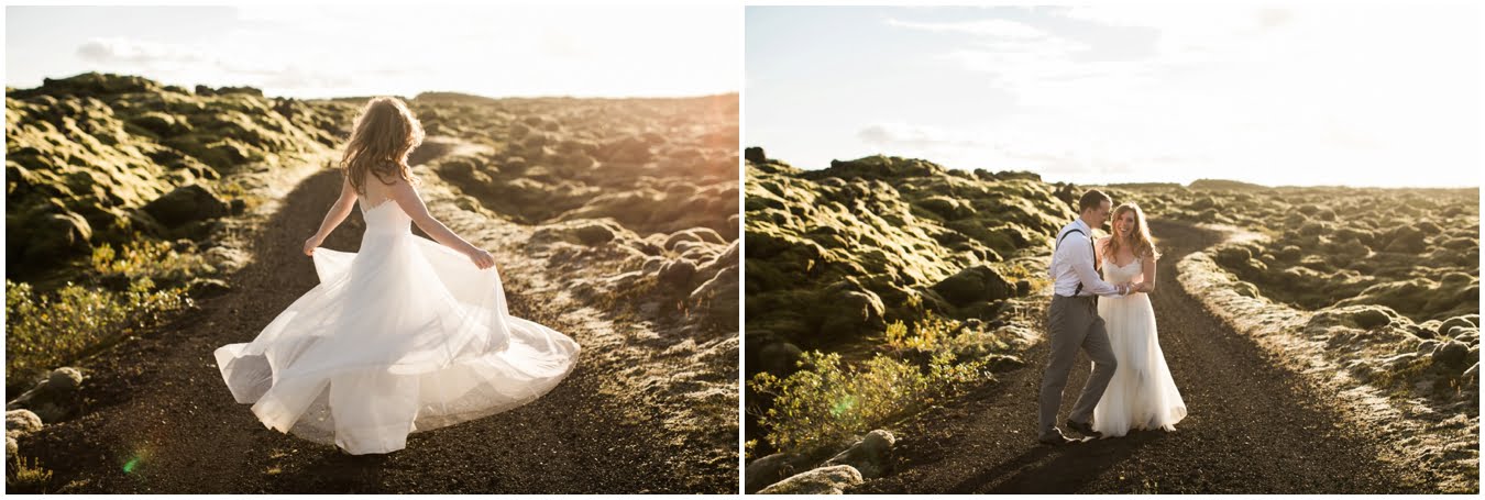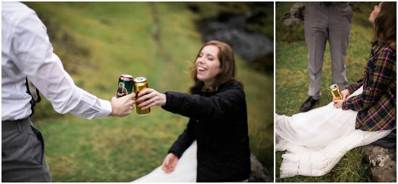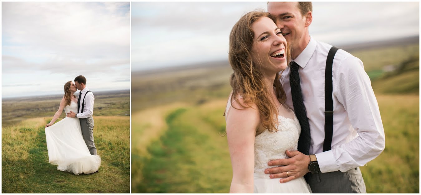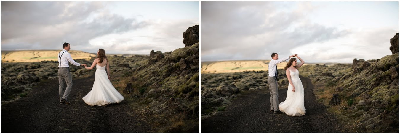 Meredith and Joe have made their life one big adventure. They’ve been together for nearly a decade and take every day as it comes. I had the pleasure of spending a wonderful week in Iceland with them, exploring the vast landscape of this wild, magic country. We spent two of those days, them in wedding clothes, me with my cameras in tow, climbing waterfalls, hiking up canyons, and watching the sun turn gold over vast lava fields as the day came to an end. These two know how to celebrate their anniversary, half portrait shoot, half Iceland elopement/vow renewal. From exchanging love letters at the base of a hidden waterfall to running across waving fields of lush green grass, to drinking champagne out of shot glasses in our warm tiny house, they made the celebration entirely their own and it was such an honor to be along for the ride.