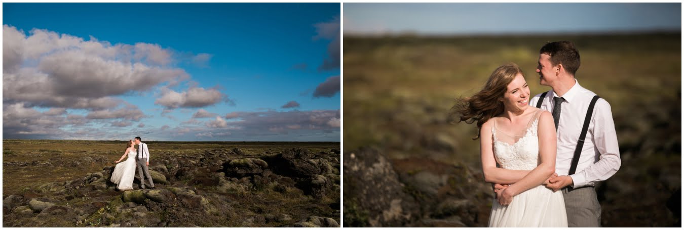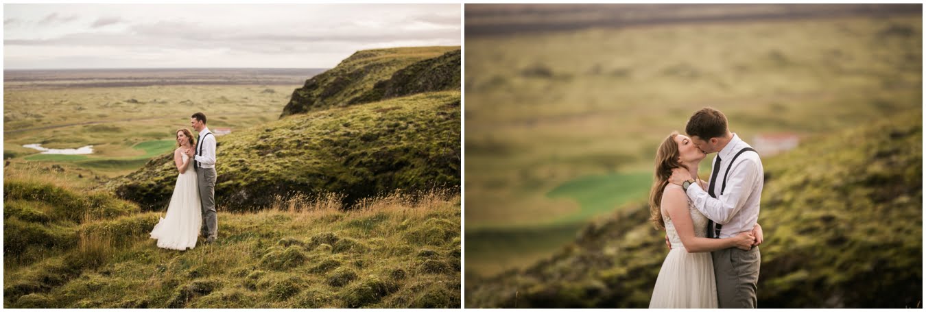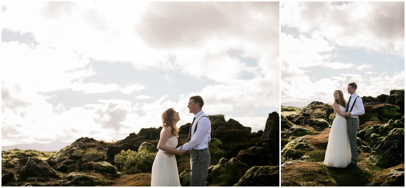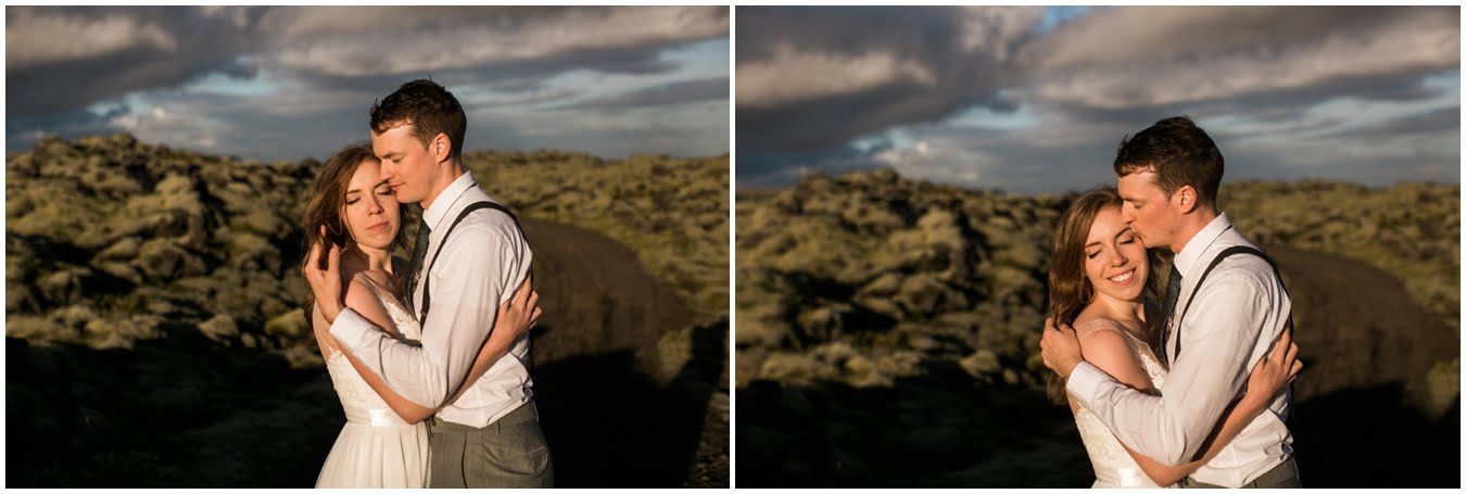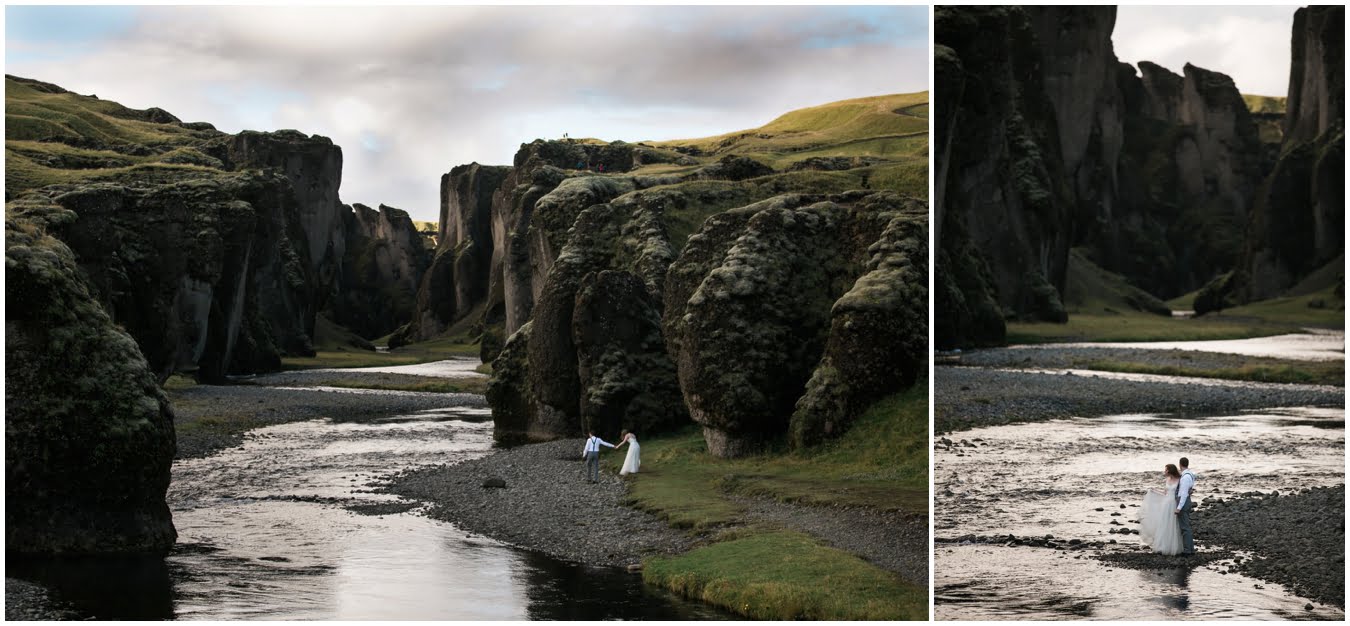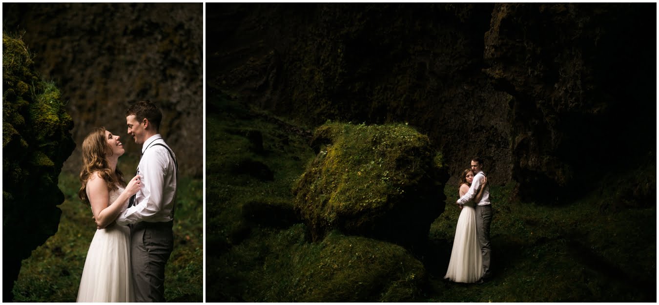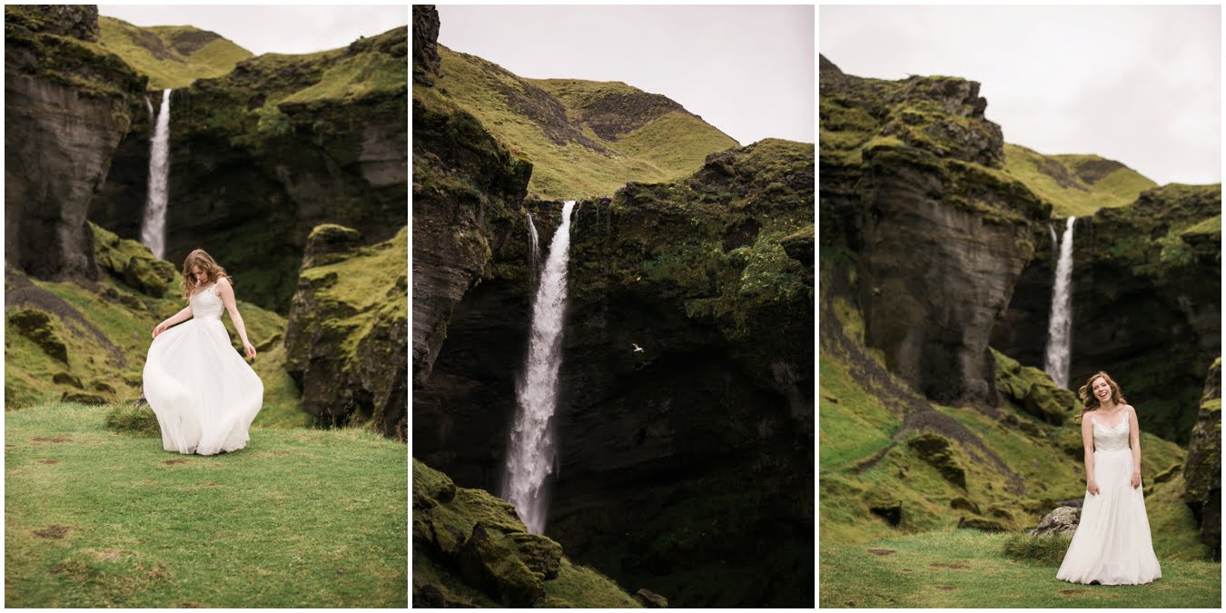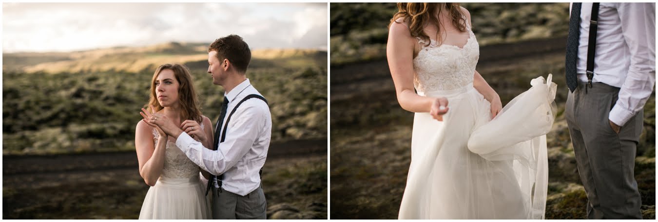 Meredith and Joe have made their life one big adventure. They’ve been together for nearly a decade and take every day as it comes. I had the pleasure of spending a wonderful week in Iceland with them, exploring the vast landscape of this wild, magic country. We spent two of those days, them in wedding clothes, me with my cameras in tow, climbing waterfalls, hiking up canyons, and watching the sun turn gold over vast lava fields as the day came to an end. These two know how to celebrate their anniversary, half portrait shoot, half Iceland elopement/vow renewal. From exchanging love letters at the base of a hidden waterfall to running across waving fields of lush green grass, to drinking champagne out of shot glasses in our warm tiny house, they made the celebration entirely their own and it was such an honor to be along for the ride.