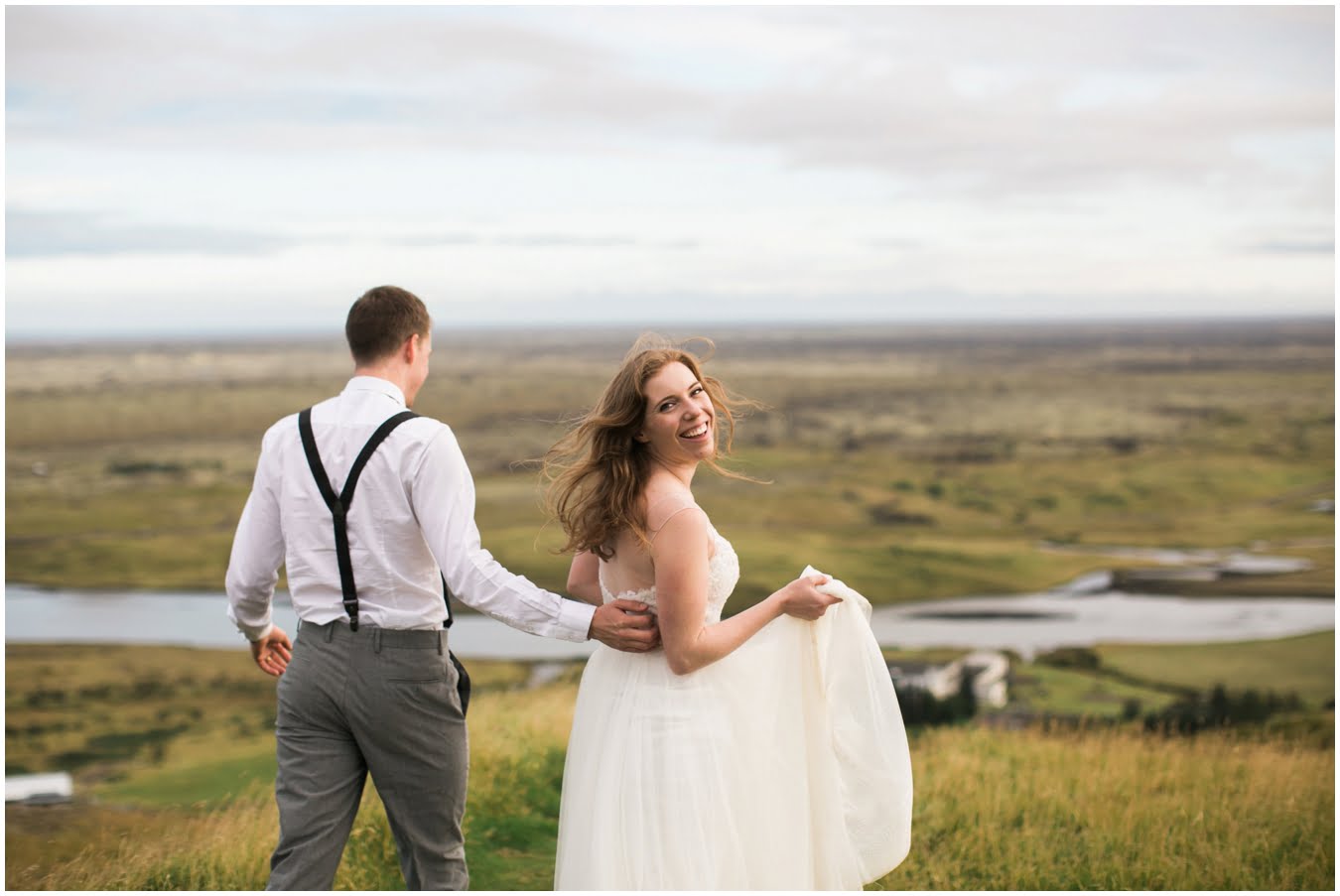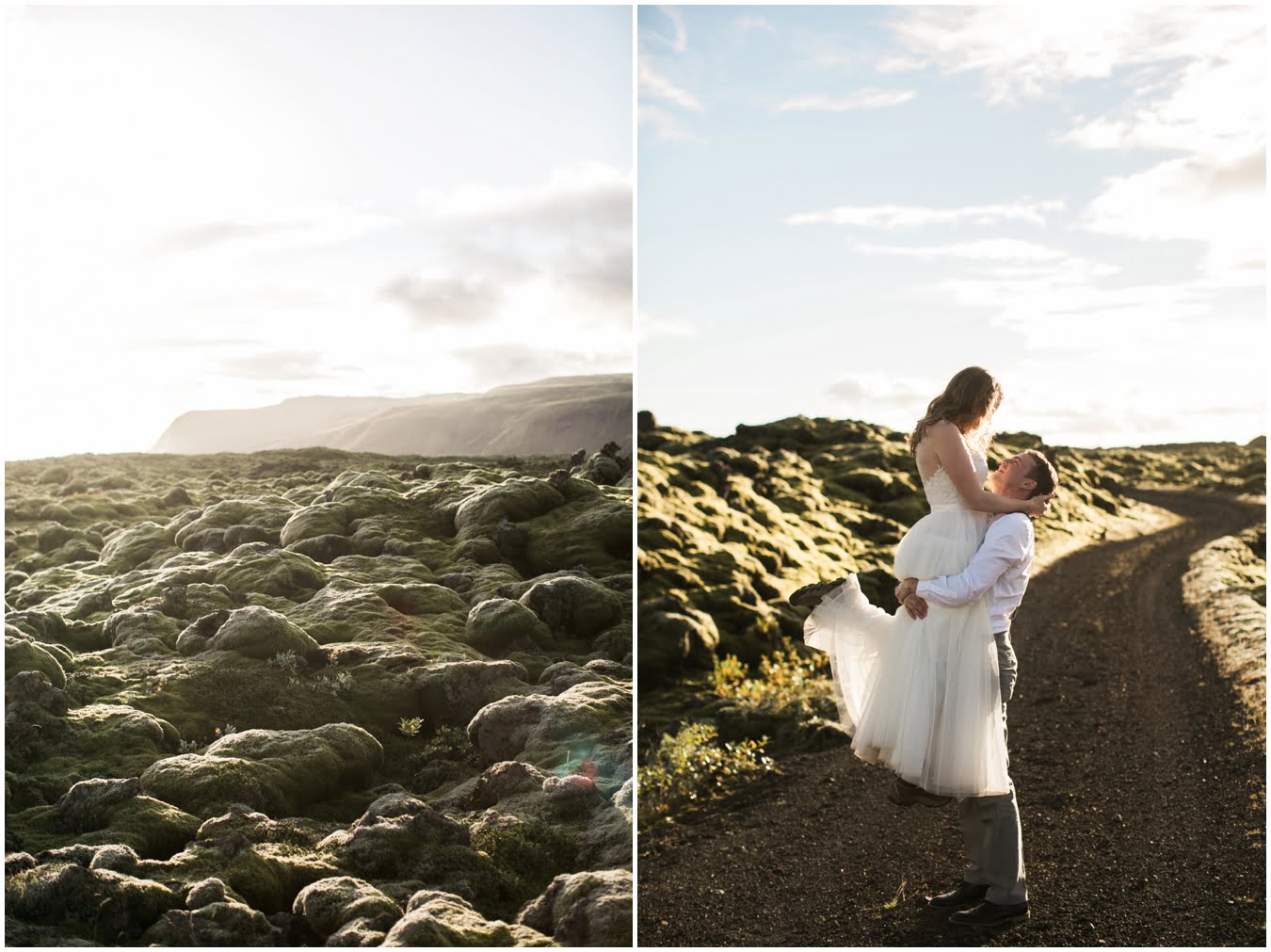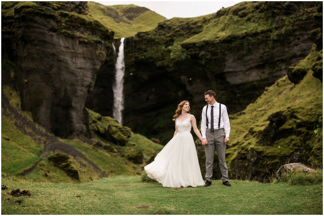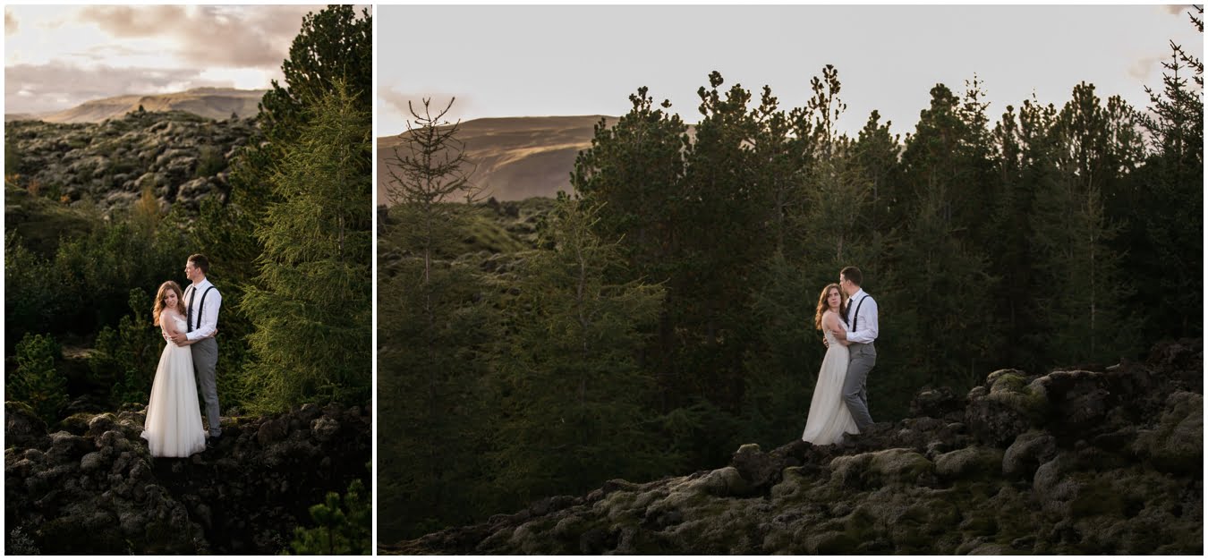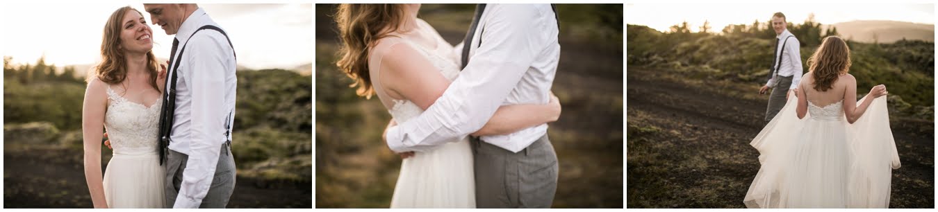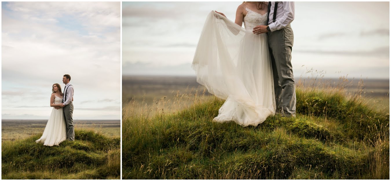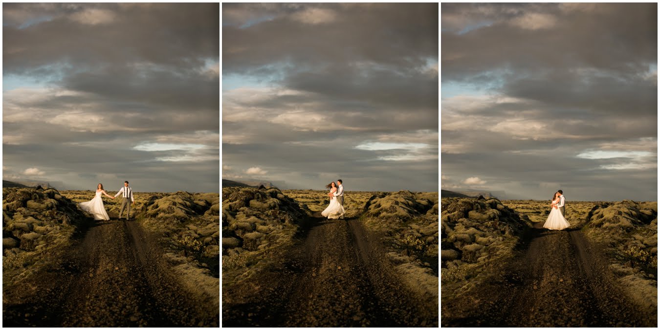 Meredith and Joe have made their life one big adventure. They’ve been together for nearly a decade and take every day as it comes. I had the pleasure of spending a wonderful week in Iceland with them, exploring the vast landscape of this wild, magic country. We spent two of those days, them in wedding clothes, me with my cameras in tow, climbing waterfalls, hiking up canyons, and watching the sun turn gold over vast lava fields as the day came to an end. These two know how to celebrate their anniversary, half portrait shoot, half Iceland elopement/vow renewal. From exchanging love letters at the base of a hidden waterfall to running across waving fields of lush green grass, to drinking champagne out of shot glasses in our warm tiny house, they made the celebration entirely their own and it was such an honor to be along for the ride.