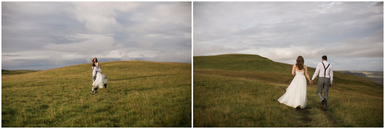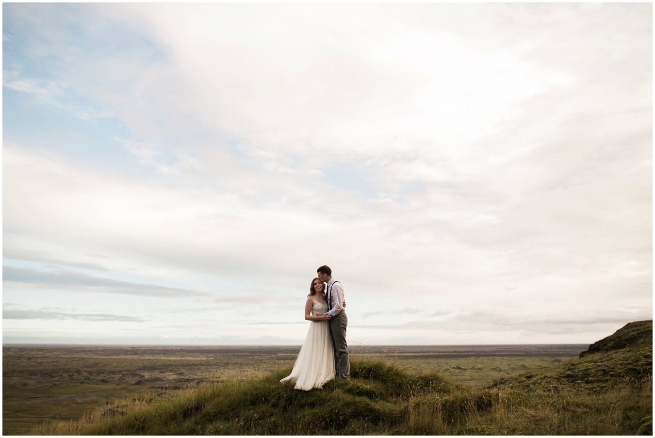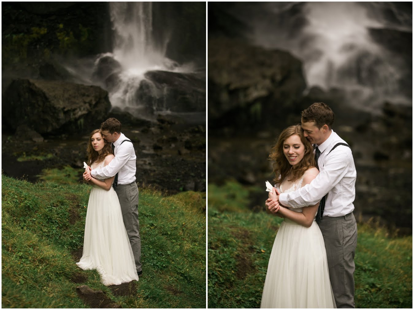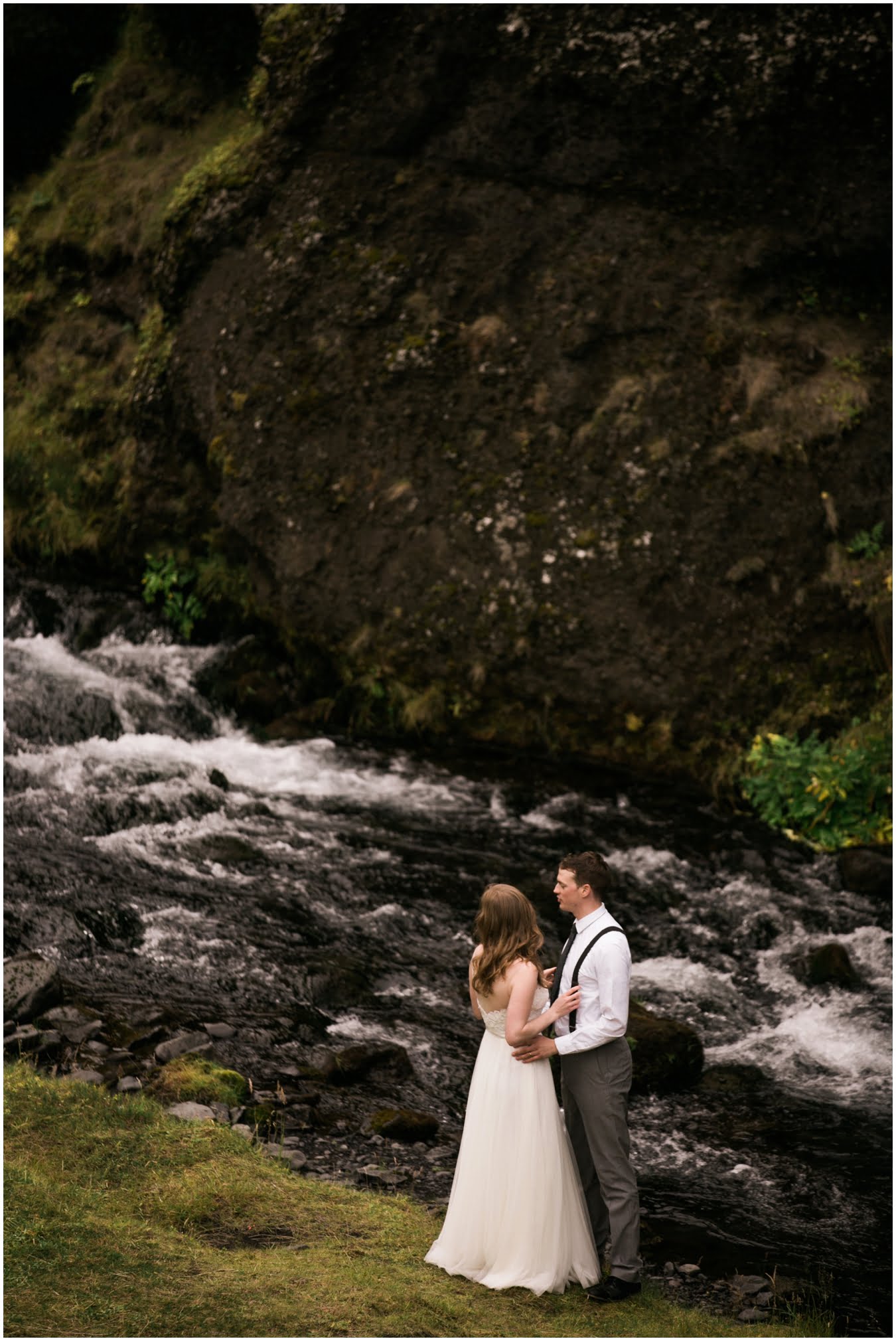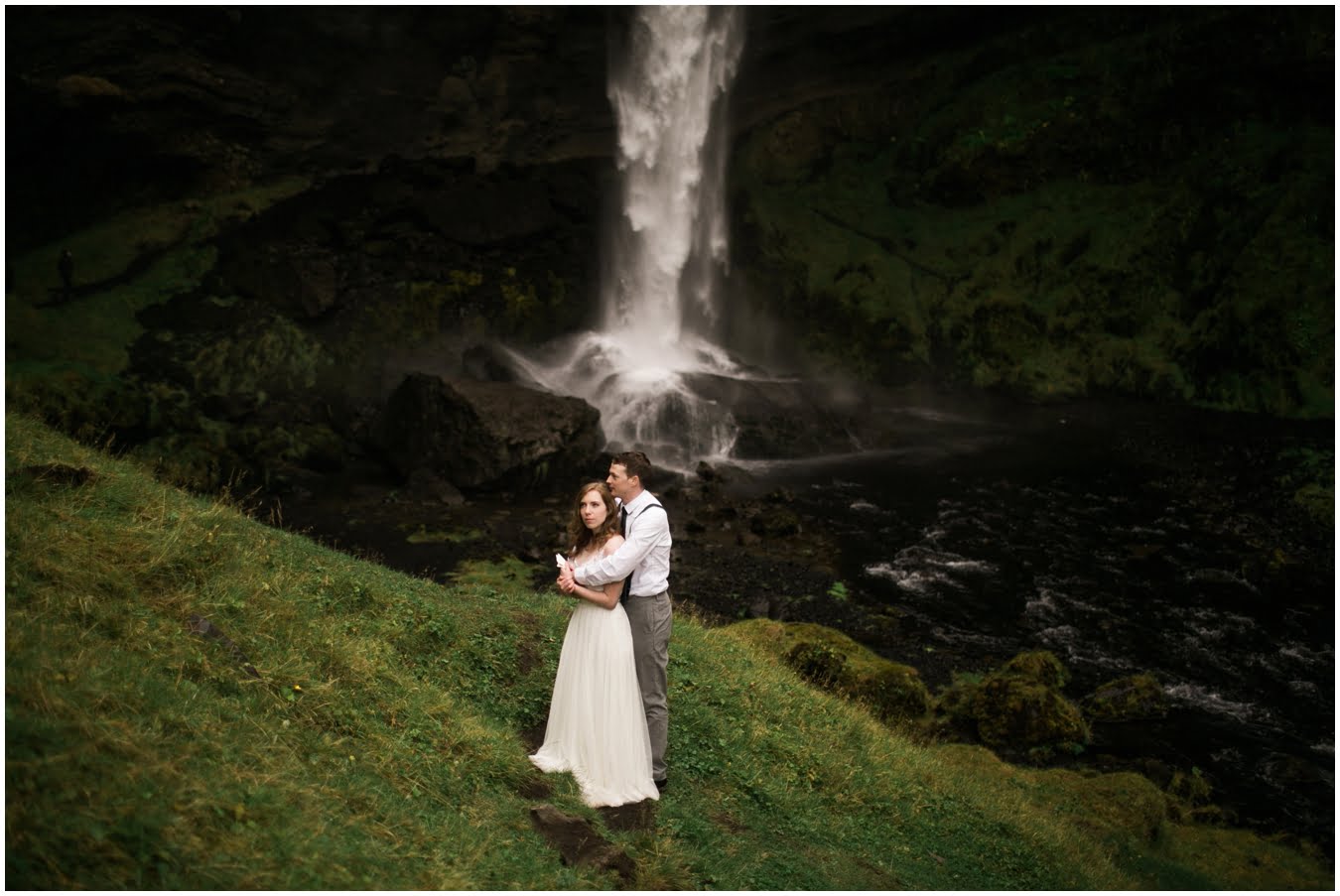 Meredith and Joe have made their life one big adventure. They’ve been together for nearly a decade and take every day as it comes. I had the pleasure of spending a wonderful week in Iceland with them, exploring the vast landscape of this wild, magic country. We spent two of those days, them in wedding clothes, me with my cameras in tow, climbing waterfalls, hiking up canyons, and watching the sun turn gold over vast lava fields as the day came to an end. These two know how to celebrate their anniversary, half portrait shoot, half Iceland elopement/vow renewal. From exchanging love letters at the base of a hidden waterfall to running across waving fields of lush green grass, to drinking champagne out of shot glasses in our warm tiny house, they made the celebration entirely their own and it was such an honor to be along for the ride.