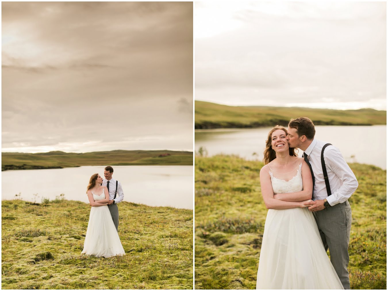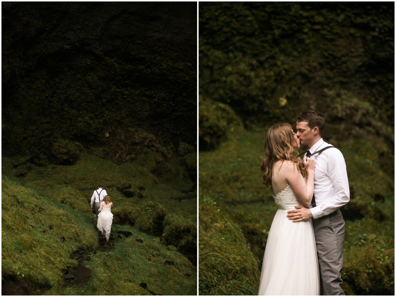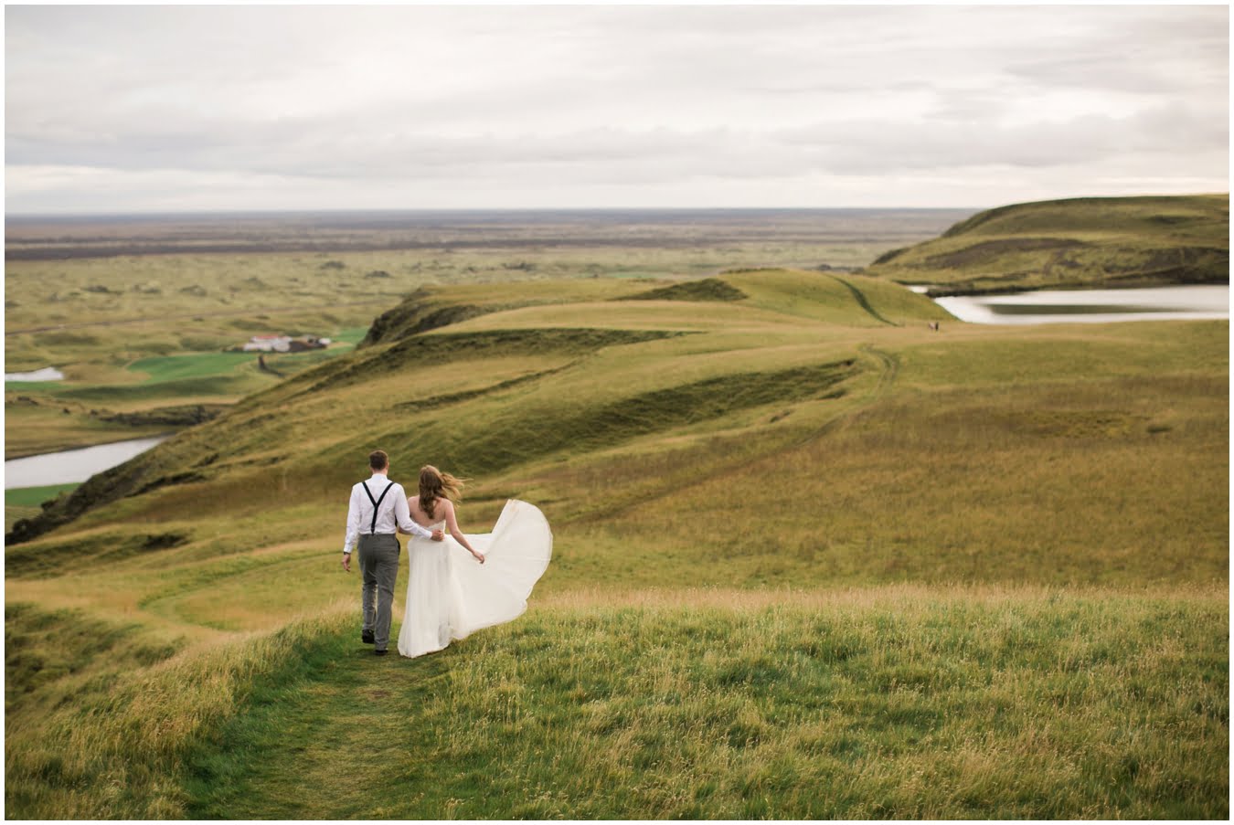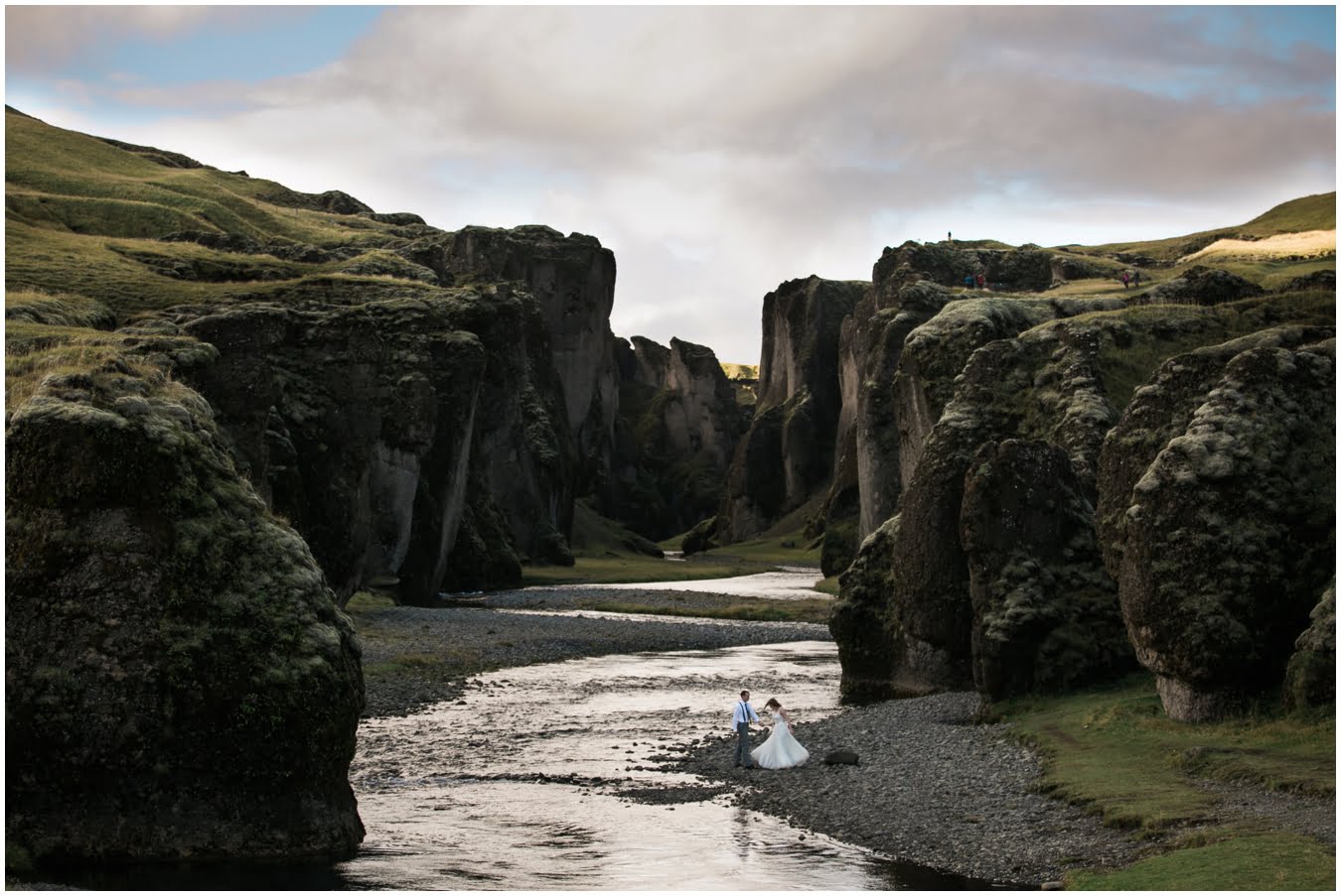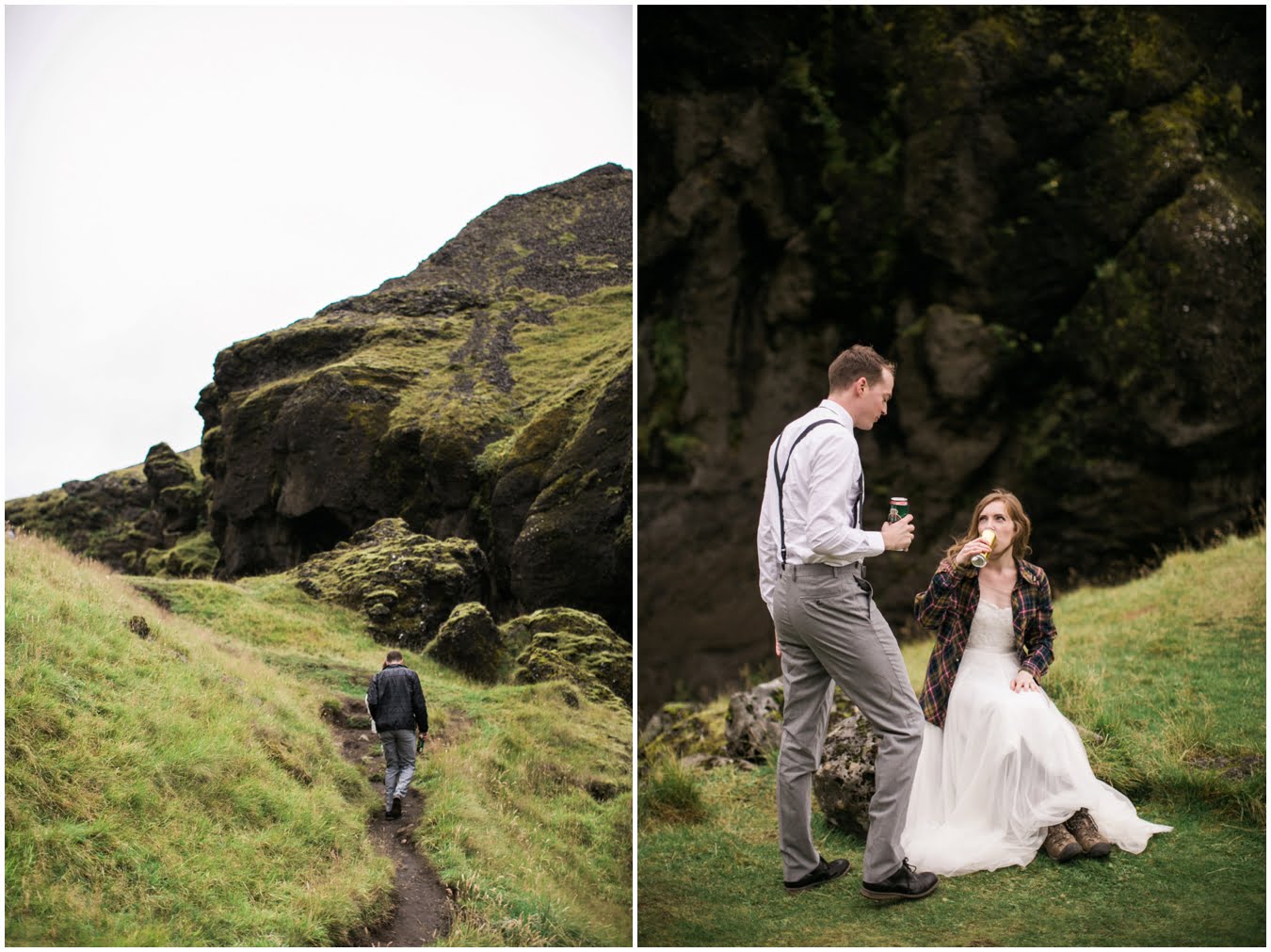 Meredith and Joe have made their life one big adventure. They’ve been together for nearly a decade and take every day as it comes. I had the pleasure of spending a wonderful week in Iceland with them, exploring the vast landscape of this wild, magic country. We spent two of those days, them in wedding clothes, me with my cameras in tow, climbing waterfalls, hiking up canyons, and watching the sun turn gold over vast lava fields as the day came to an end. These two know how to celebrate their anniversary, half portrait shoot, half Iceland elopement/vow renewal. From exchanging love letters at the base of a hidden waterfall to running across waving fields of lush green grass, to drinking champagne out of shot glasses in our warm tiny house, they made the celebration entirely their own and it was such an honor to be along for the ride.