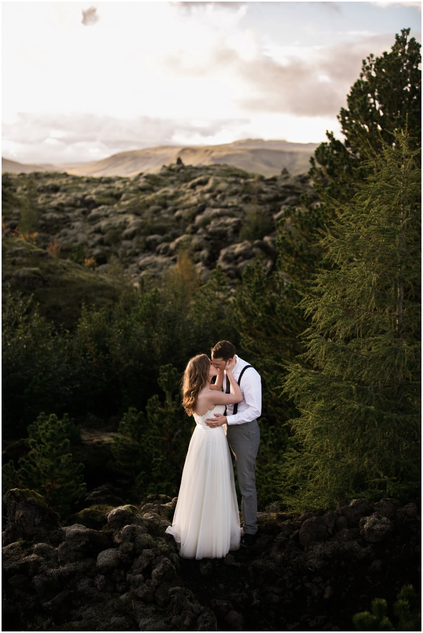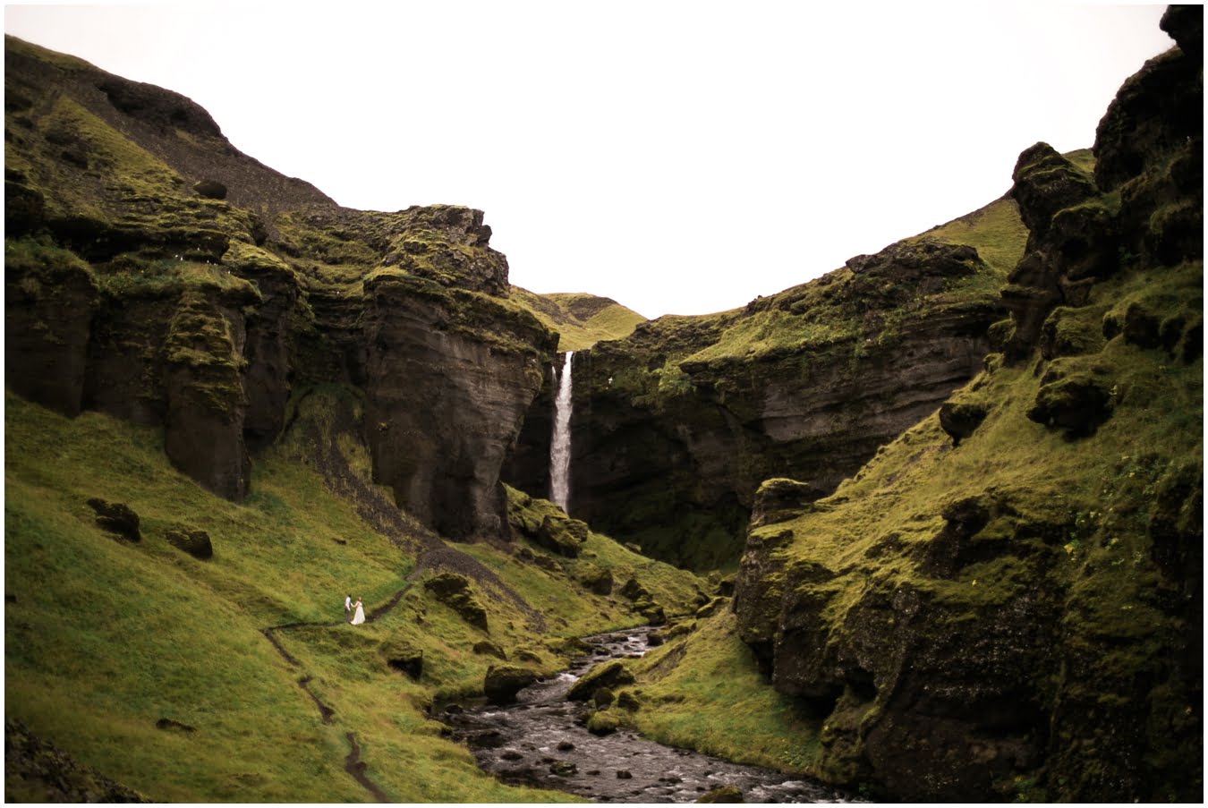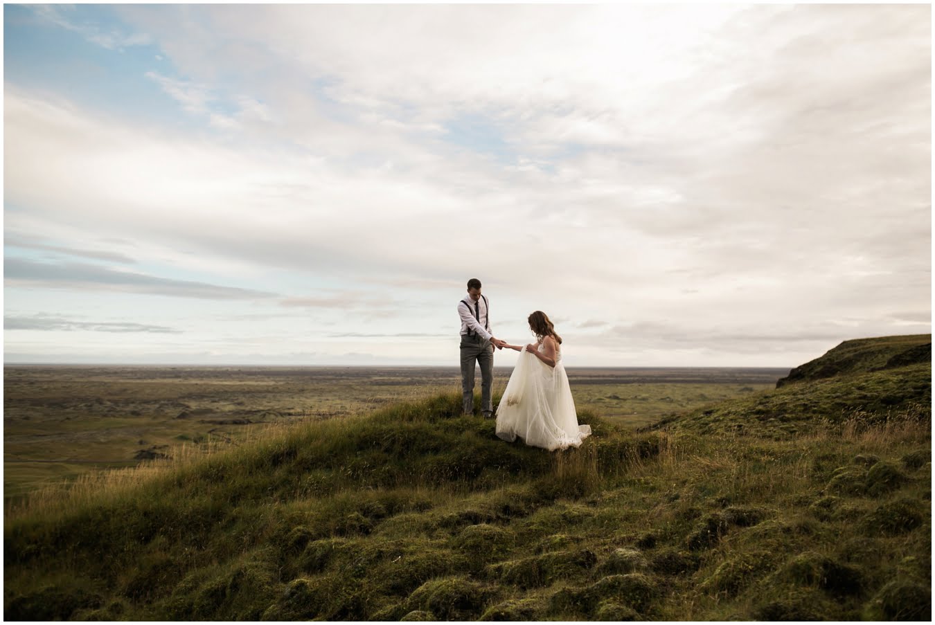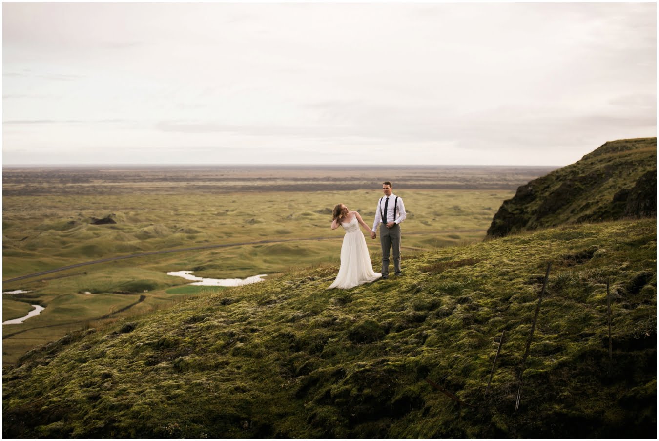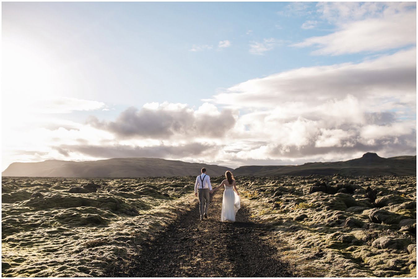 Meredith and Joe have made their life one big adventure. They’ve been together for nearly a decade and take every day as it comes. I had the pleasure of spending a wonderful week in Iceland with them, exploring the vast landscape of this wild, magic country. We spent two of those days, them in wedding clothes, me with my cameras in tow, climbing waterfalls, hiking up canyons, and watching the sun turn gold over vast lava fields as the day came to an end. These two know how to celebrate their anniversary, half portrait shoot, half Iceland elopement/vow renewal. From exchanging love letters at the base of a hidden waterfall to running across waving fields of lush green grass, to drinking champagne out of shot glasses in our warm tiny house, they made the celebration entirely their own and it was such an honor to be along for the ride.