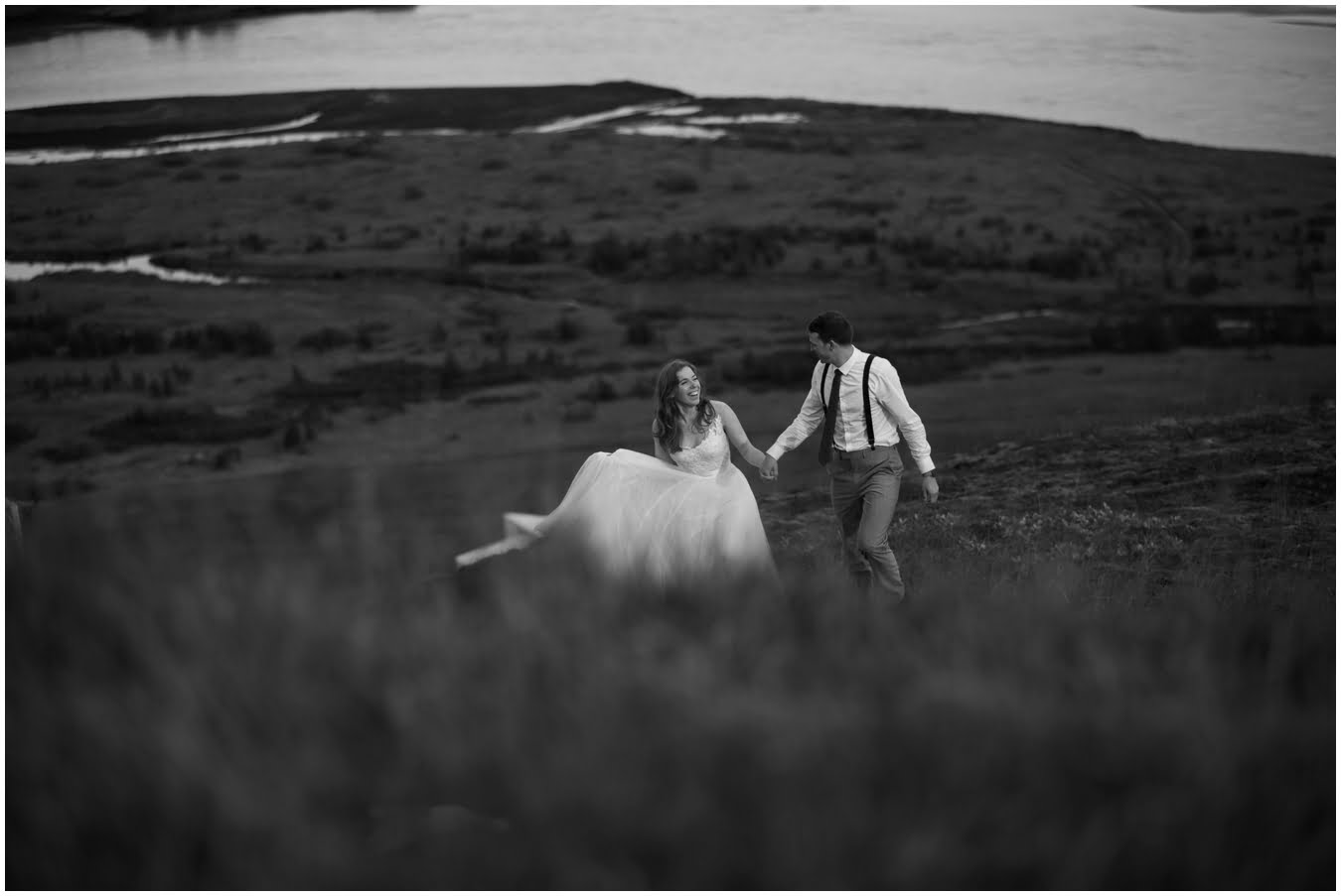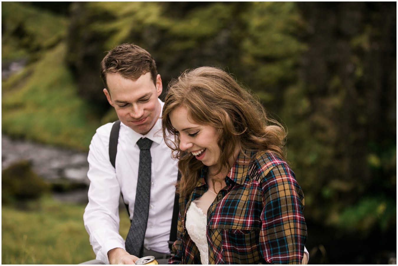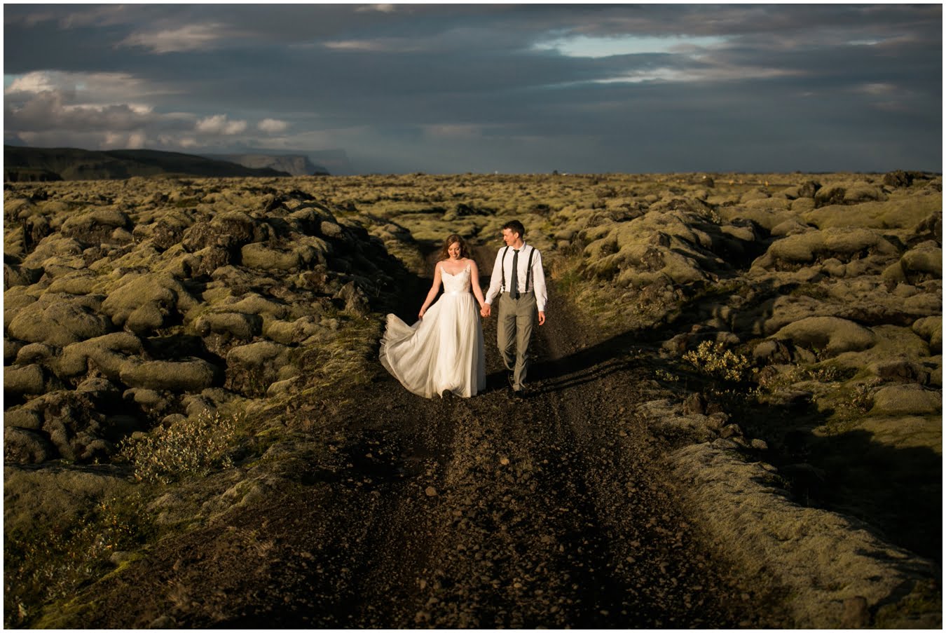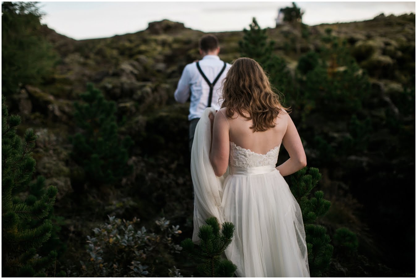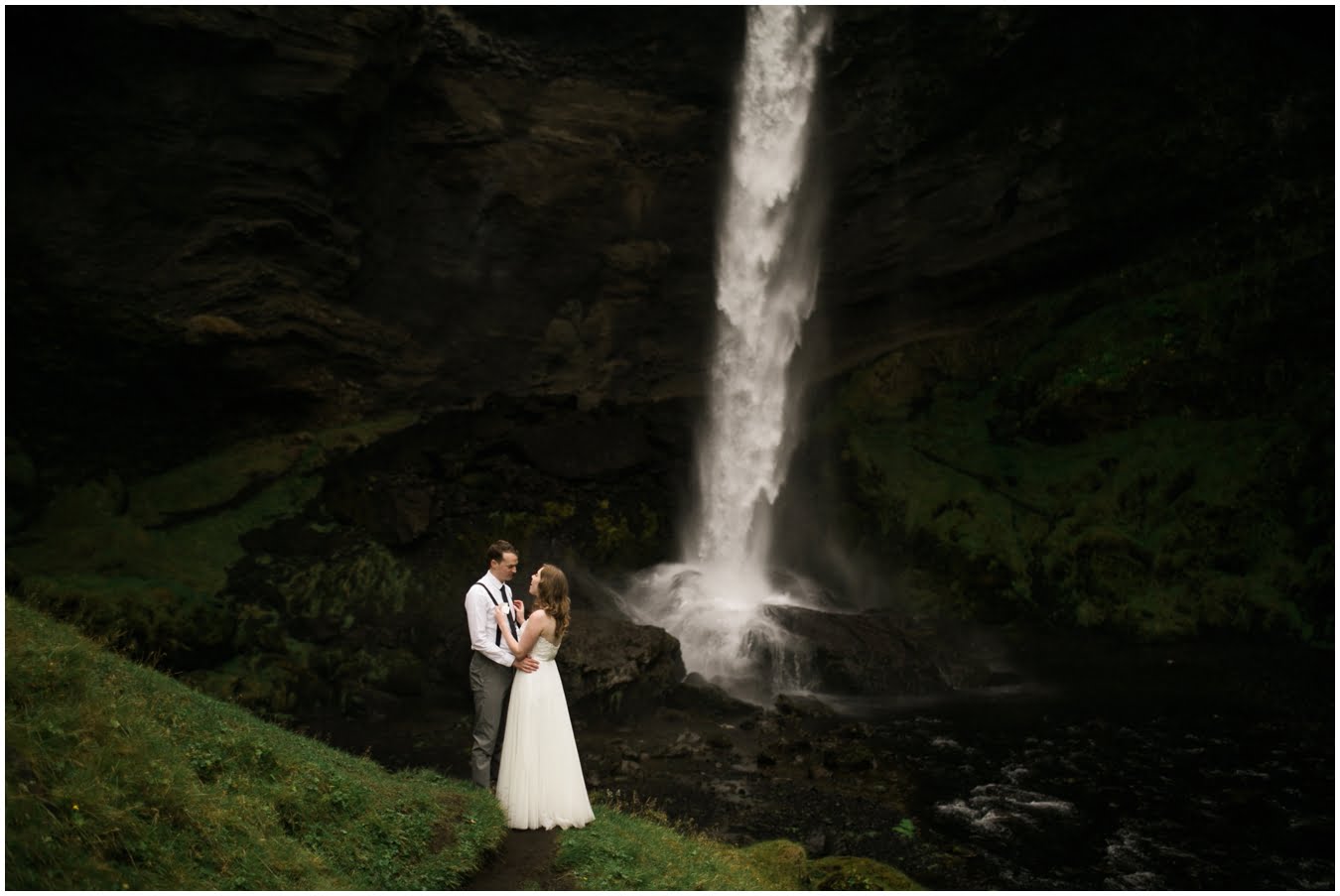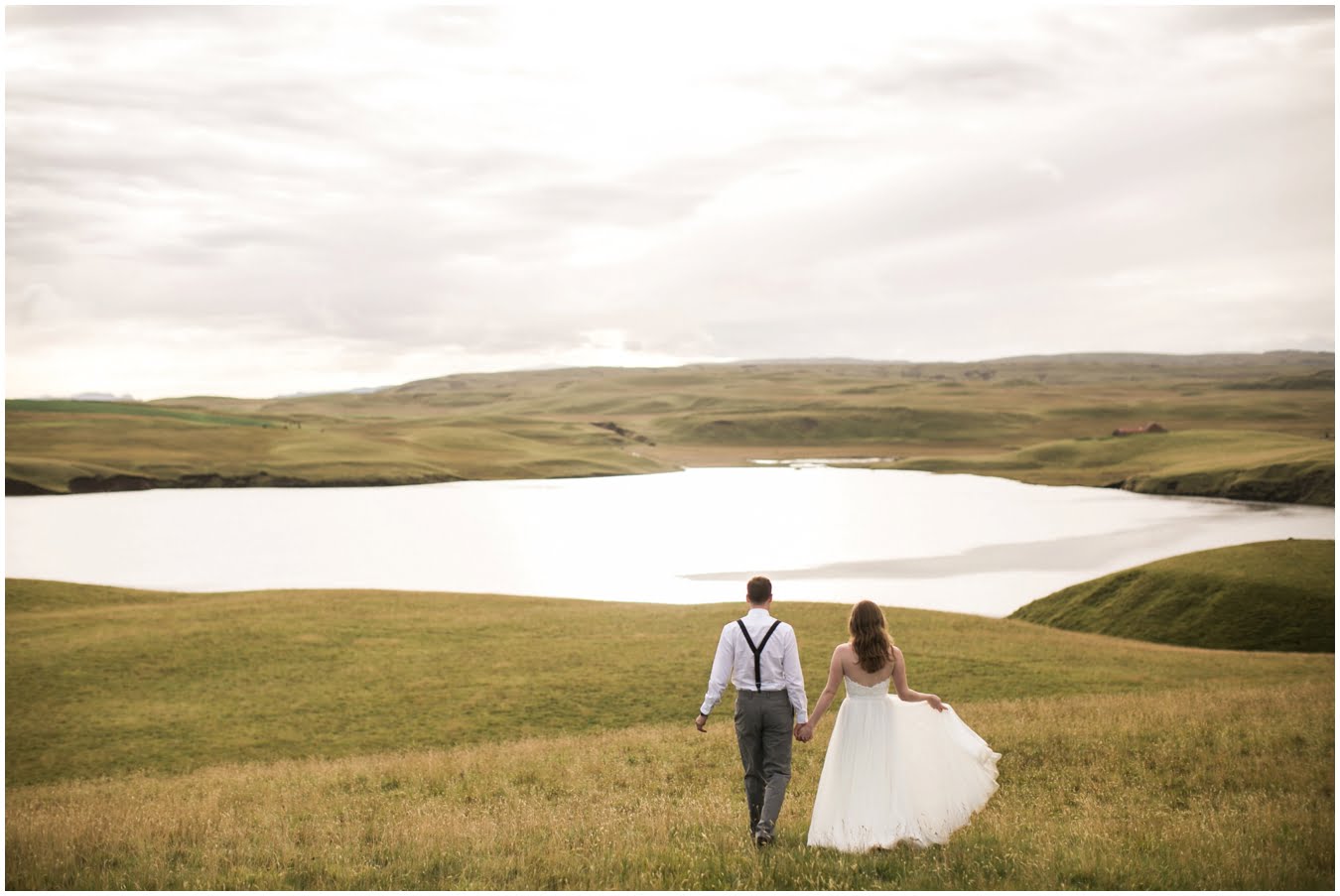 Meredith and Joe have made their life one big adventure. They’ve been together for nearly a decade and take every day as it comes. I had the pleasure of spending a wonderful week in Iceland with them, exploring the vast landscape of this wild, magic country. We spent two of those days, them in wedding clothes, me with my cameras in tow, climbing waterfalls, hiking up canyons, and watching the sun turn gold over vast lava fields as the day came to an end. These two know how to celebrate their anniversary, half portrait shoot, half Iceland elopement/vow renewal. From exchanging love letters at the base of a hidden waterfall to running across waving fields of lush green grass, to drinking champagne out of shot glasses in our warm tiny house, they made the celebration entirely their own and it was such an honor to be along for the ride.