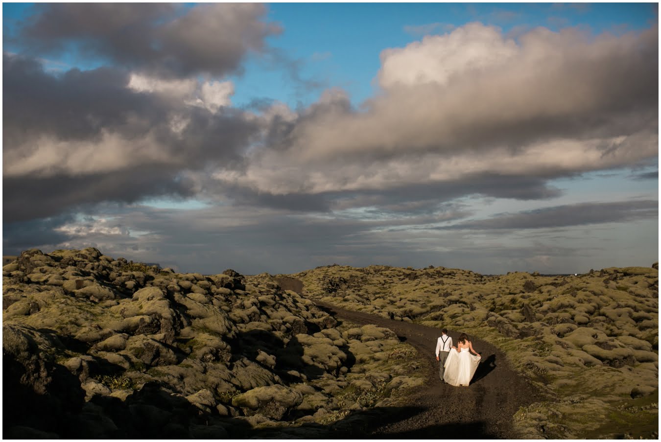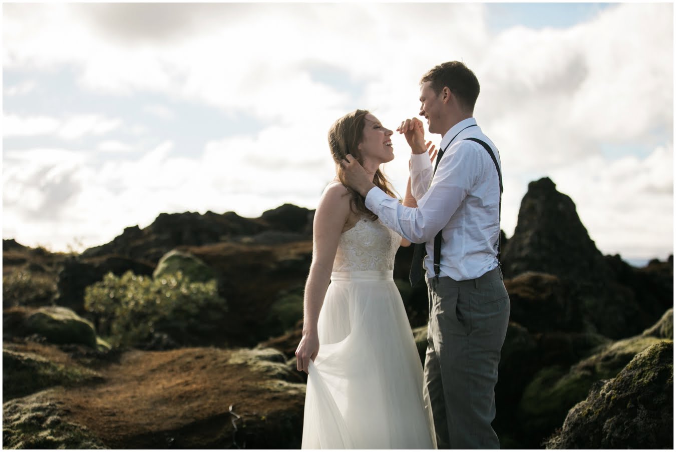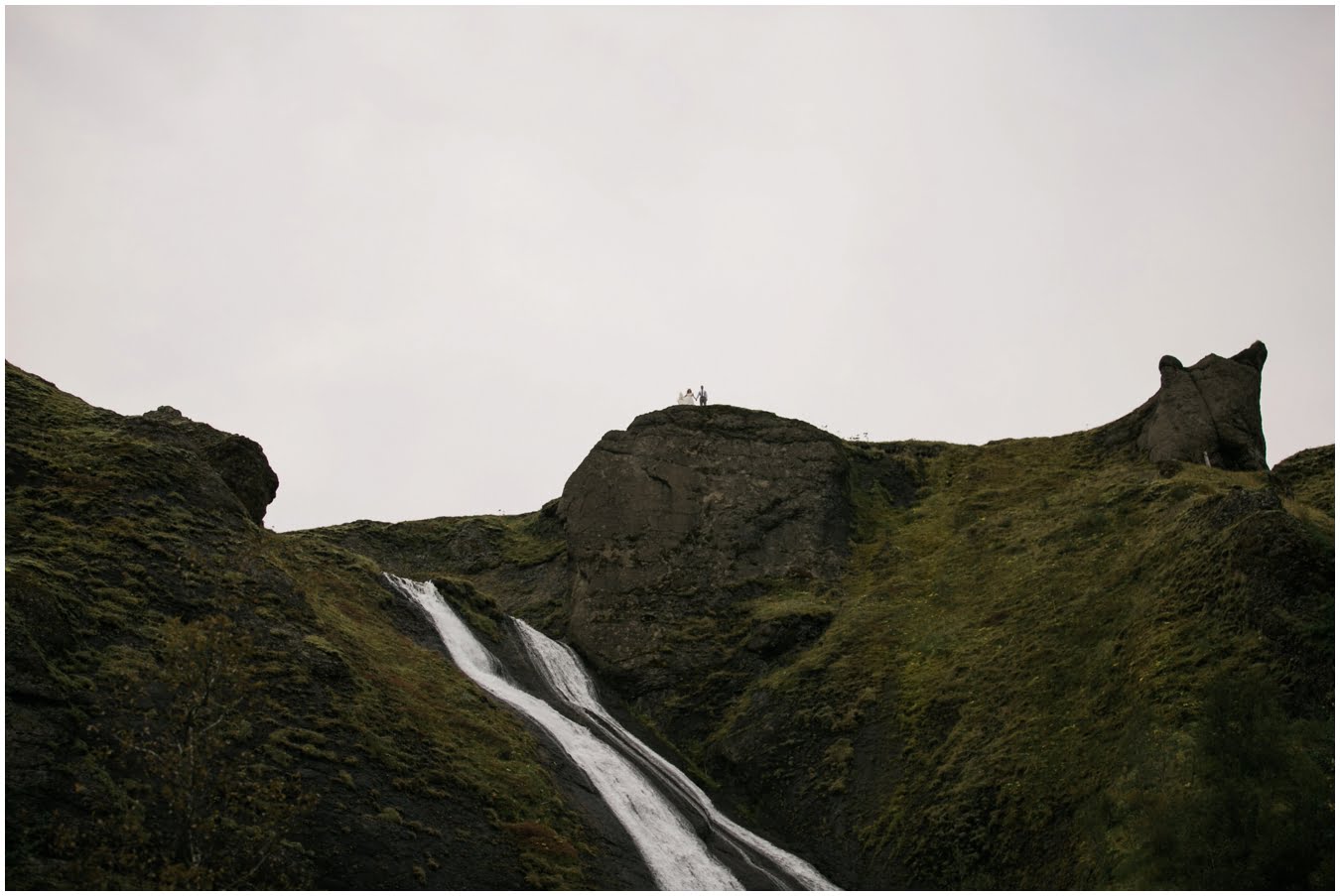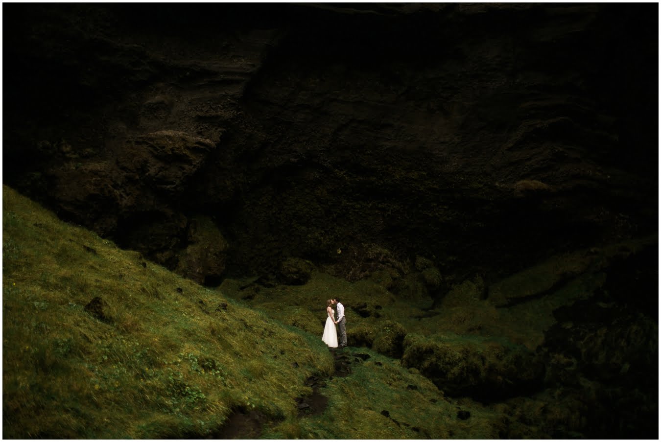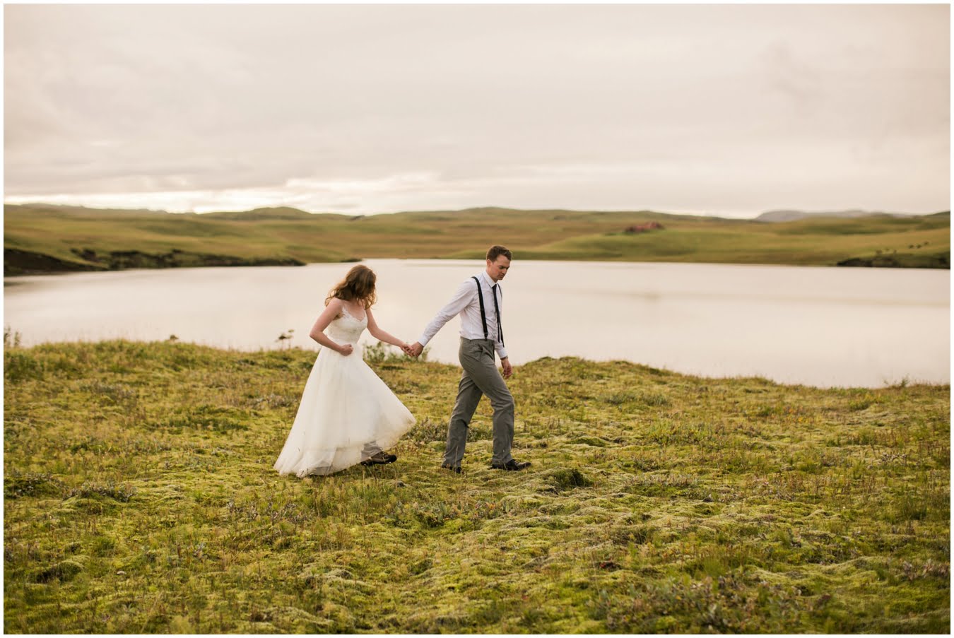 Meredith and Joe have made their life one big adventure. They’ve been together for nearly a decade and take every day as it comes. I had the pleasure of spending a wonderful week in Iceland with them, exploring the vast landscape of this wild, magic country. We spent two of those days, them in wedding clothes, me with my cameras in tow, climbing waterfalls, hiking up canyons, and watching the sun turn gold over vast lava fields as the day came to an end. These two know how to celebrate their anniversary, half portrait shoot, half Iceland elopement/vow renewal. From exchanging love letters at the base of a hidden waterfall to running across waving fields of lush green grass, to drinking champagne out of shot glasses in our warm tiny house, they made the celebration entirely their own and it was such an honor to be along for the ride.