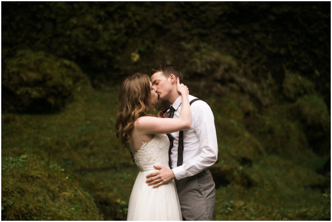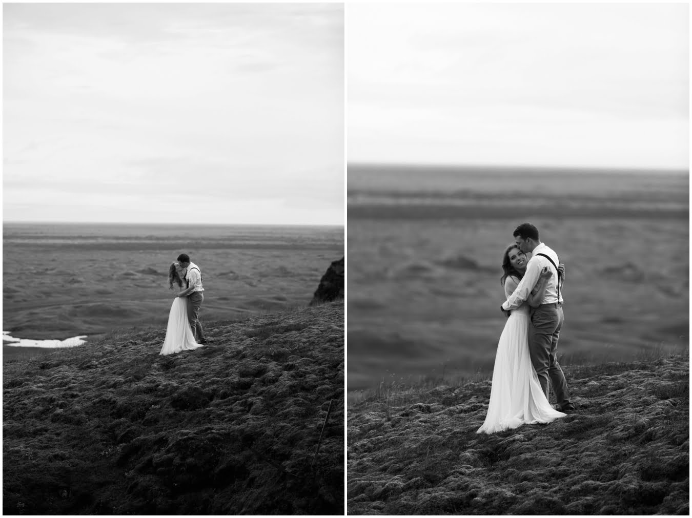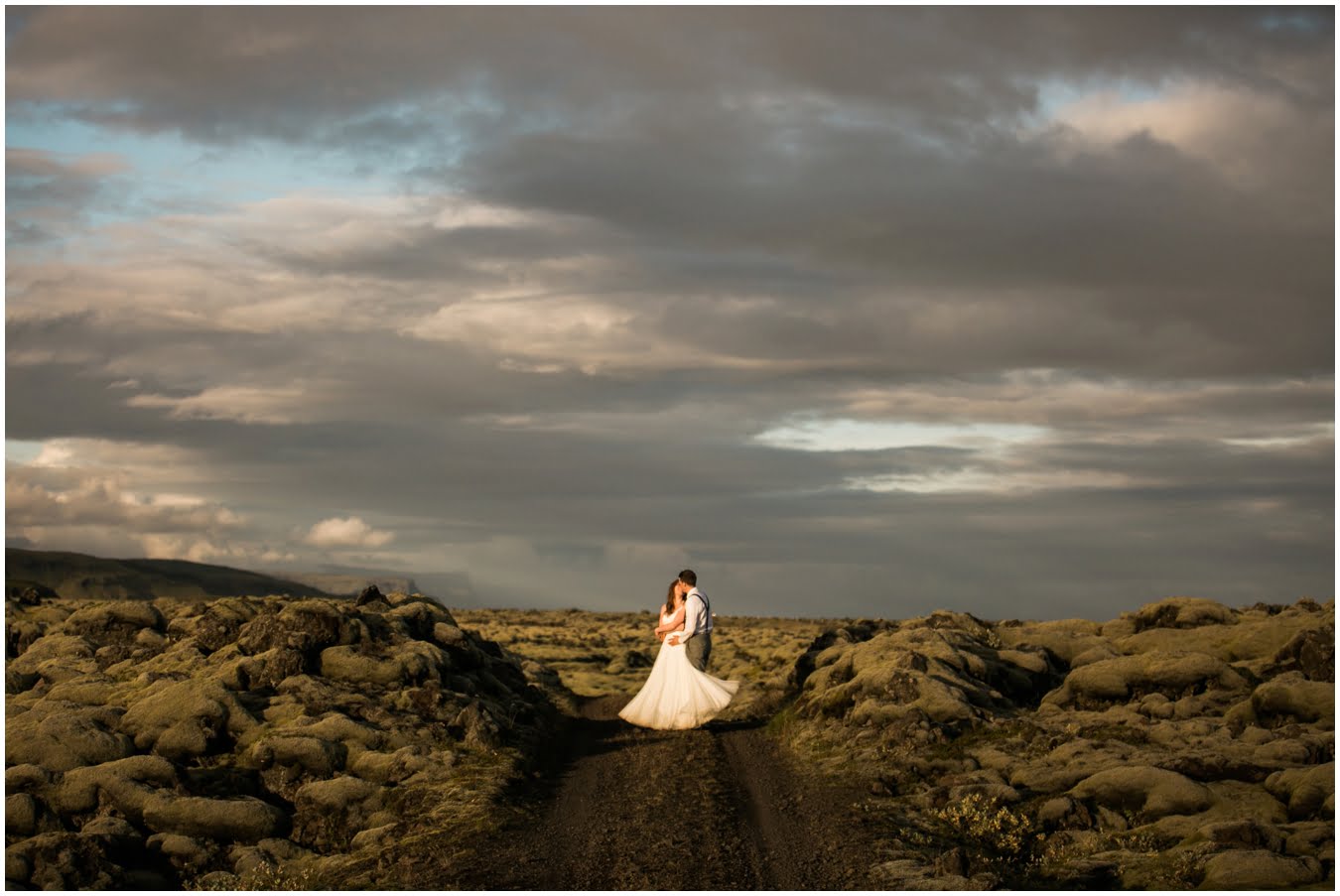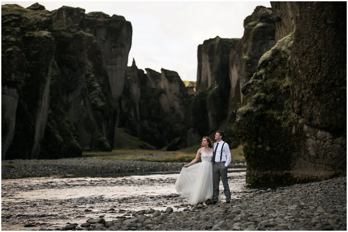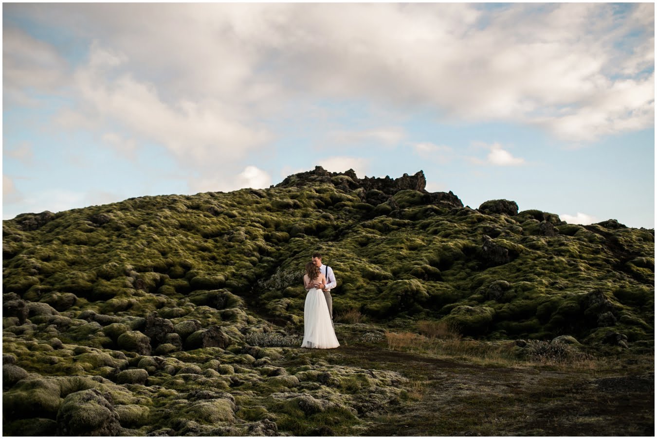 Meredith and Joe have made their life one big adventure. They’ve been together for nearly a decade and take every day as it comes. I had the pleasure of spending a wonderful week in Iceland with them, exploring the vast landscape of this wild, magic country. We spent two of those days, them in wedding clothes, me with my cameras in tow, climbing waterfalls, hiking up canyons, and watching the sun turn gold over vast lava fields as the day came to an end. These two know how to celebrate their anniversary, half portrait shoot, half Iceland elopement/vow renewal. From exchanging love letters at the base of a hidden waterfall to running across waving fields of lush green grass, to drinking champagne out of shot glasses in our warm tiny house, they made the celebration entirely their own and it was such an honor to be along for the ride.