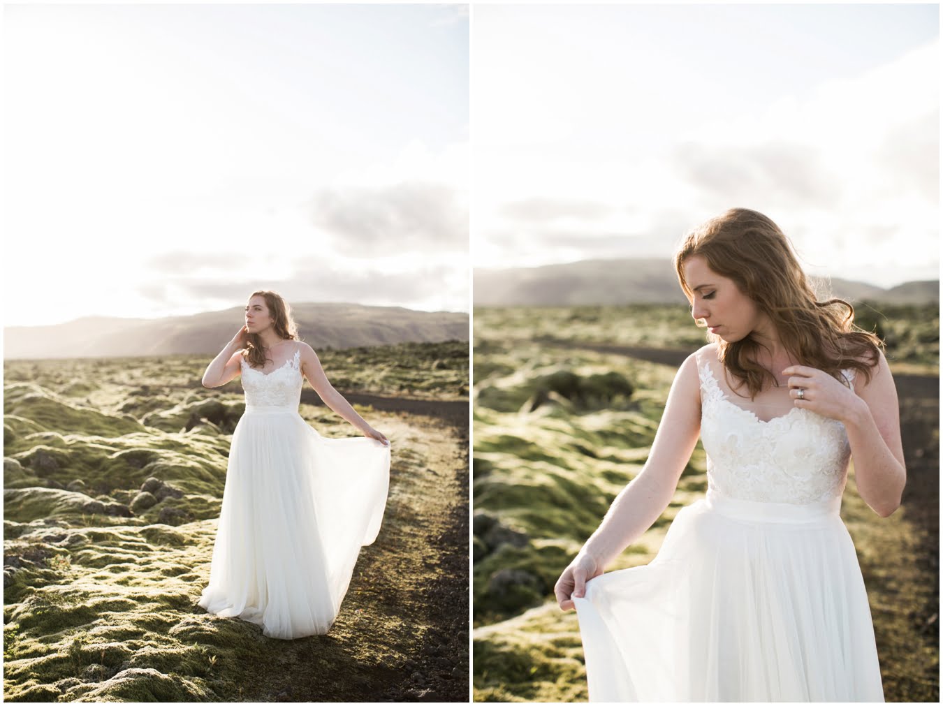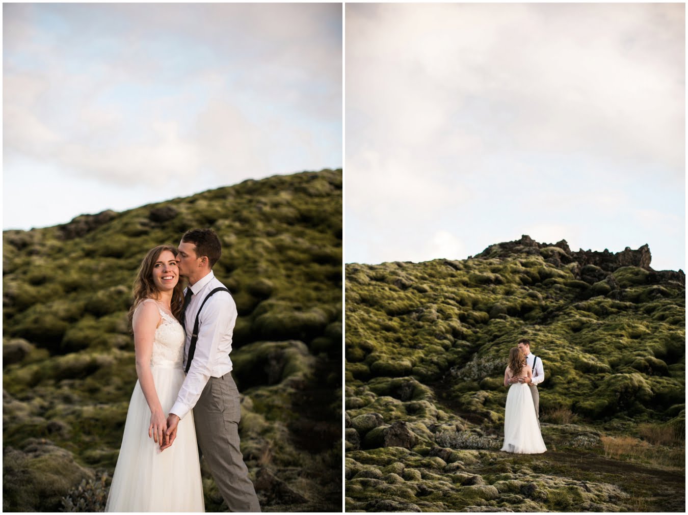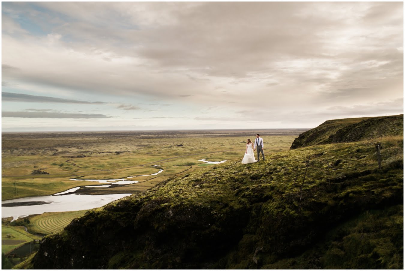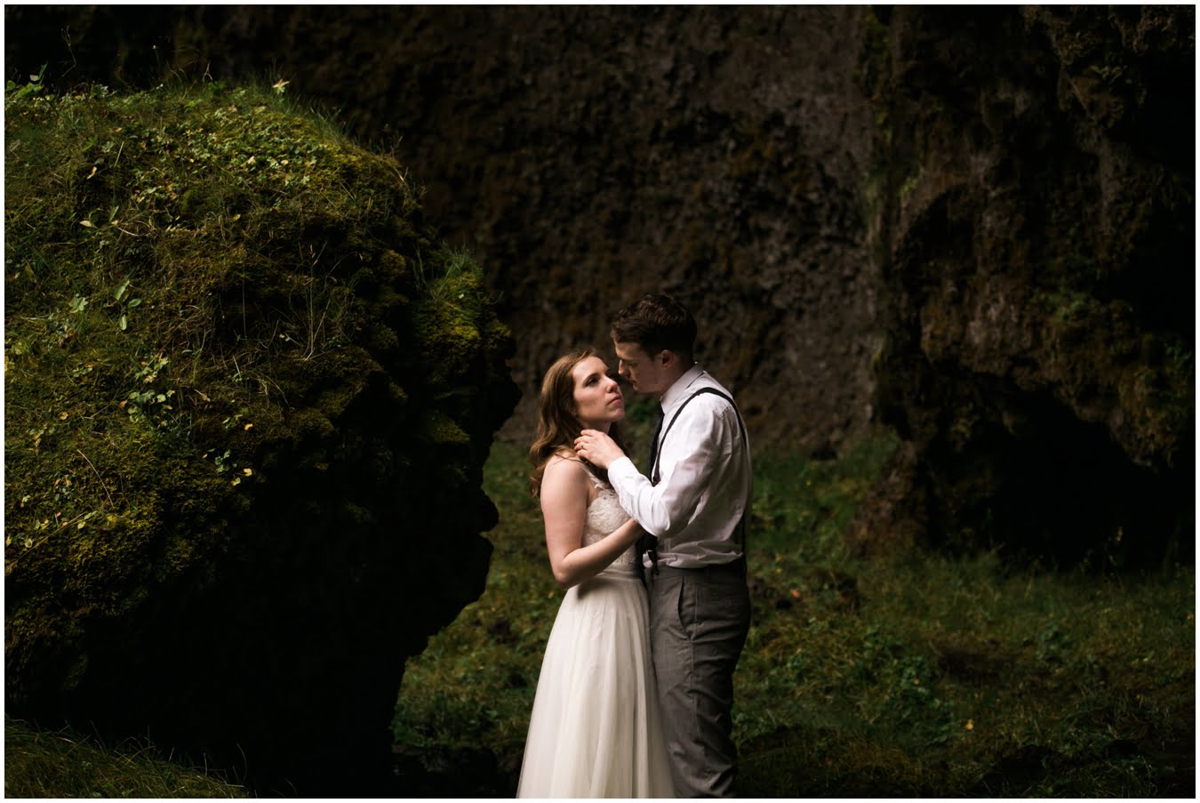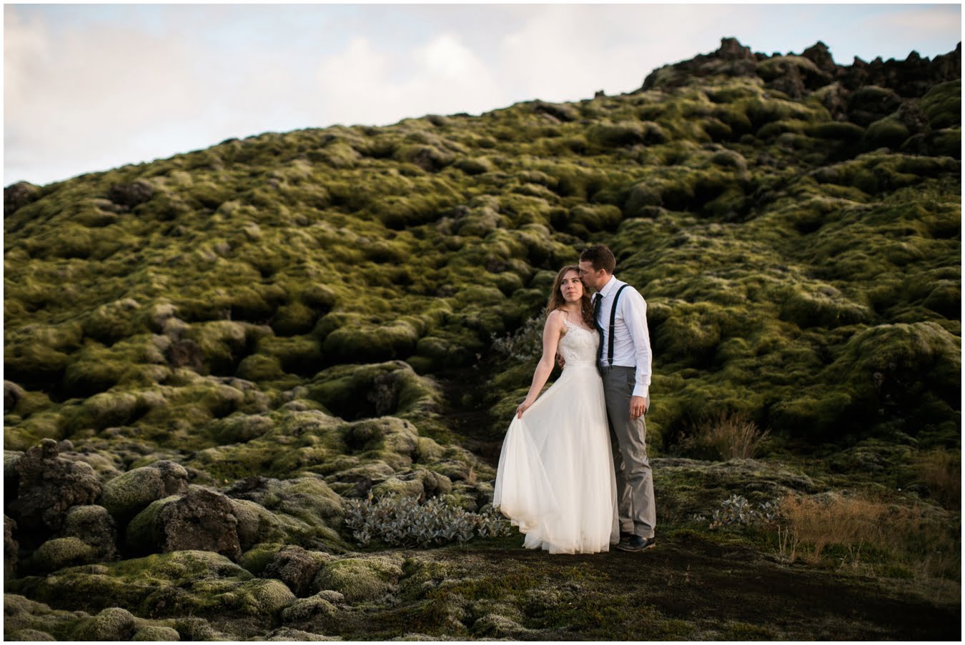 Meredith and Joe have made their life one big adventure. They’ve been together for nearly a decade and take every day as it comes. I had the pleasure of spending a wonderful week in Iceland with them, exploring the vast landscape of this wild, magic country. We spent two of those days, them in wedding clothes, me with my cameras in tow, climbing waterfalls, hiking up canyons, and watching the sun turn gold over vast lava fields as the day came to an end. These two know how to celebrate their anniversary, half portrait shoot, half Iceland elopement/vow renewal. From exchanging love letters at the base of a hidden waterfall to running across waving fields of lush green grass, to drinking champagne out of shot glasses in our warm tiny house, they made the celebration entirely their own and it was such an honor to be along for the ride.