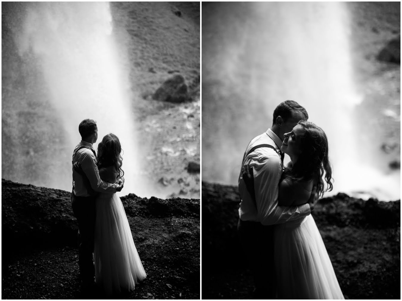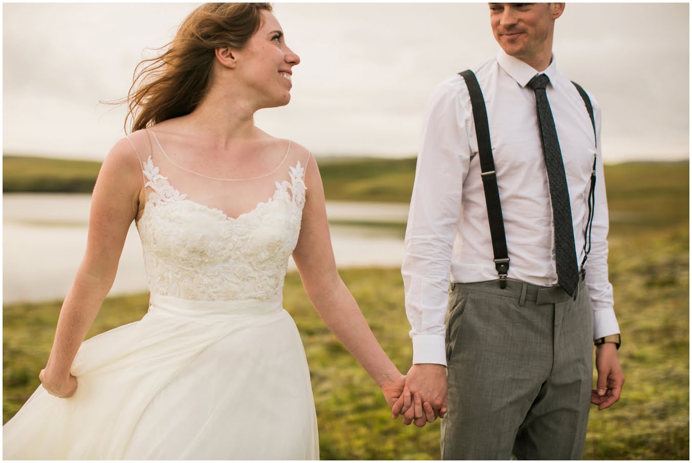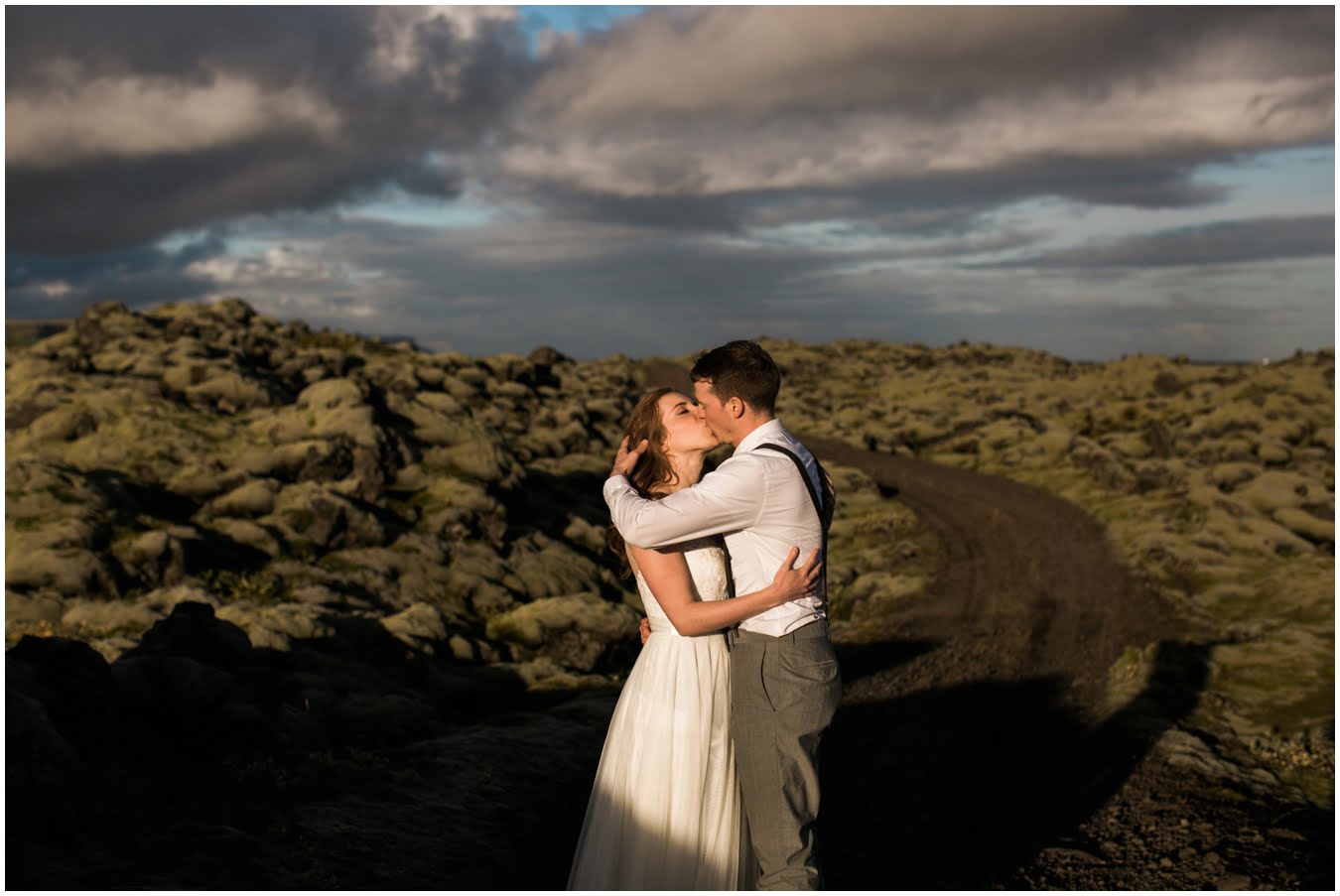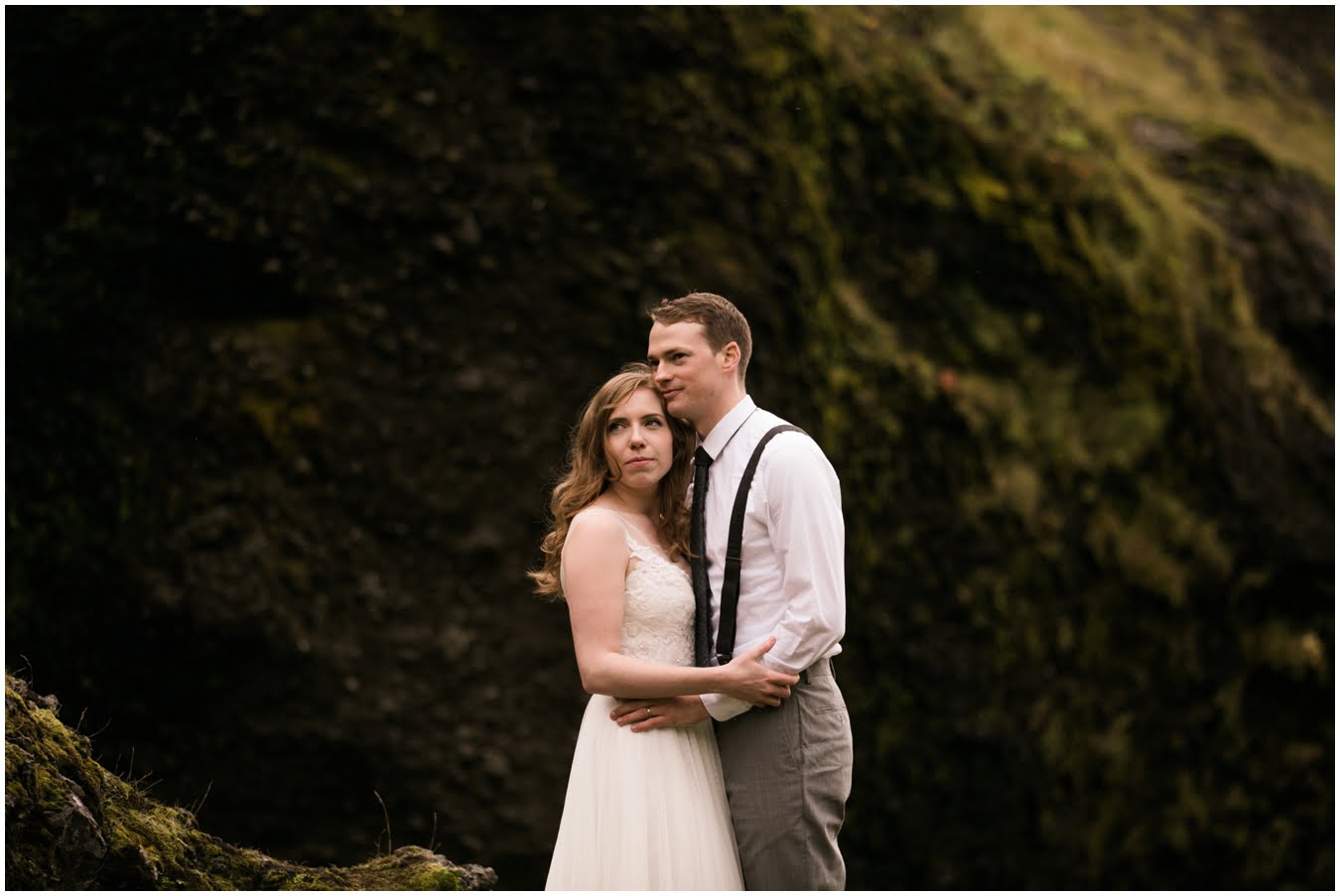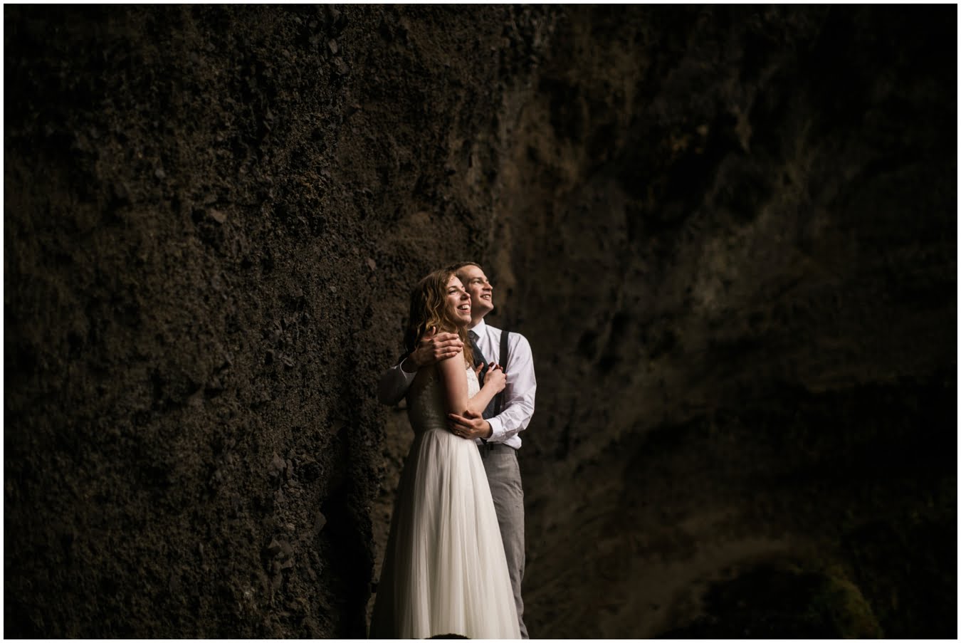 Meredith and Joe have made their life one big adventure. They’ve been together for nearly a decade and take every day as it comes. I had the pleasure of spending a wonderful week in Iceland with them, exploring the vast landscape of this wild, magic country. We spent two of those days, them in wedding clothes, me with my cameras in tow, climbing waterfalls, hiking up canyons, and watching the sun turn gold over vast lava fields as the day came to an end. These two know how to celebrate their anniversary, half portrait shoot, half Iceland elopement/vow renewal. From exchanging love letters at the base of a hidden waterfall to running across waving fields of lush green grass, to drinking champagne out of shot glasses in our warm tiny house, they made the celebration entirely their own and it was such an honor to be along for the ride.