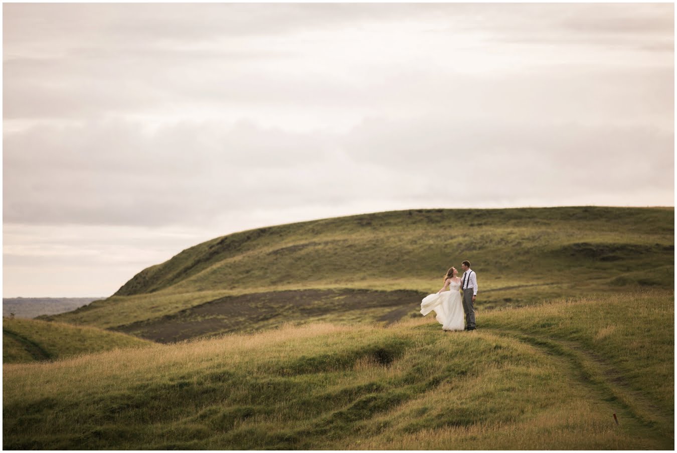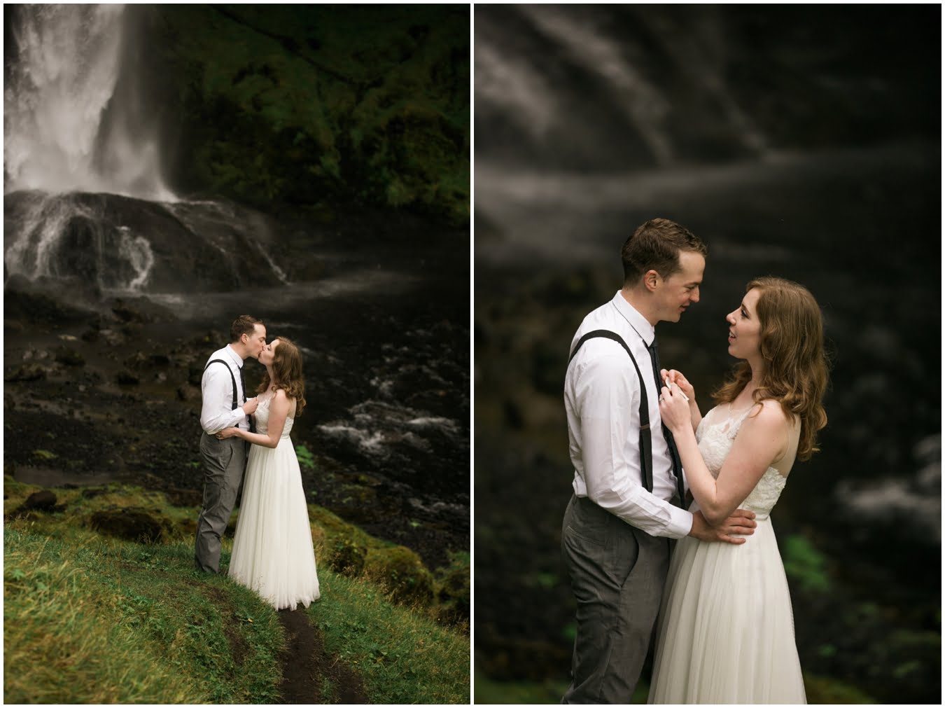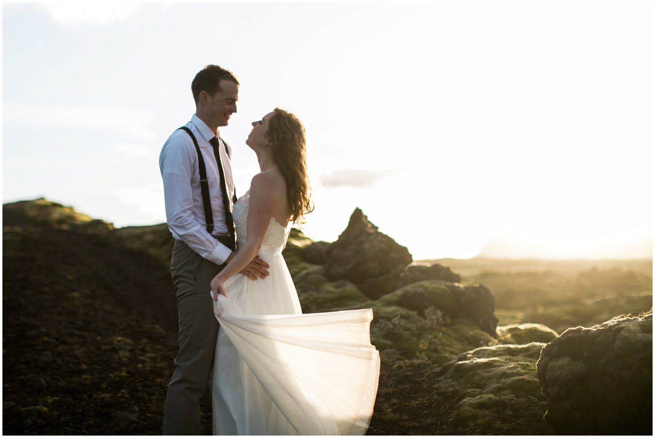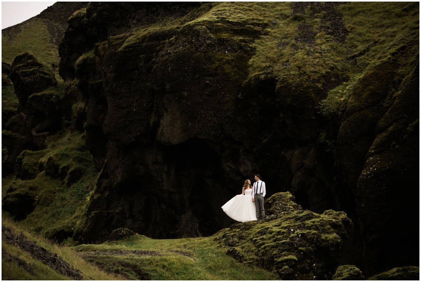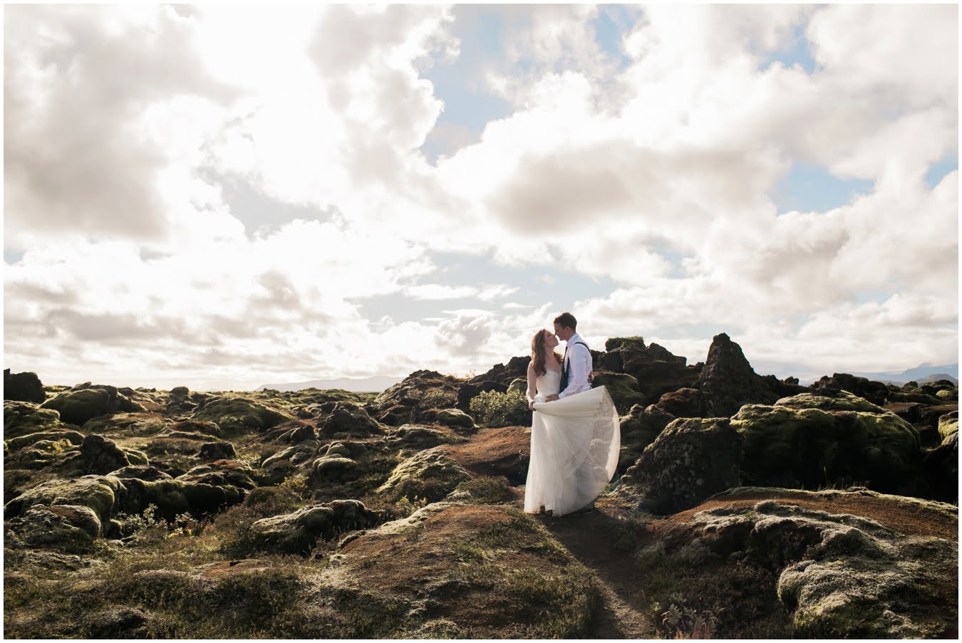 Meredith and Joe have made their life one big adventure. They’ve been together for nearly a decade and take every day as it comes. I had the pleasure of spending a wonderful week in Iceland with them, exploring the vast landscape of this wild, magic country. We spent two of those days, them in wedding clothes, me with my cameras in tow, climbing waterfalls, hiking up canyons, and watching the sun turn gold over vast lava fields as the day came to an end. These two know how to celebrate their anniversary, half portrait shoot, half Iceland elopement/vow renewal. From exchanging love letters at the base of a hidden waterfall to running across waving fields of lush green grass, to drinking champagne out of shot glasses in our warm tiny house, they made the celebration entirely their own and it was such an honor to be along for the ride.