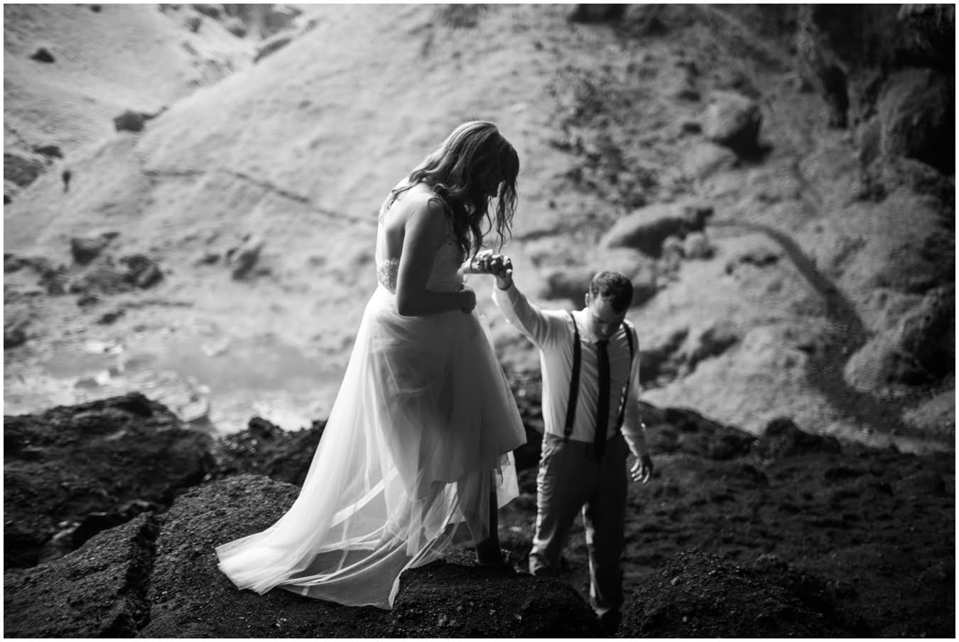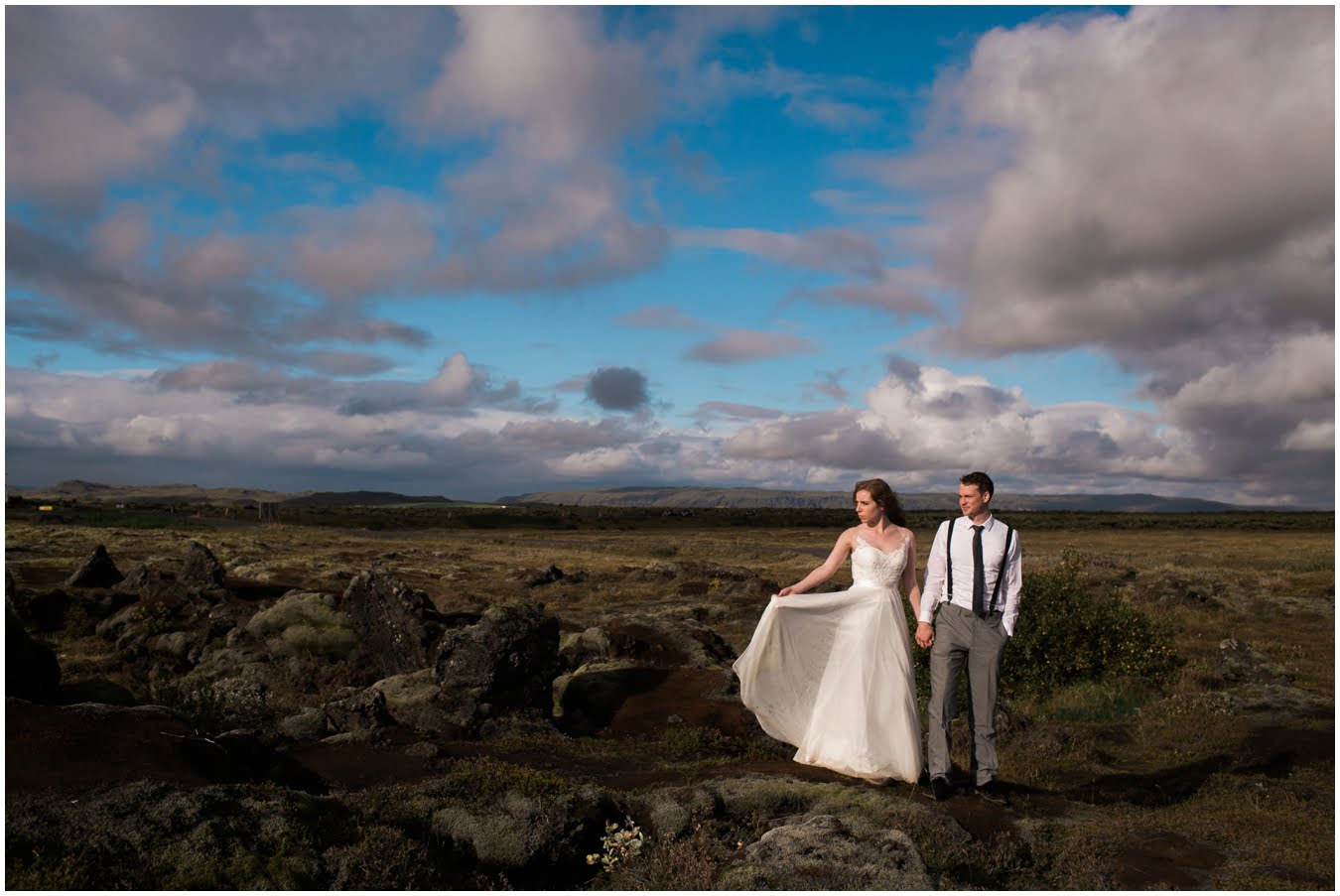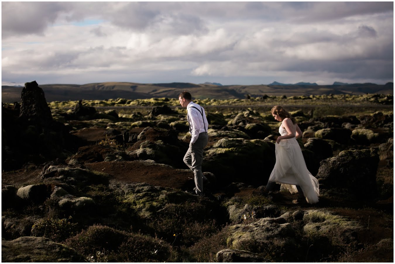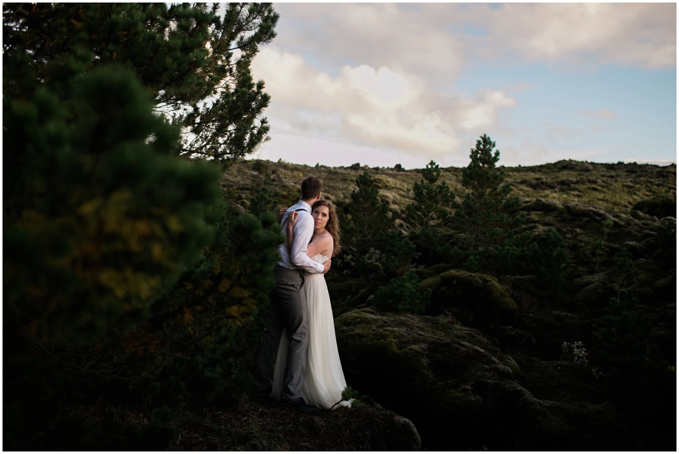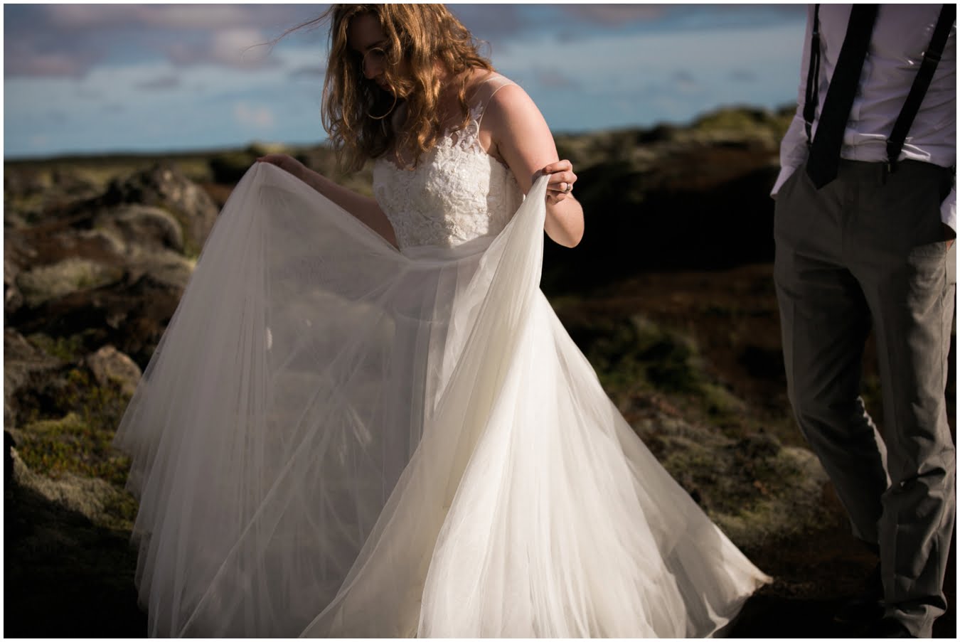 Meredith and Joe have made their life one big adventure. They’ve been together for nearly a decade and take every day as it comes. I had the pleasure of spending a wonderful week in Iceland with them, exploring the vast landscape of this wild, magic country. We spent two of those days, them in wedding clothes, me with my cameras in tow, climbing waterfalls, hiking up canyons, and watching the sun turn gold over vast lava fields as the day came to an end. These two know how to celebrate their anniversary, half portrait shoot, half Iceland elopement/vow renewal. From exchanging love letters at the base of a hidden waterfall to running across waving fields of lush green grass, to drinking champagne out of shot glasses in our warm tiny house, they made the celebration entirely their own and it was such an honor to be along for the ride.