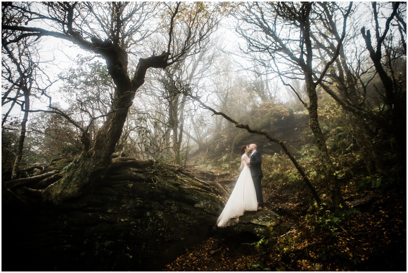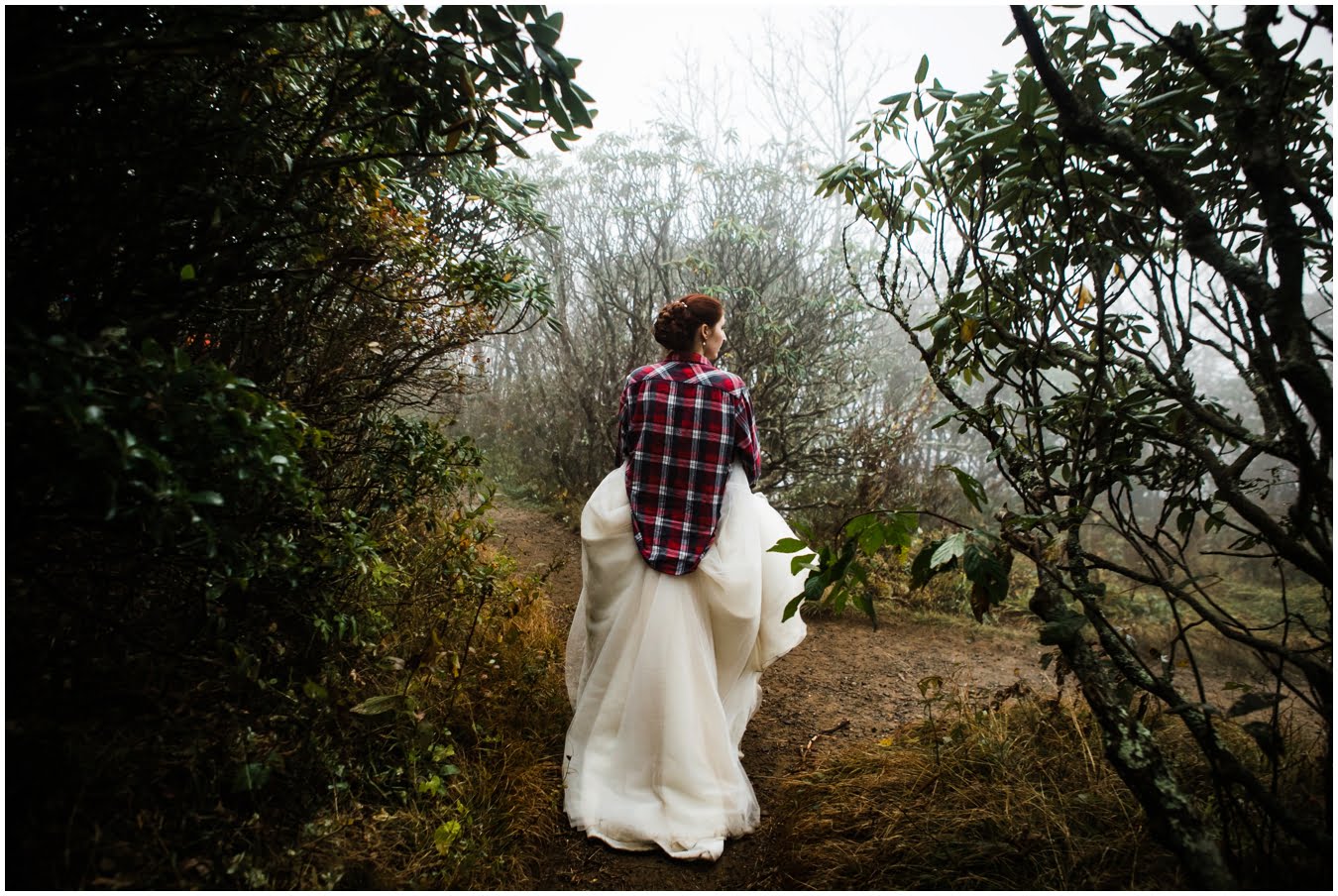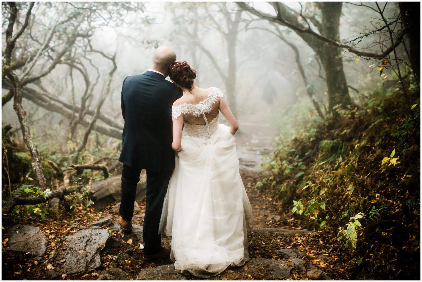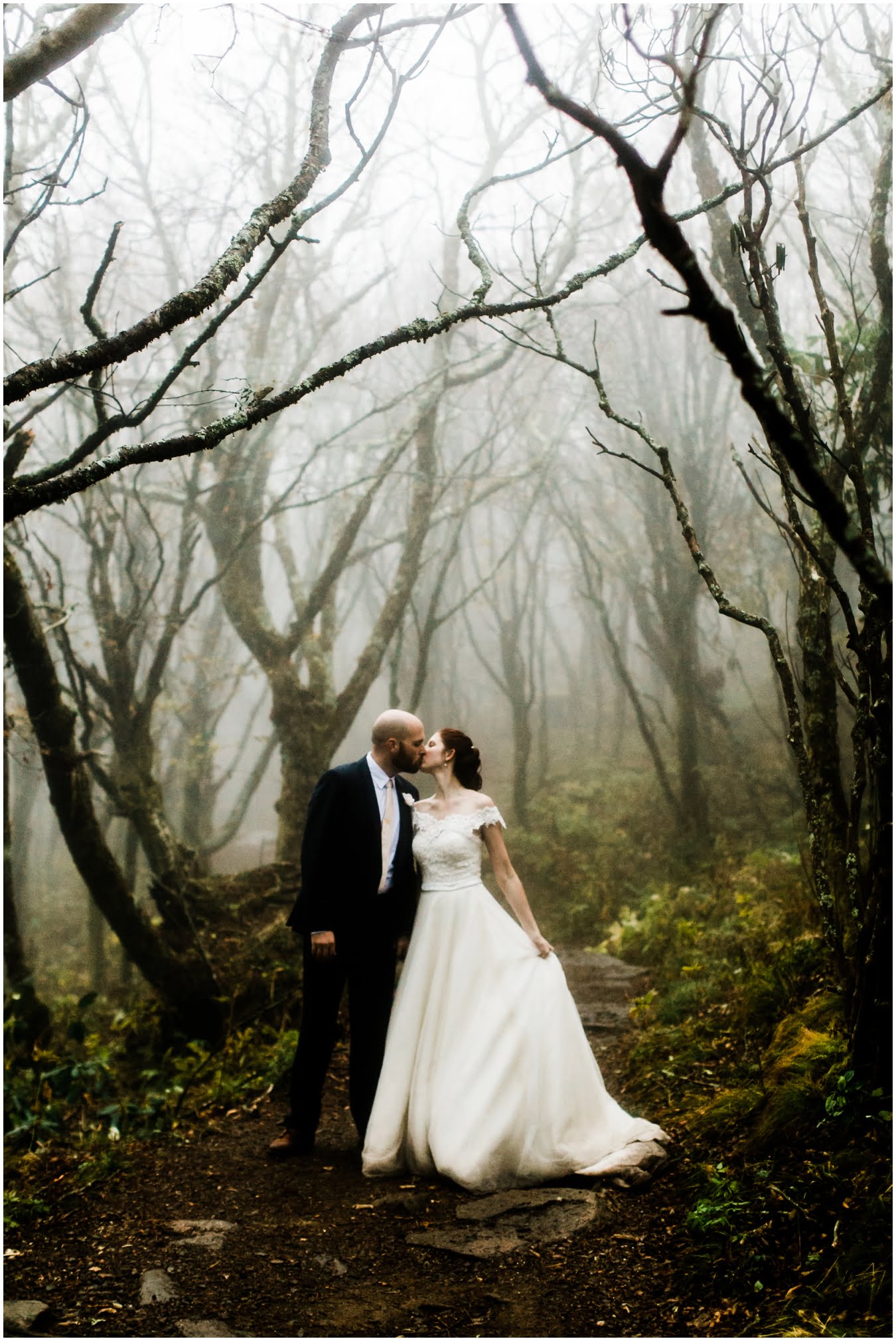 {As we were coming back down the mountain, I had Shane twirl Heather in a tunnel of rhododendrons. Her skirt flared out perfectly and the mist swirled around them and I gasped “This is SO Jane Austen”. Heather squealed happily but Shane paused, confused, and said “Isn’t that the chimpanzee lady?” We all had a good laugh declaring “OMG this is SO Jane Goodall” for the rest of the shoot whenever something great happened. I love love love working with clients I can laugh with!}