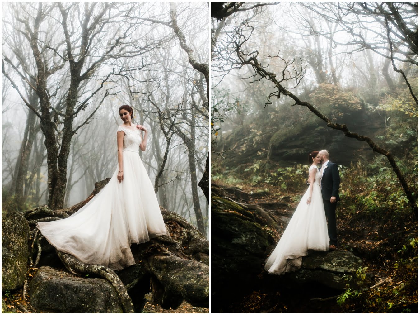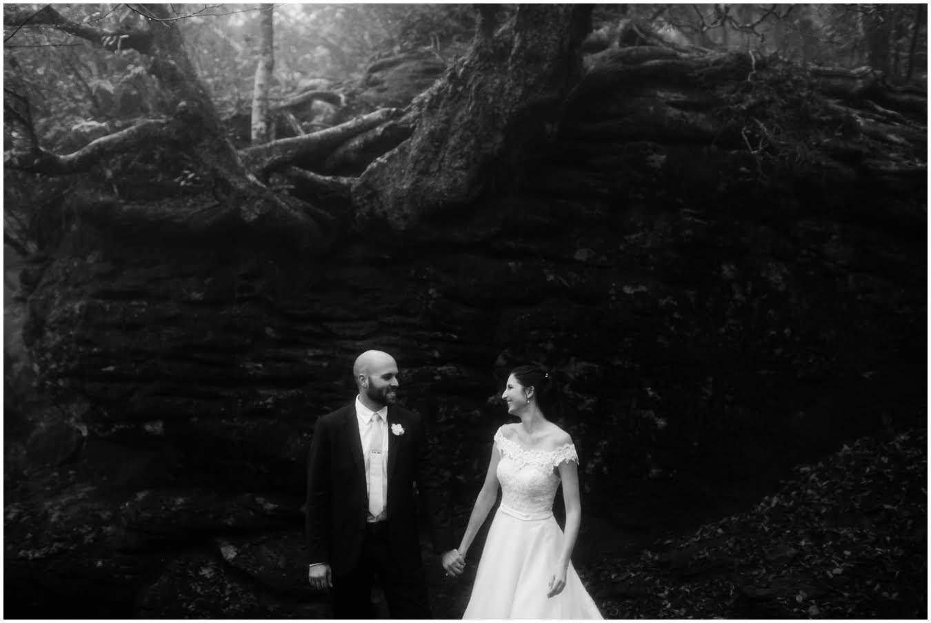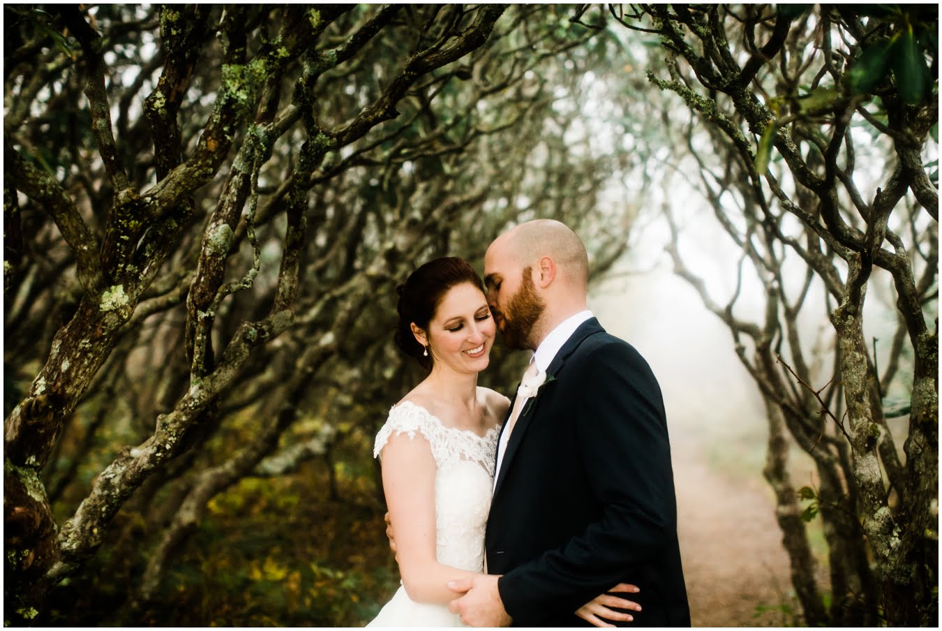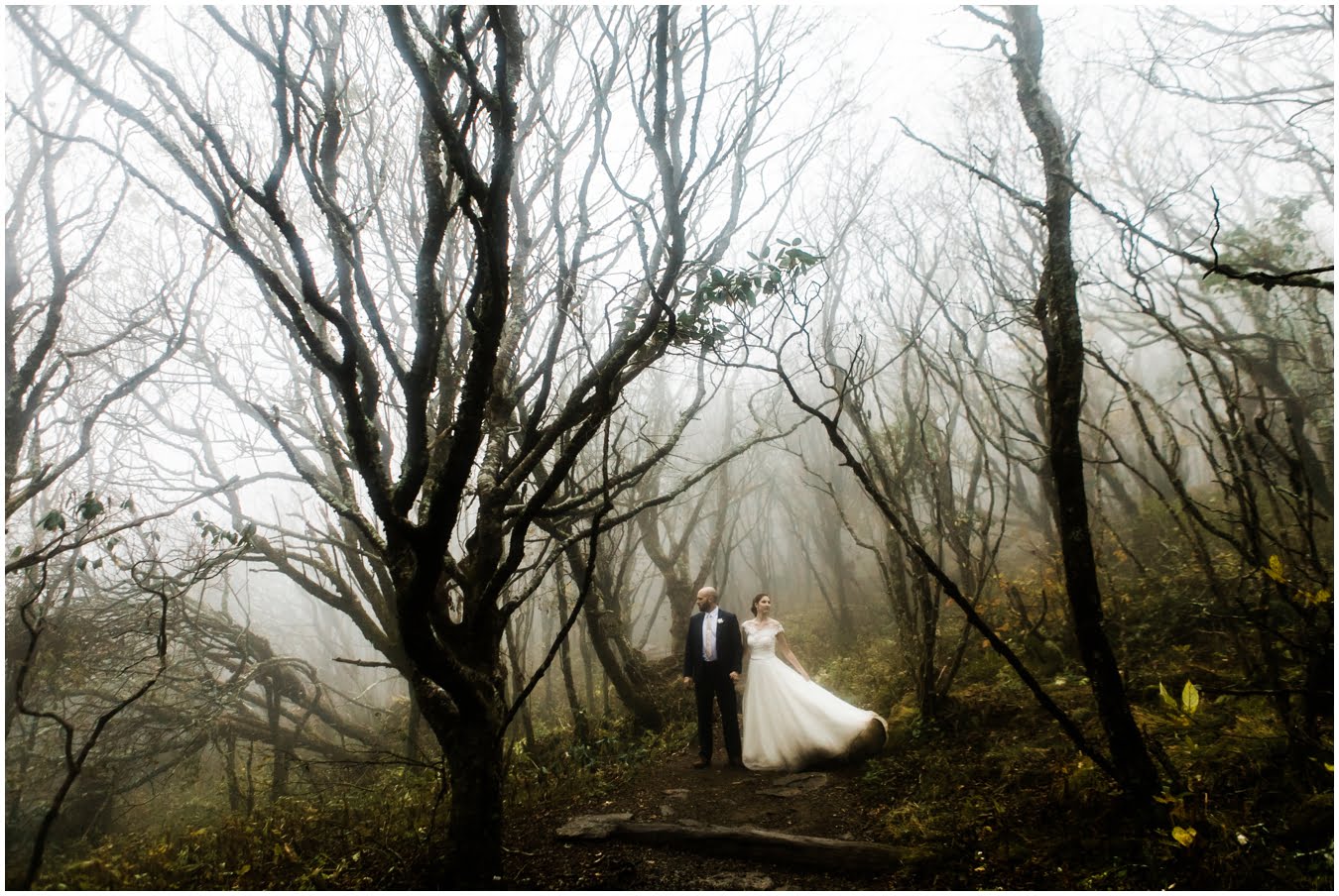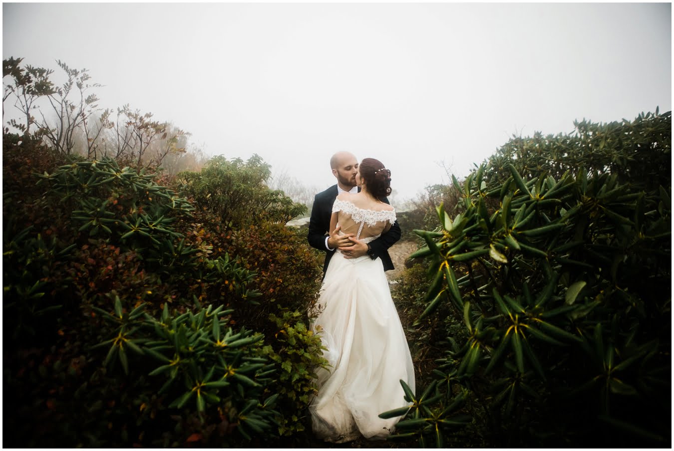 {As we were coming back down the mountain, I had Shane twirl Heather in a tunnel of rhododendrons. Her skirt flared out perfectly and the mist swirled around them and I gasped “This is SO Jane Austen”. Heather squealed happily but Shane paused, confused, and said “Isn’t that the chimpanzee lady?” We all had a good laugh declaring “OMG this is SO Jane Goodall” for the rest of the shoot whenever something great happened. I love love love working with clients I can laugh with!}