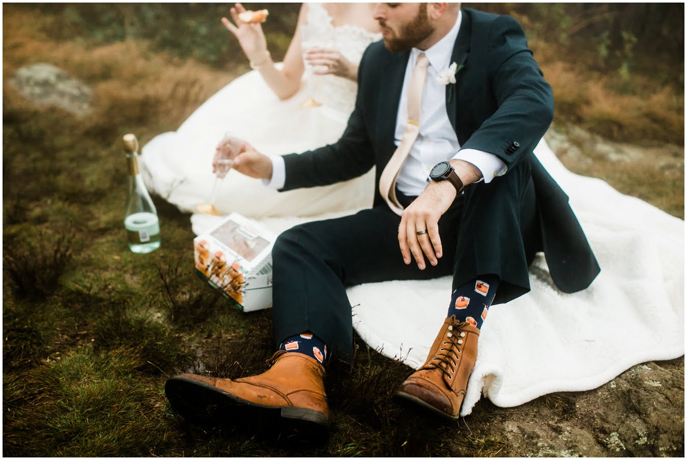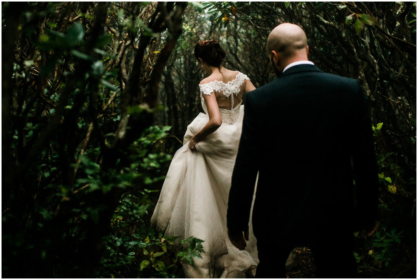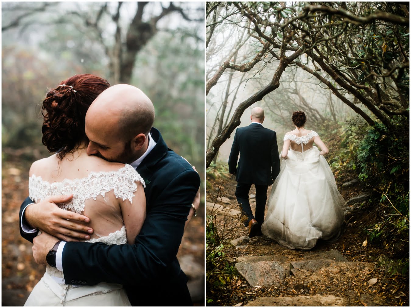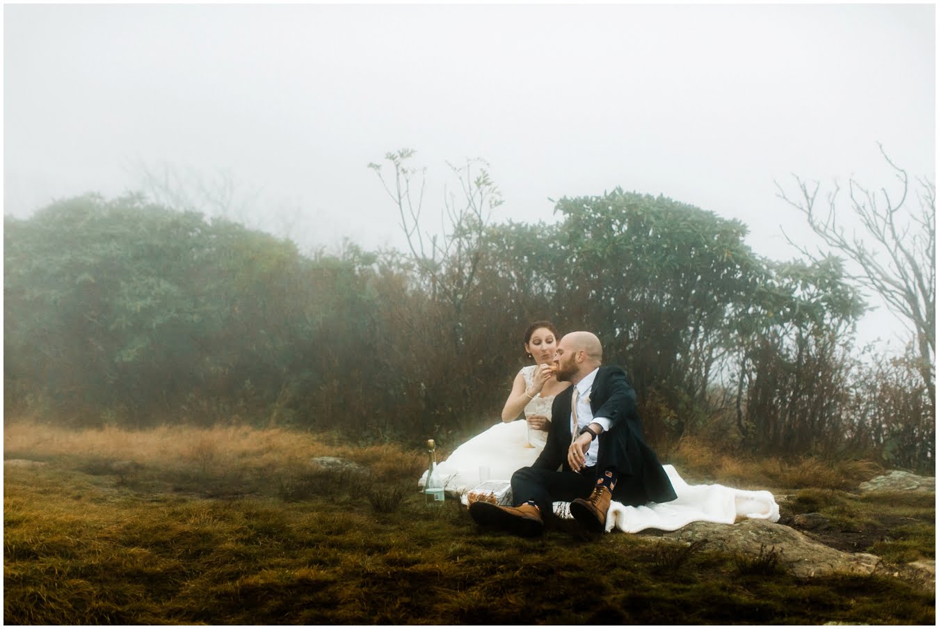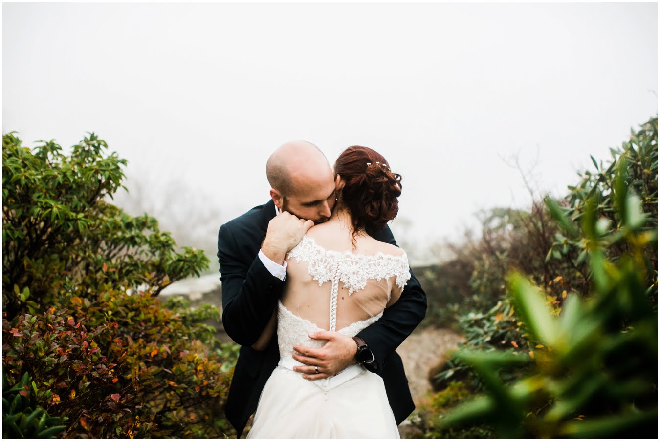 {As we were coming back down the mountain, I had Shane twirl Heather in a tunnel of rhododendrons. Her skirt flared out perfectly and the mist swirled around them and I gasped “This is SO Jane Austen”. Heather squealed happily but Shane paused, confused, and said “Isn’t that the chimpanzee lady?” We all had a good laugh declaring “OMG this is SO Jane Goodall” for the rest of the shoot whenever something great happened. I love love love working with clients I can laugh with!}