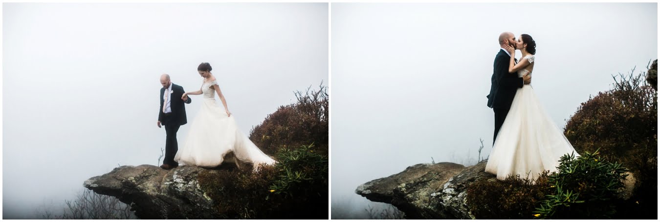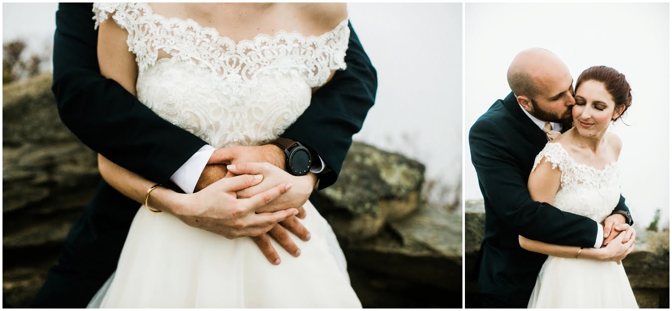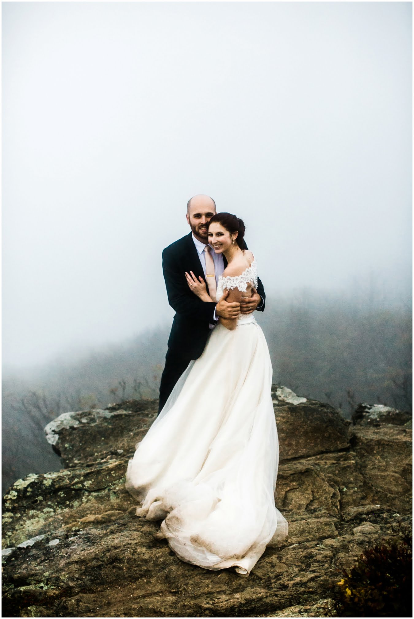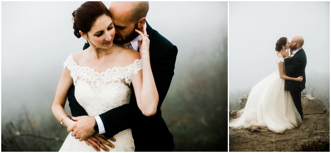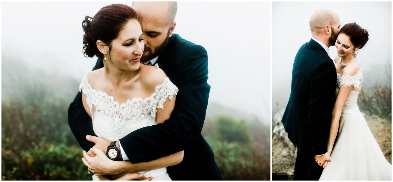Two days after Heather and Shane’s intimate Asheville wedding we met up at sunrise for some epic mountaintop wedding portraits. Most wedding days, even in the Asheville area, don’t allow enough time to get up into the mountains for mountaintop wedding portraits, so doing an after wedding session is a great way to integrate these gorgeous landscapes into your wedding photos, without driving an extra two hours on the wedding day itself! I also love getting to do after-wedding sessions with my couples, as all the stress of the day has melted away and left nothing but giddiness and joy! AND you don’t have to stress about getting your dress dirty for the big day 😉