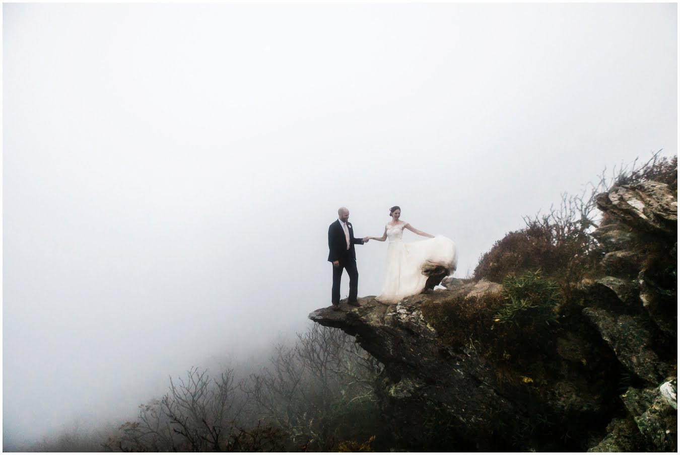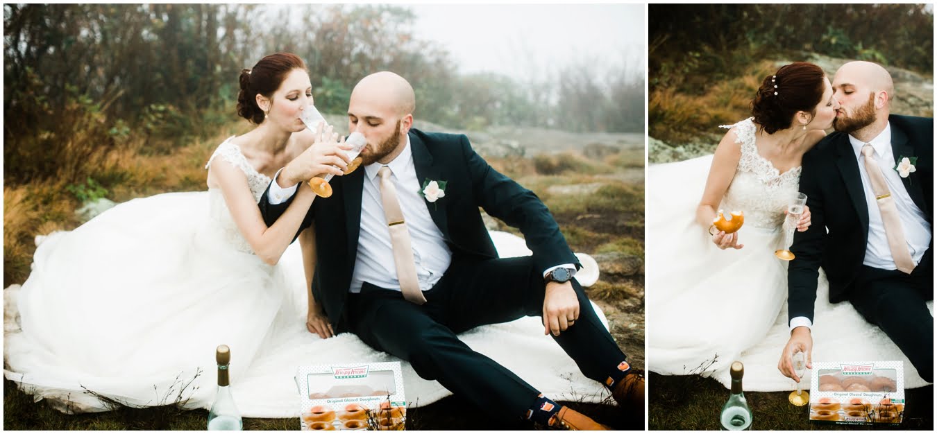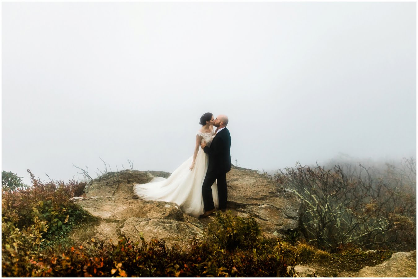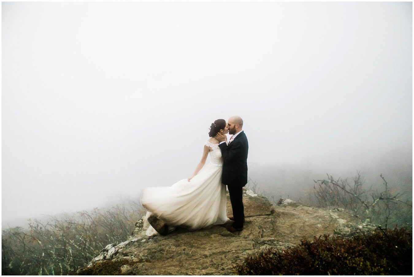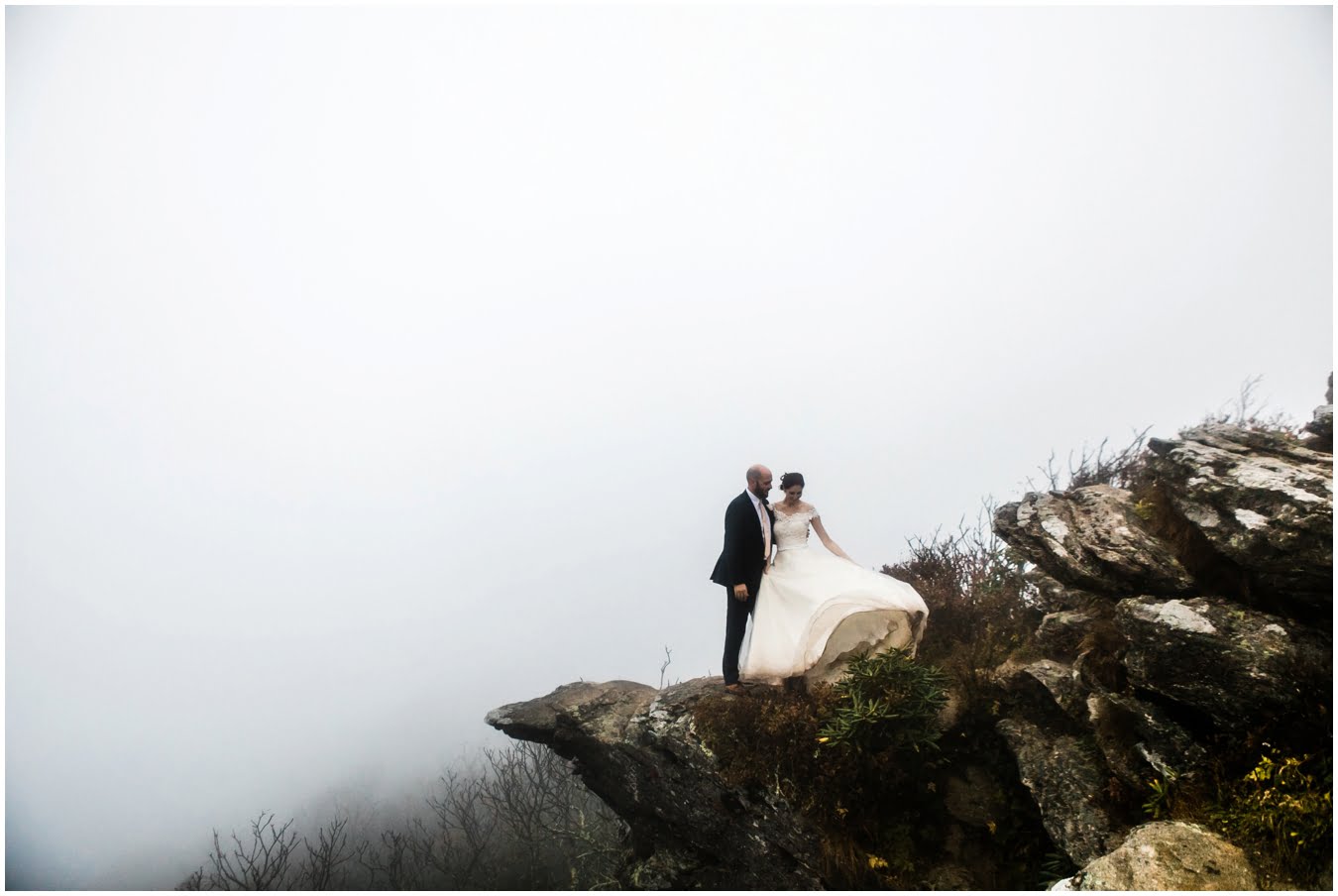 Two days after Heather and Shane’s intimate Asheville wedding we met up at sunrise for some epic mountaintop wedding portraits. Most wedding days, even in the Asheville area, don’t allow enough time to get up into the mountains for mountaintop wedding portraits, so doing an after wedding session is a great way to integrate these gorgeous landscapes into your wedding photos, without driving an extra two hours on the wedding day itself! I also love getting to do after-wedding sessions with my couples, as all the stress of the day has melted away and left nothing but giddiness and joy! AND you don’t have to stress about getting your dress dirty for the big day 😉