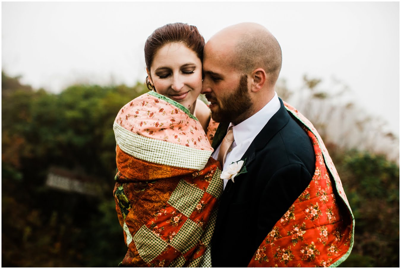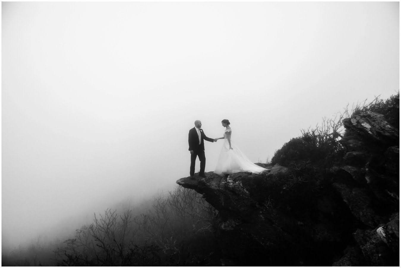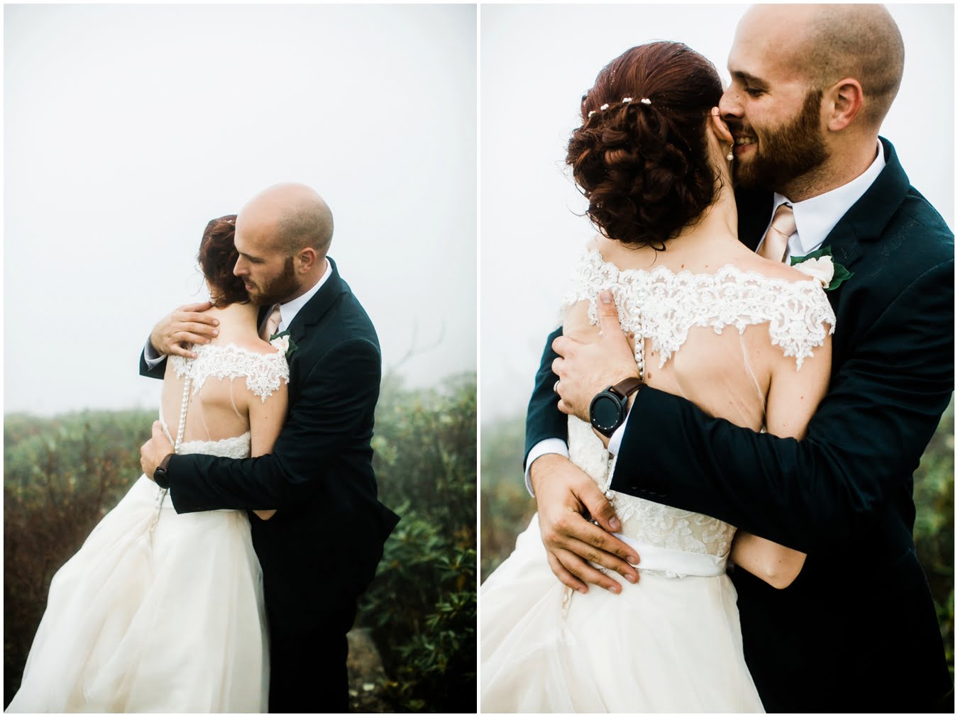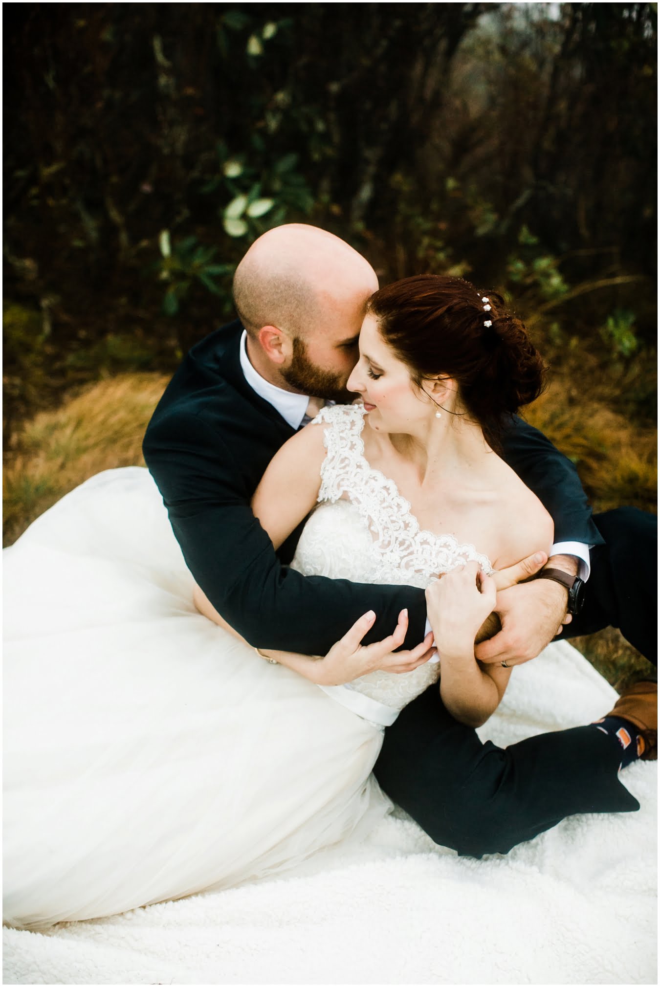 Two days after Heather and Shane’s intimate Asheville wedding we met up at sunrise for some epic mountaintop wedding portraits. Most wedding days, even in the Asheville area, don’t allow enough time to get up into the mountains for mountaintop wedding portraits, so doing an after wedding session is a great way to integrate these gorgeous landscapes into your wedding photos, without driving an extra two hours on the wedding day itself! I also love getting to do after-wedding sessions with my couples, as all the stress of the day has melted away and left nothing but giddiness and joy! AND you don’t have to stress about getting your dress dirty for the big day 😉