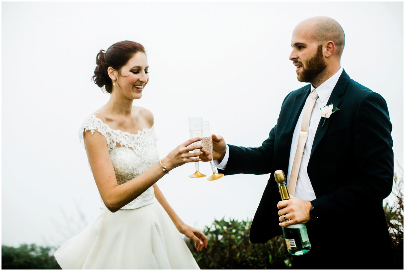 Heather and Shane brought champagne and doughnuts to enjoy as the sun rose, but sadly the sun never showed itself. At first we were disappointed, and Heather a little apprehensive that the fog would keep the images from turning out, but after a few minutes of shooting in the fog and the mist we were all hooked. It created such a quiet, dramatic atmosphere and it felt like we were the only people in the world.