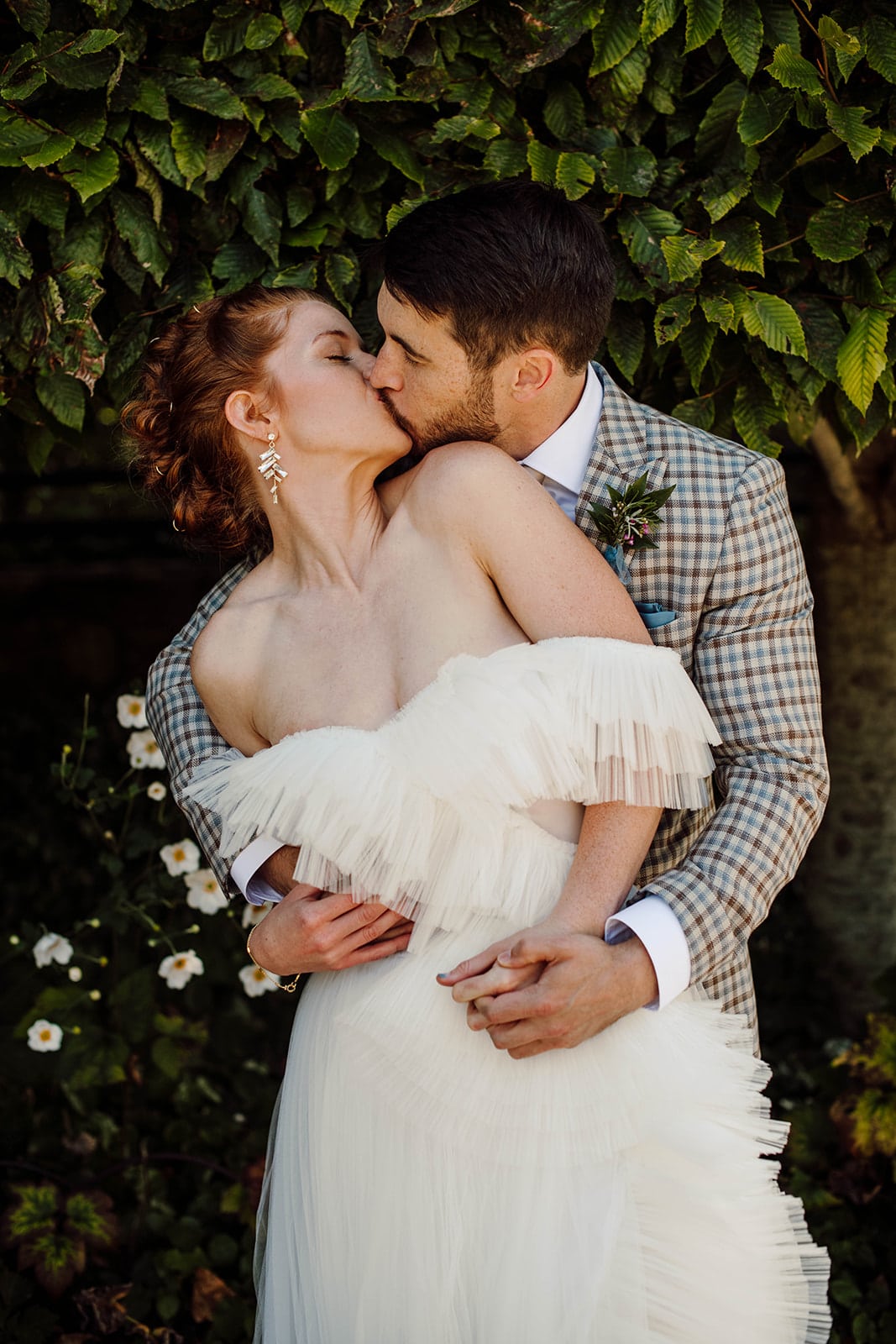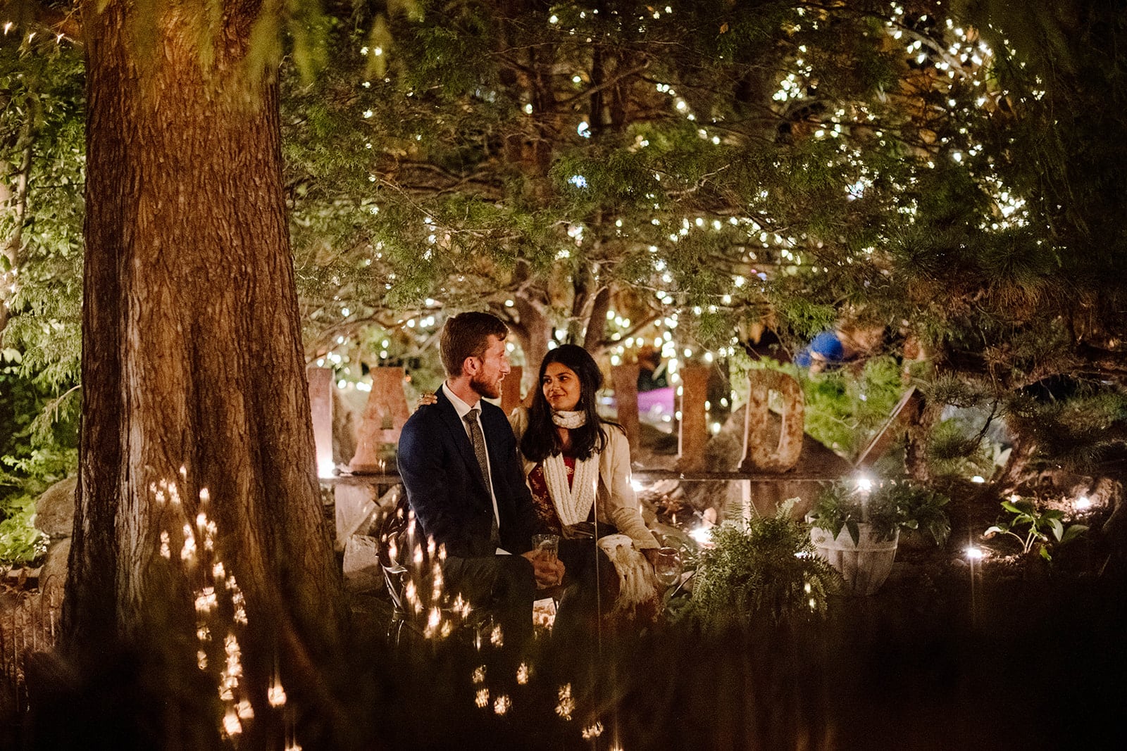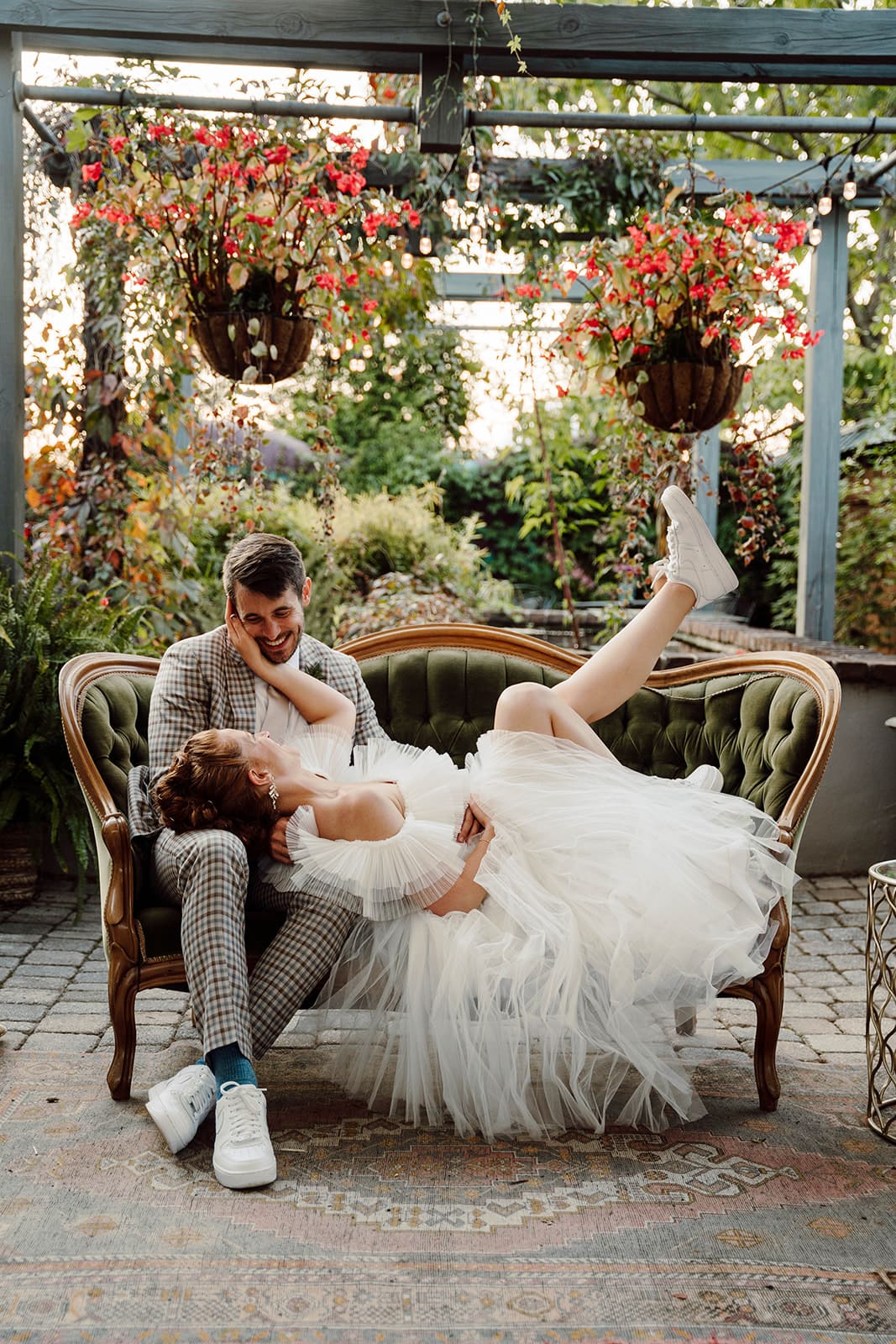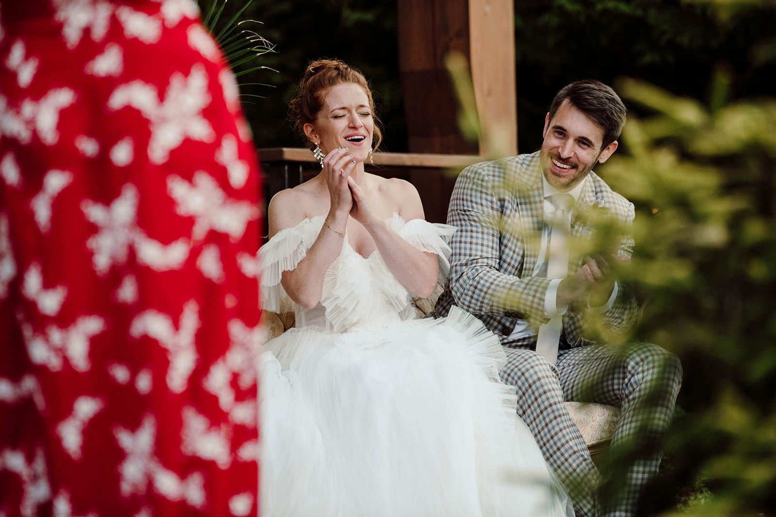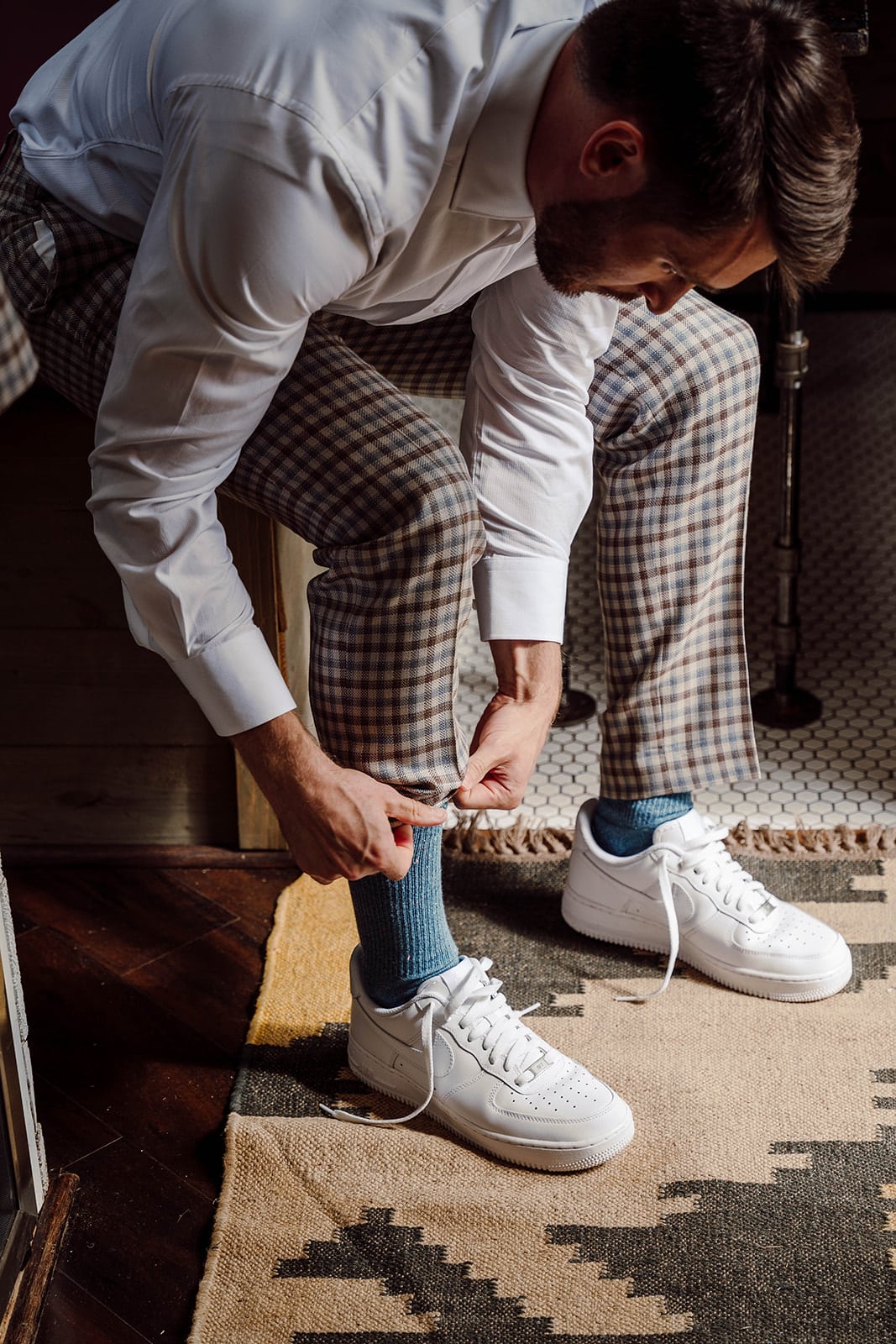 Fast forward to the afternoon at Haiku I Do. Julie slipped back into her mesmerizing wedding dress (designed just for her by Tarik Ediz) in the bridal suite, her excitement palpable. Meanwhile, Ryan donned his custom cream/blue/brown suit in the airstream, a special touch embroidered on the suit’s inside: their wedding date. And oh, the shoes! Julie and Ryan opted to eschew traditional wedding day footwear in favor of a fashion statement: matching White Air Force 1s.
