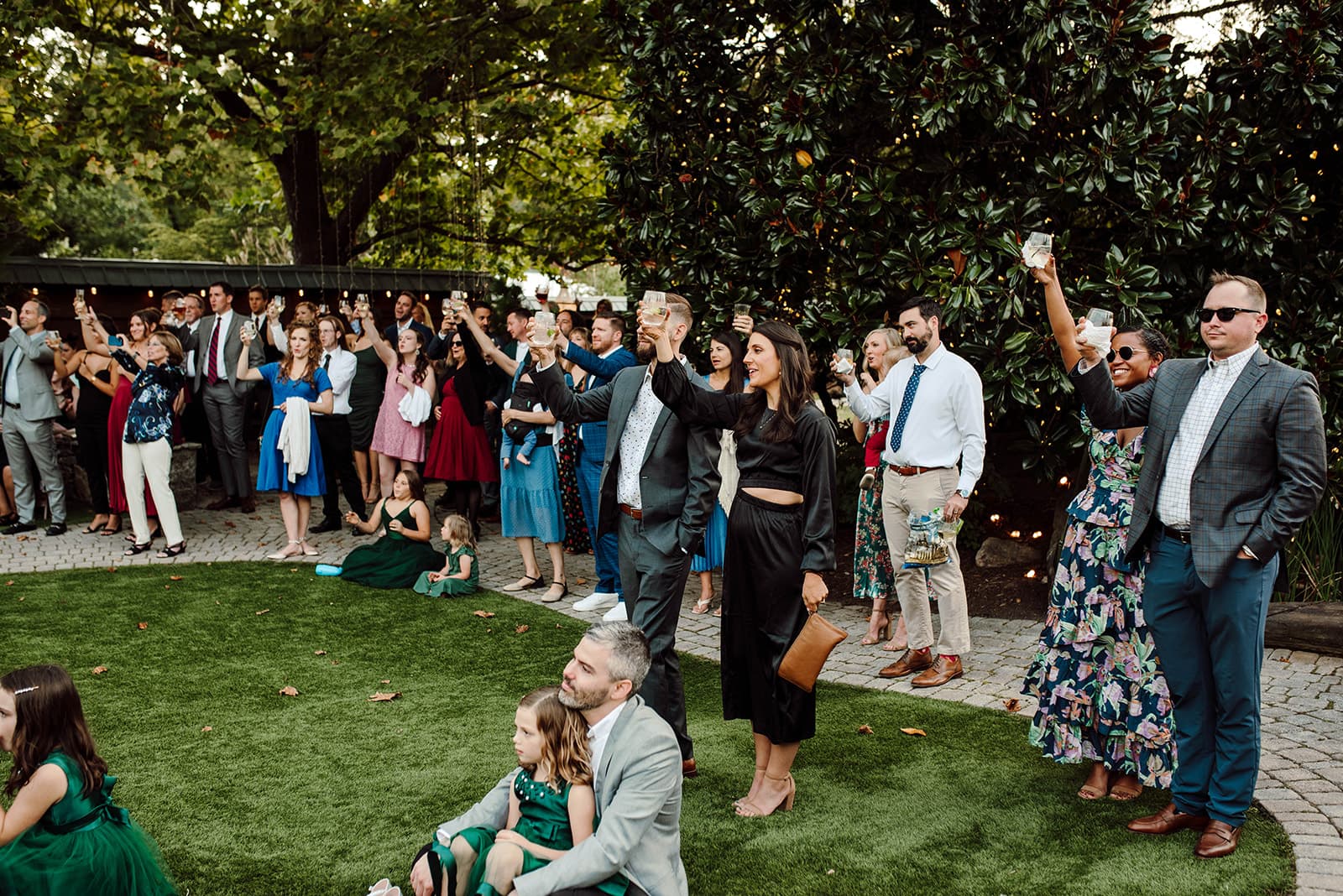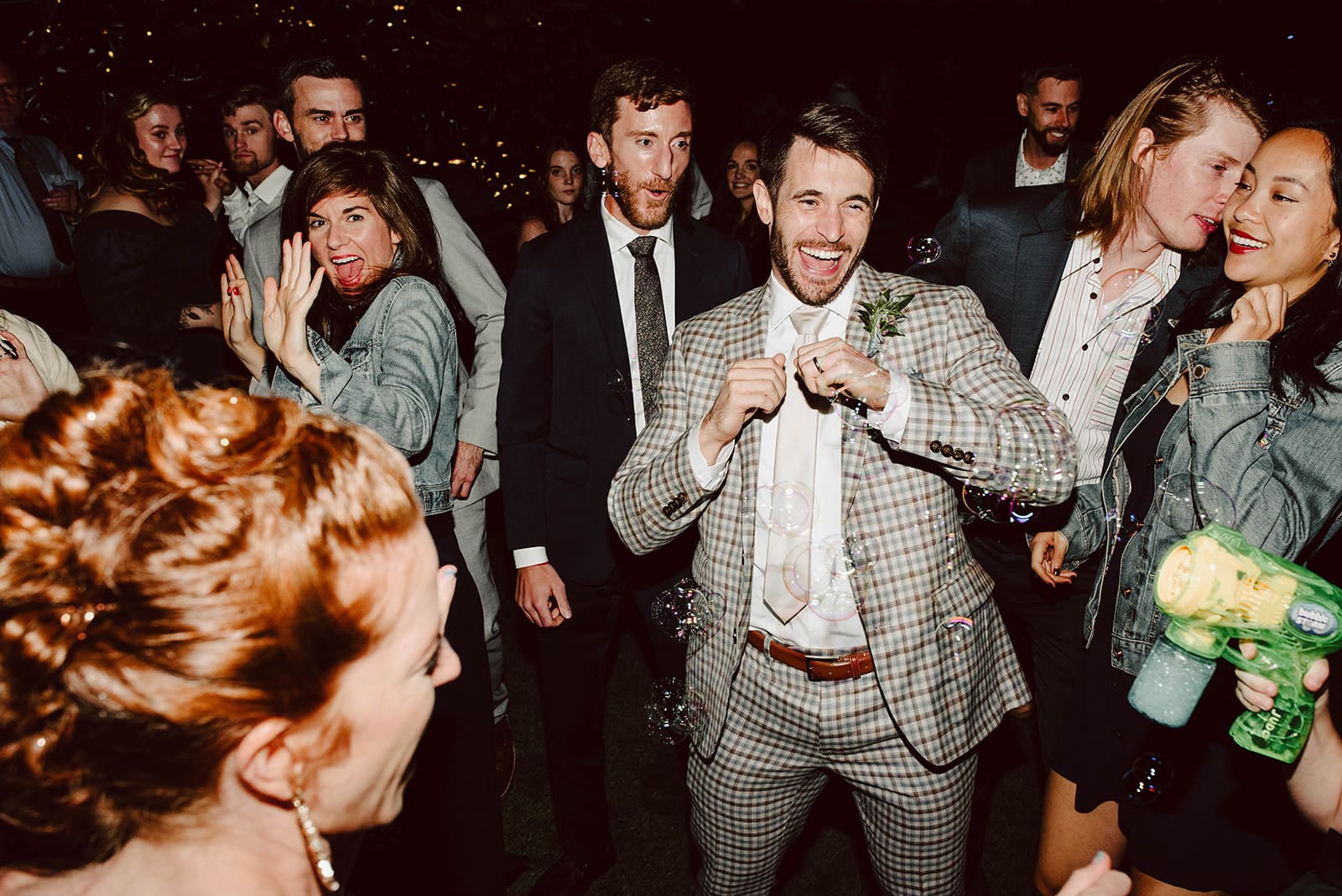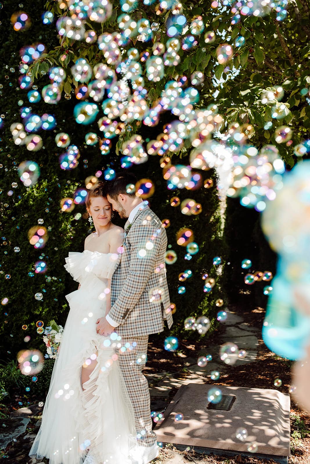 The clock struck 5:00 pm and the ceremony began. As the couple sealed their vows with a kiss, a whimsical touch filled the air – bubbles! Six guests, armed with bubble guns, created a dreamy atmosphere, enveloping the couple in a cascade of shimmering bubbles. Let me tell you, every wedding needs bubble guns.
