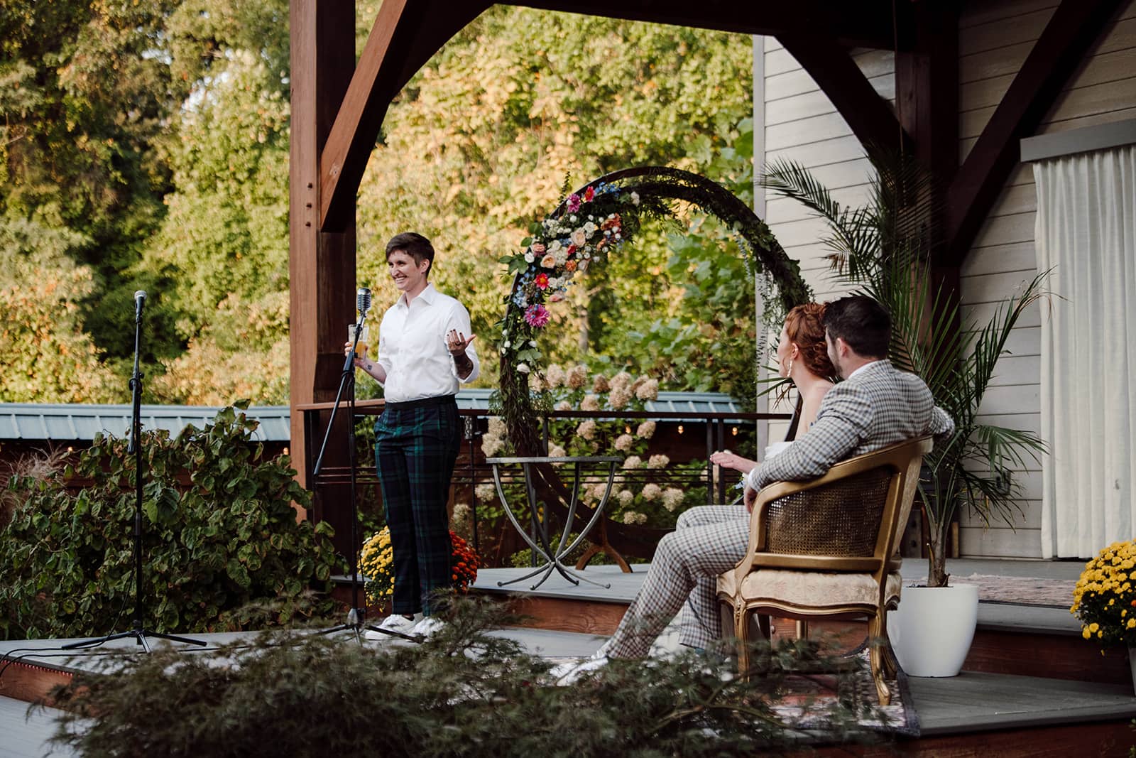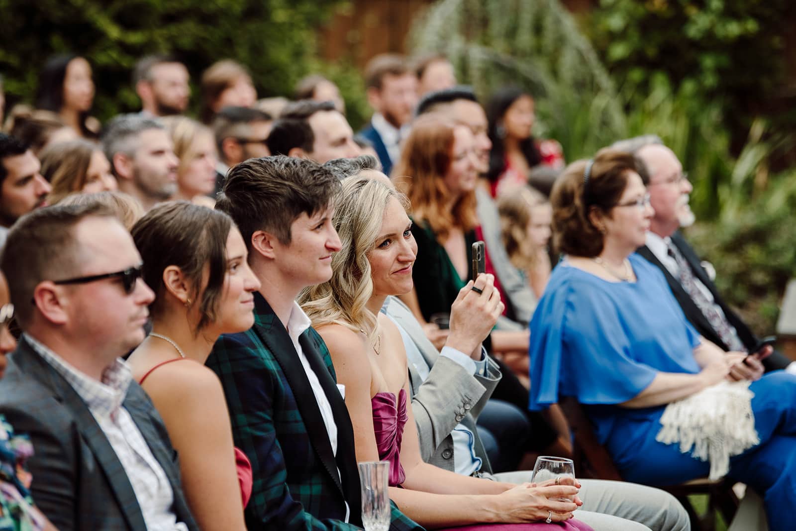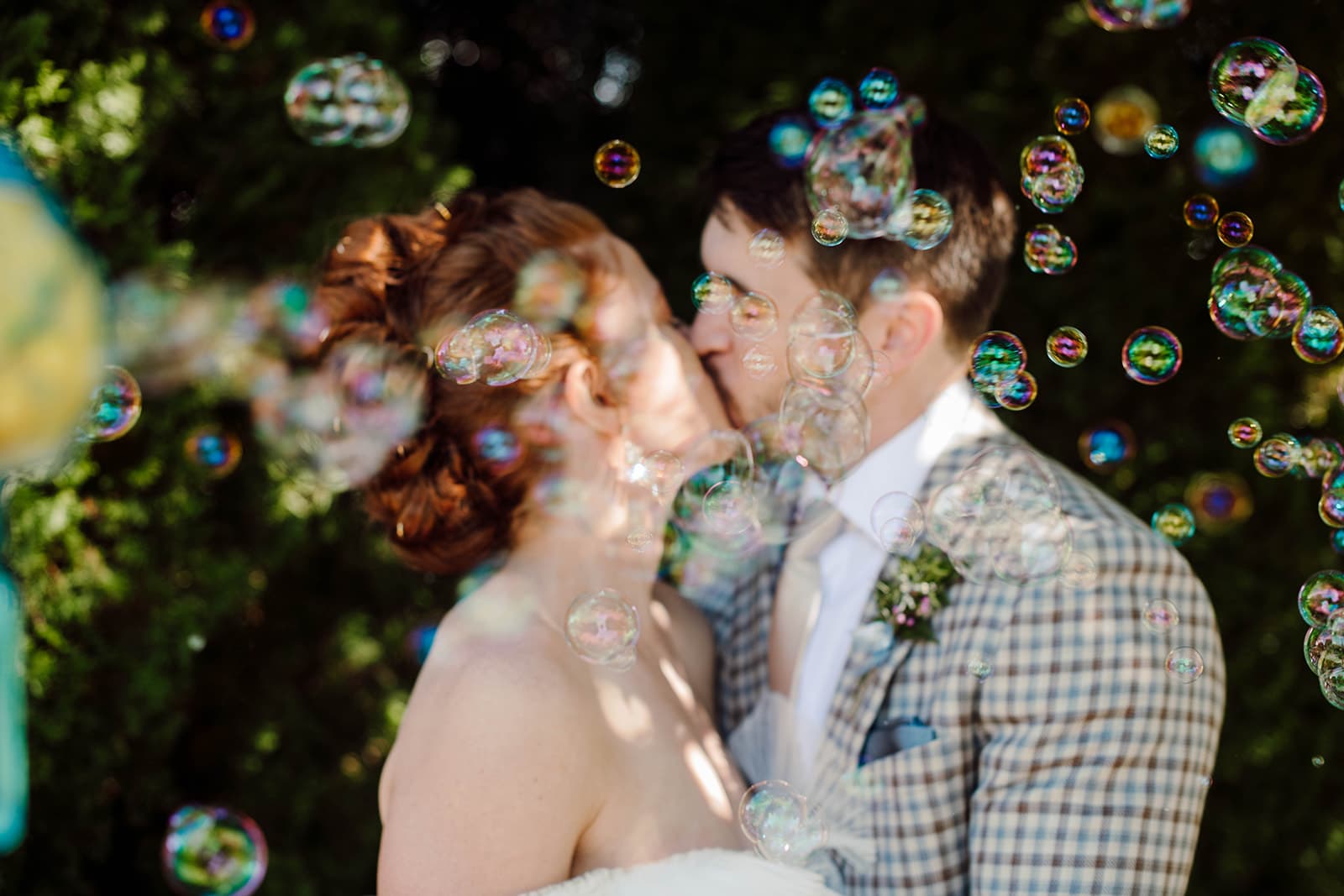 The clock struck 5:00 pm and the ceremony began. As the couple sealed their vows with a kiss, a whimsical touch filled the air – bubbles! Six guests, armed with bubble guns, created a dreamy atmosphere, enveloping the couple in a cascade of shimmering bubbles. Let me tell you, every wedding needs bubble guns.