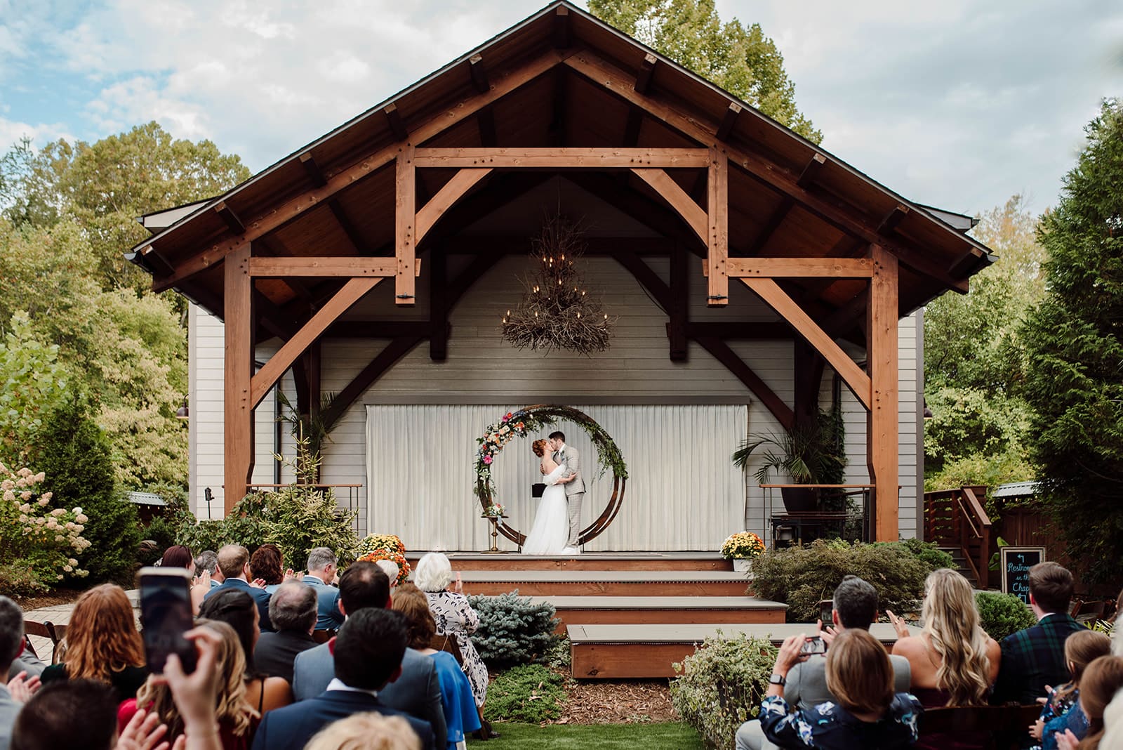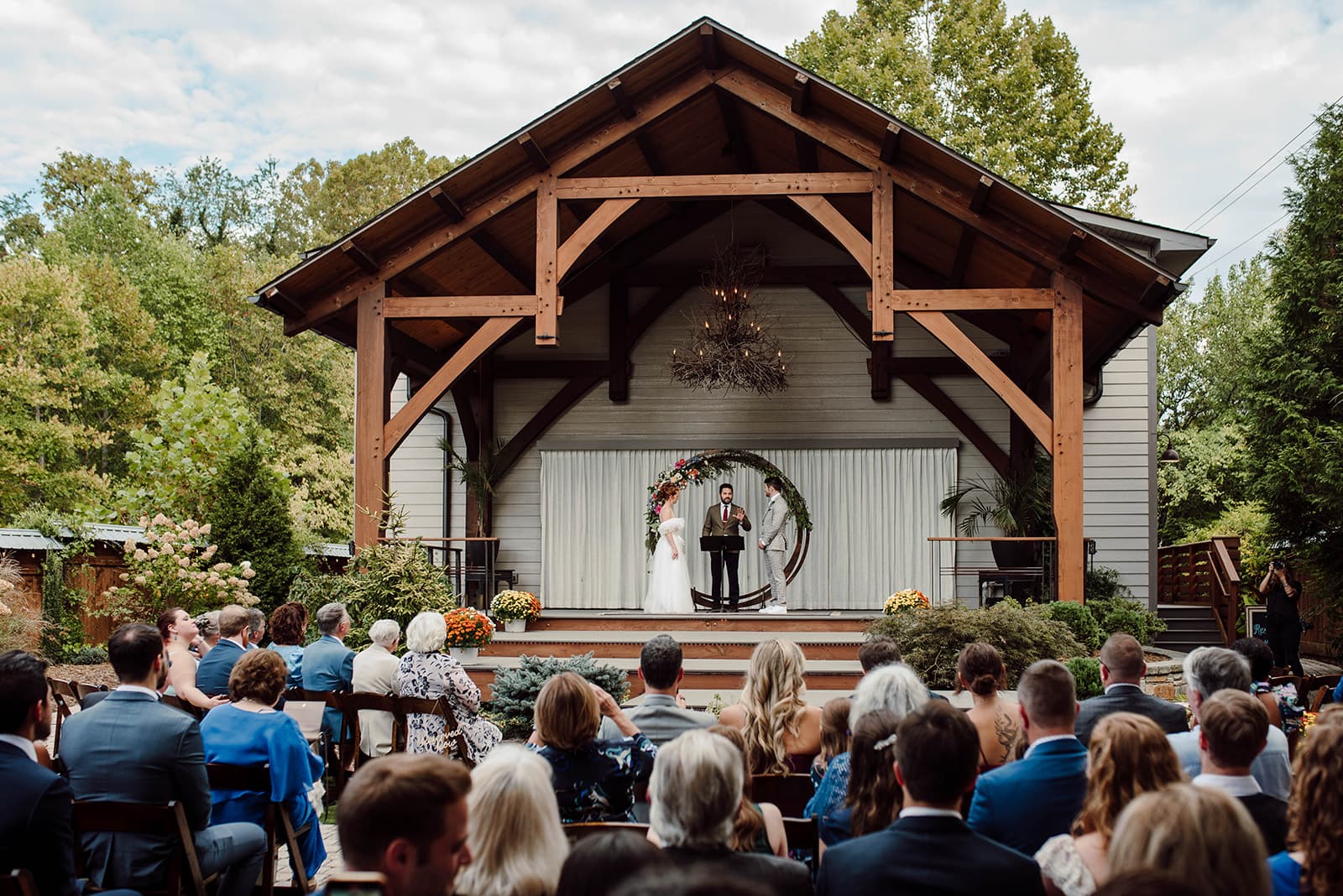 Just south of downtown Asheville lies Haiku, a gorgeous and somewhat-hidden venue that used to be a plant nursery. Because of it’s history, the venue is blessed with gorgeous landscaping including a towering magnolia tree that watches over every celebration. Julie and Ryan chose this magical location for the wedding celebration on a gorgeous September day. Their love story isn’t just a tale of two hearts intertwining; it’s an adventure written in every moment, every photo, and every joyous cheer of their guests. Let’s dive into the magic of their wedding day…