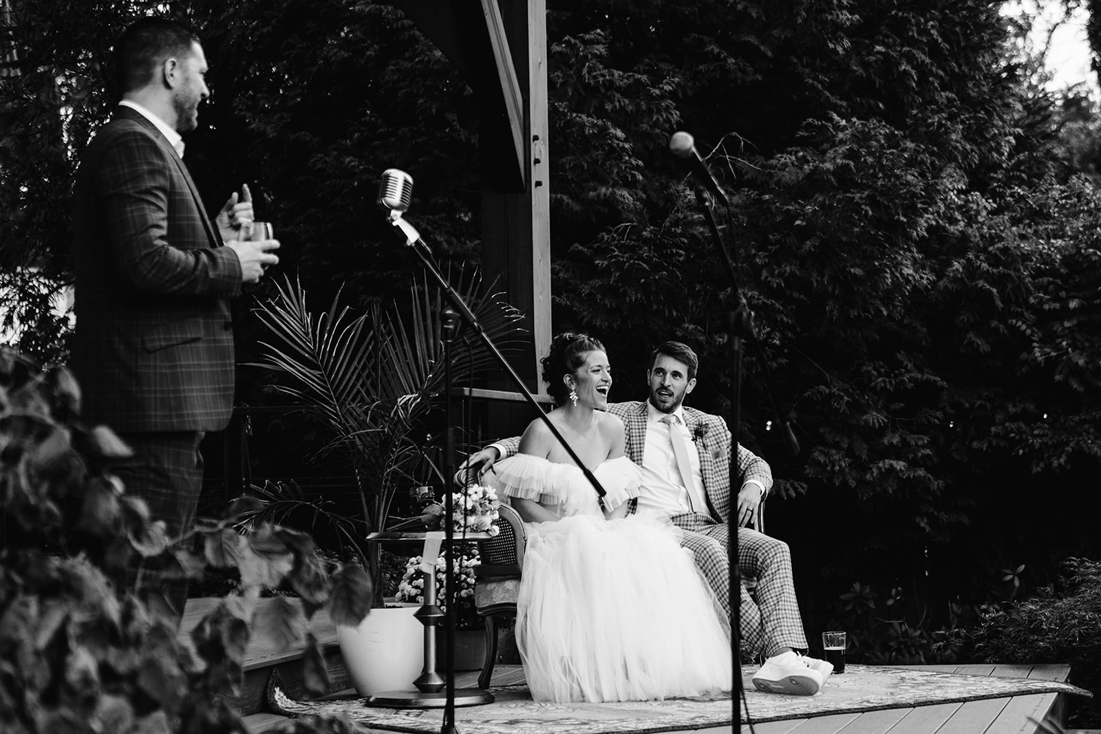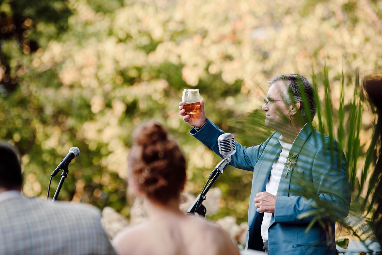 The evening continued with a series of heartfelt toasts from loved ones. Friends and family took turns sharing memories, stories, and well-wishes. And to top it off, four friends serenaded the couple with a song that tugged at every heartstring.