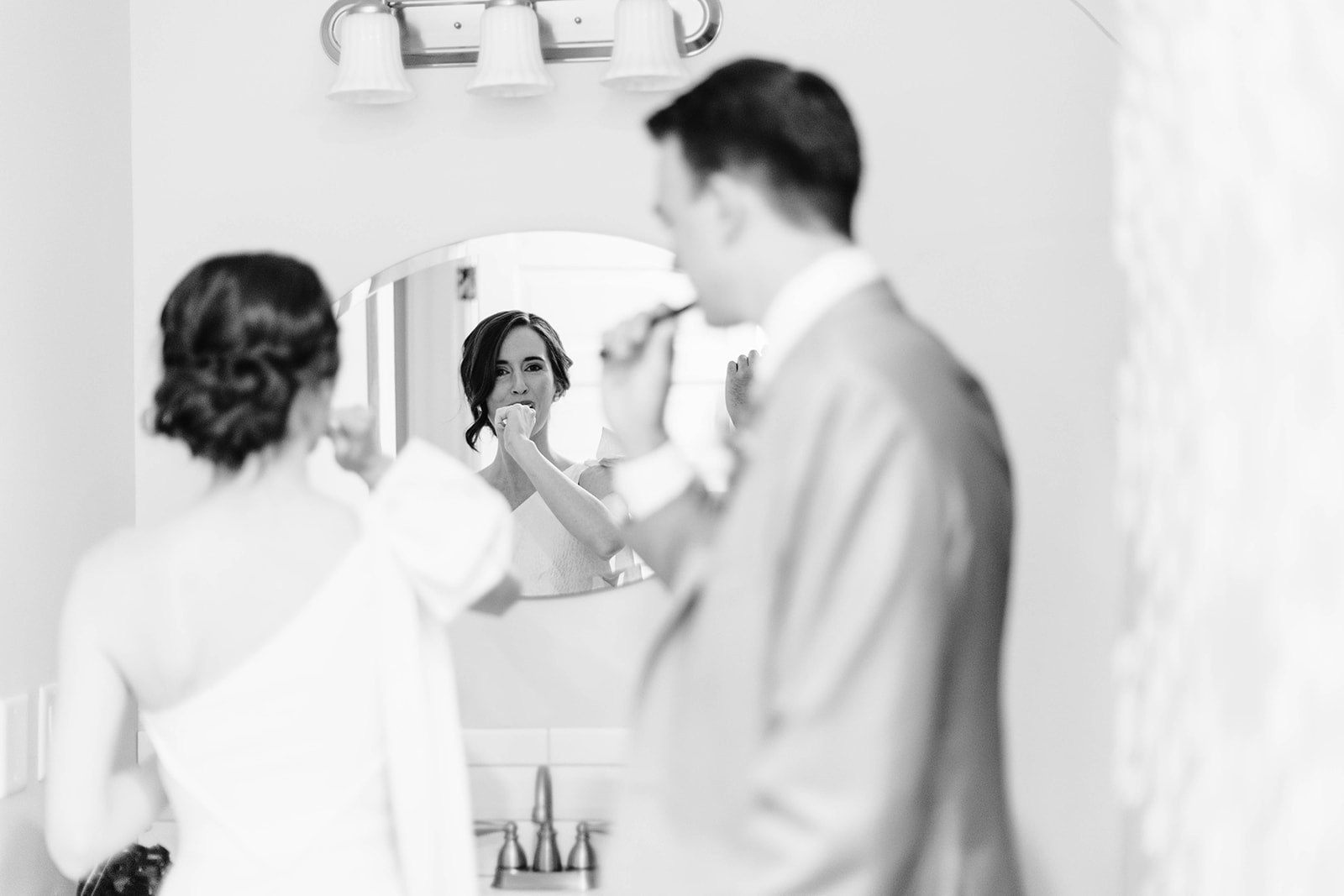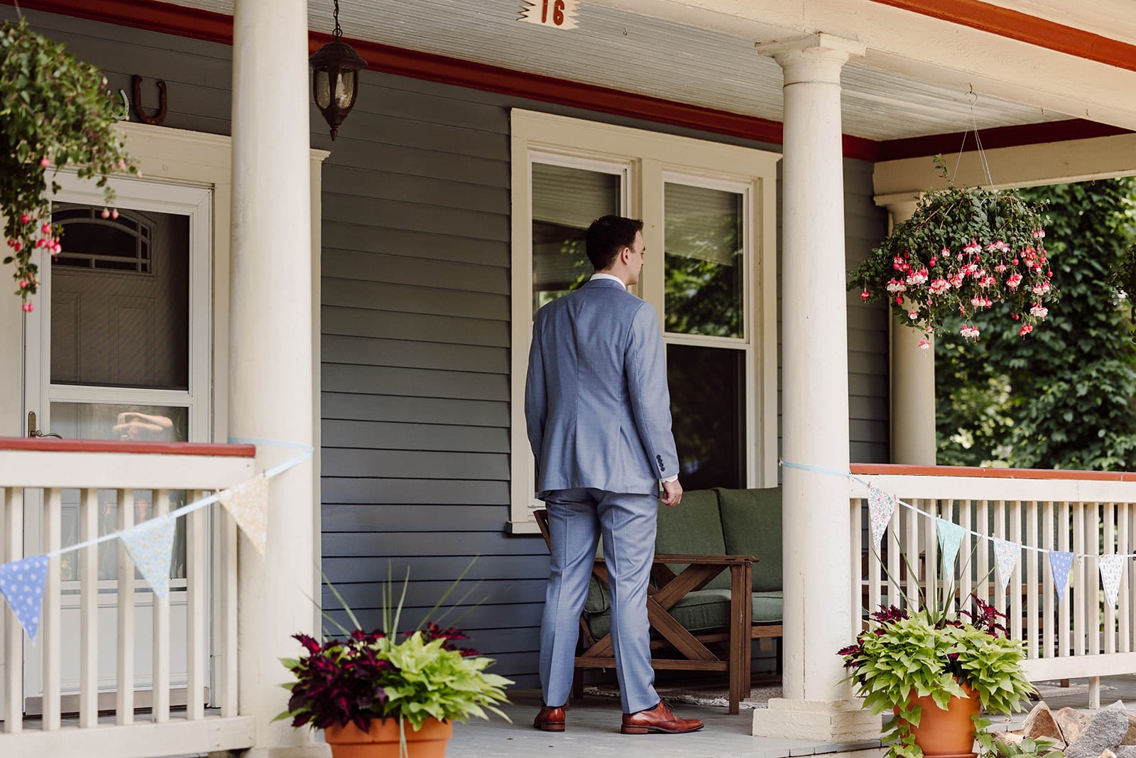 The first look on their own front porch was such a touching and personal experience. Their expressions as they saw each other, the love in their eyes, and the beautiful setting were truly special, and it was a joy to capture these authentic moments. It was so fun to imagine them relaxing on that porch for years to come, enjoying drinks and the warm evening air, and reminiscing on the moment when they saw each other in their wedding clothes for the first time. We love getting to integrate meaning into different parts of a couples’ wedding day, and this moment was a perfect example of that.
