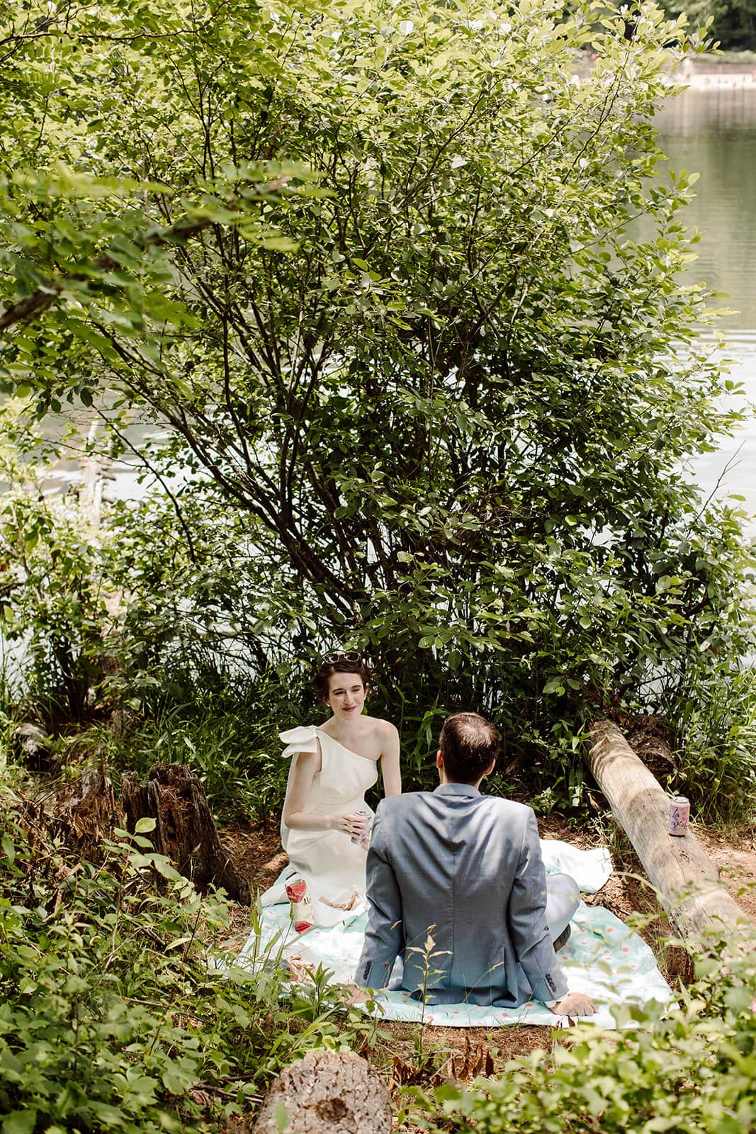 Following the first look, the couple had a chance to escape to Lake Powhatan while family and friends arranged flowers back at the house. There, they enjoyed a walk, a picnic, and personal time in a flexible and relaxed environment. These moments allowed us to cultivate a private atmosphere for personal portraits, ensuring some time for the couple to have to themselves on their day. First look experiences with Wilder Weddings Co are so much more than just a photo op; We work with our couples to create genuine experiences that allow you to slow down and truly feel the connection and joy of the day, as well as connect to the commitment you’re about to make to each other. We want every part of your day to be about your experience, not just about the photos.