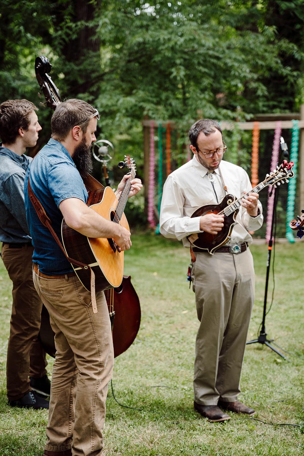 The backyard ceremony, officiated by Love & Wisdom, was an emotional highlight of the day, filled with heartfelt vows and surrounded by closest family and friends. The cocktail hour, family photos, and relaxed ambiance all contributed to the intimate and joyful spirit of their celebration. Katherine and Colin planted a tree together during their ceremony to symbolize their growing love and blossoming marriage. We love seeing unique unity ceremonies during our couples’ weddings! Carolina Florist provided beautiful florals, and after their ceremony they shared a champagne toast with their family and friends, as each guest shared thoughts and love through emotional toasts. Even their baby niece got in on the action, rounding the group and toasting with her applesauce pouch! Counterclockwise String Band filled the air with bluegrass tunes, perfectly accenting the casual romance of the day.