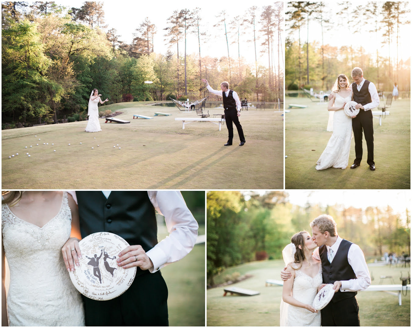 Things to look out for: I got to spend the first few minutes post-ceremony with Katie and Kent and their bridal party and families in the hallway outside the sanctuary, and I LOVE that. Those first moments of joy and laughter and hugs as each new group exits the church and runs to the bride and groom are priceless. Also, Kent is an avid Ultimate Frisbee player so their guest book was a custom frisbee, “virgin plastic” as Kent called it, never been thrown. After dinner as the sun was setting the two of them took it out and threw it around for the first time. Such an awesome, meaningful “first” for them! The Chapel Hill Carriage House is such a lovely venue, all the details were bright and perfect. But enough words…I’ll let the photos speak for themselves!