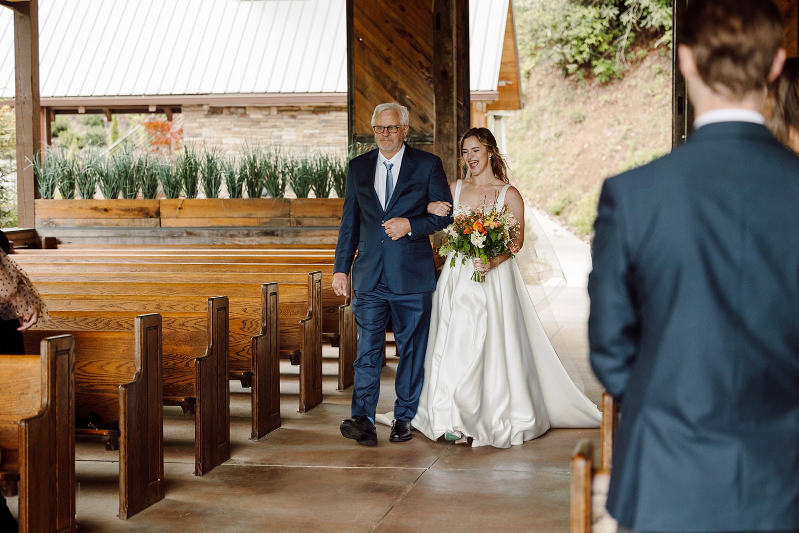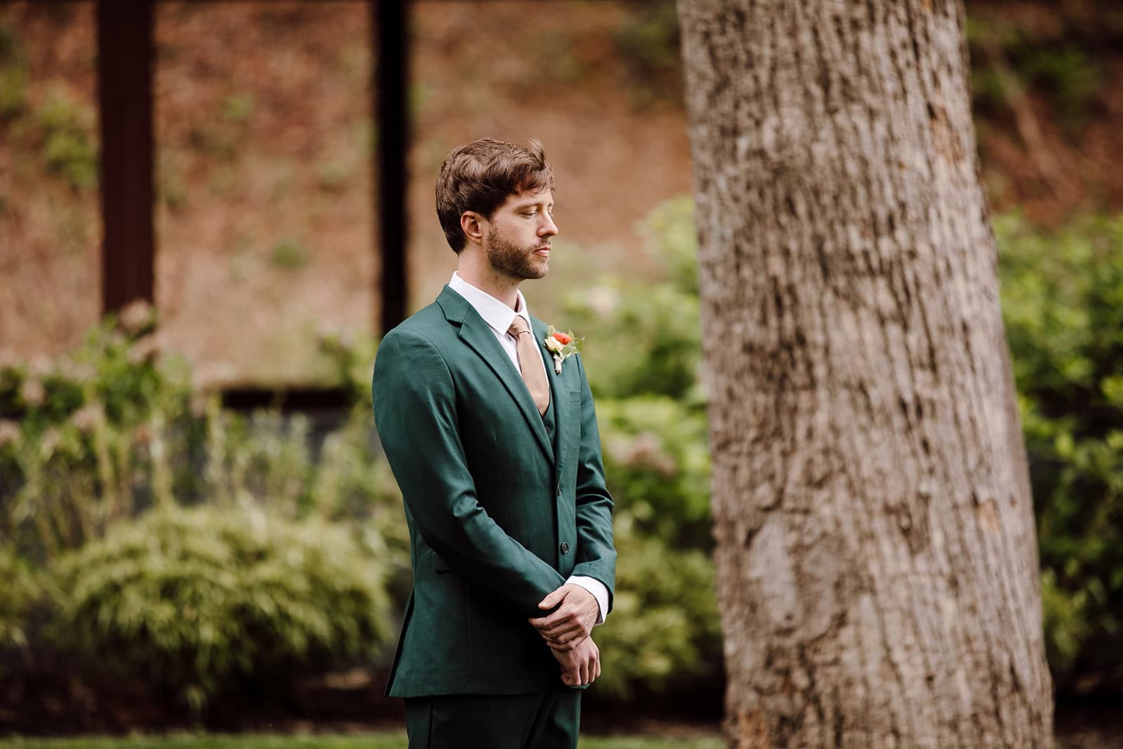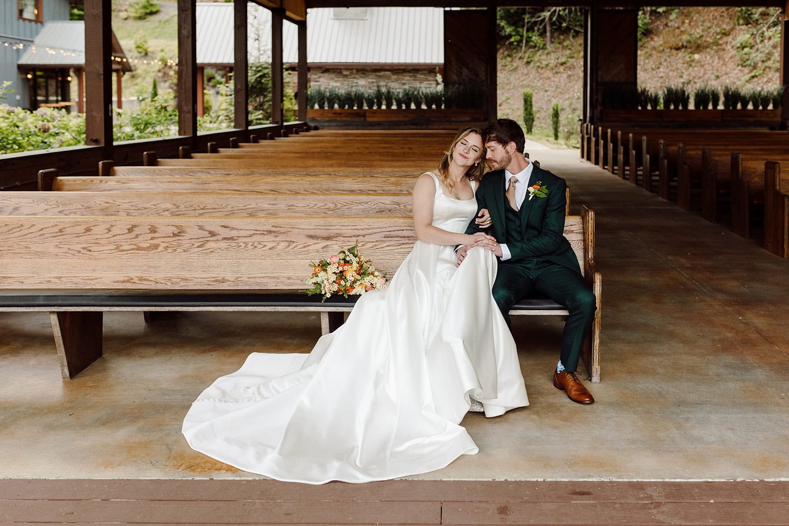 Tucked away on The Farm’s expansive grounds, Lauren and Samuel shared a quiet first look at the whimsical Chicken Chapel. With spring sunshine pouring through the trees, they exchanged private vows and gifts before the whirlwind of the day truly began. These slow, unscripted moments gave them space to soak it all in and connect deeply before their ceremony.