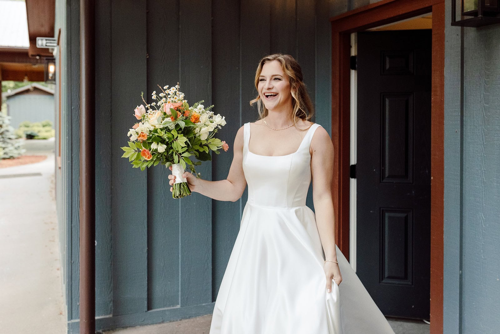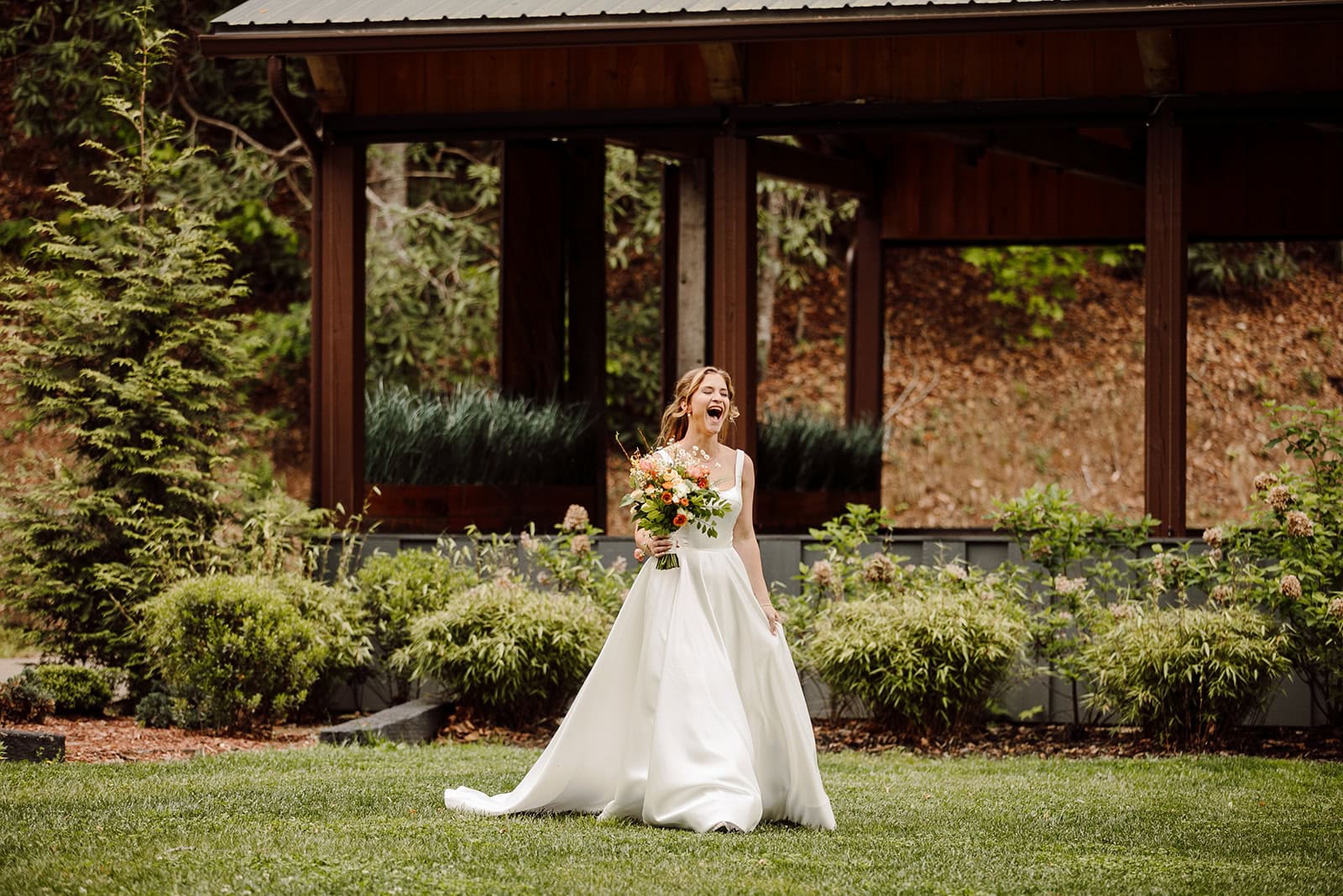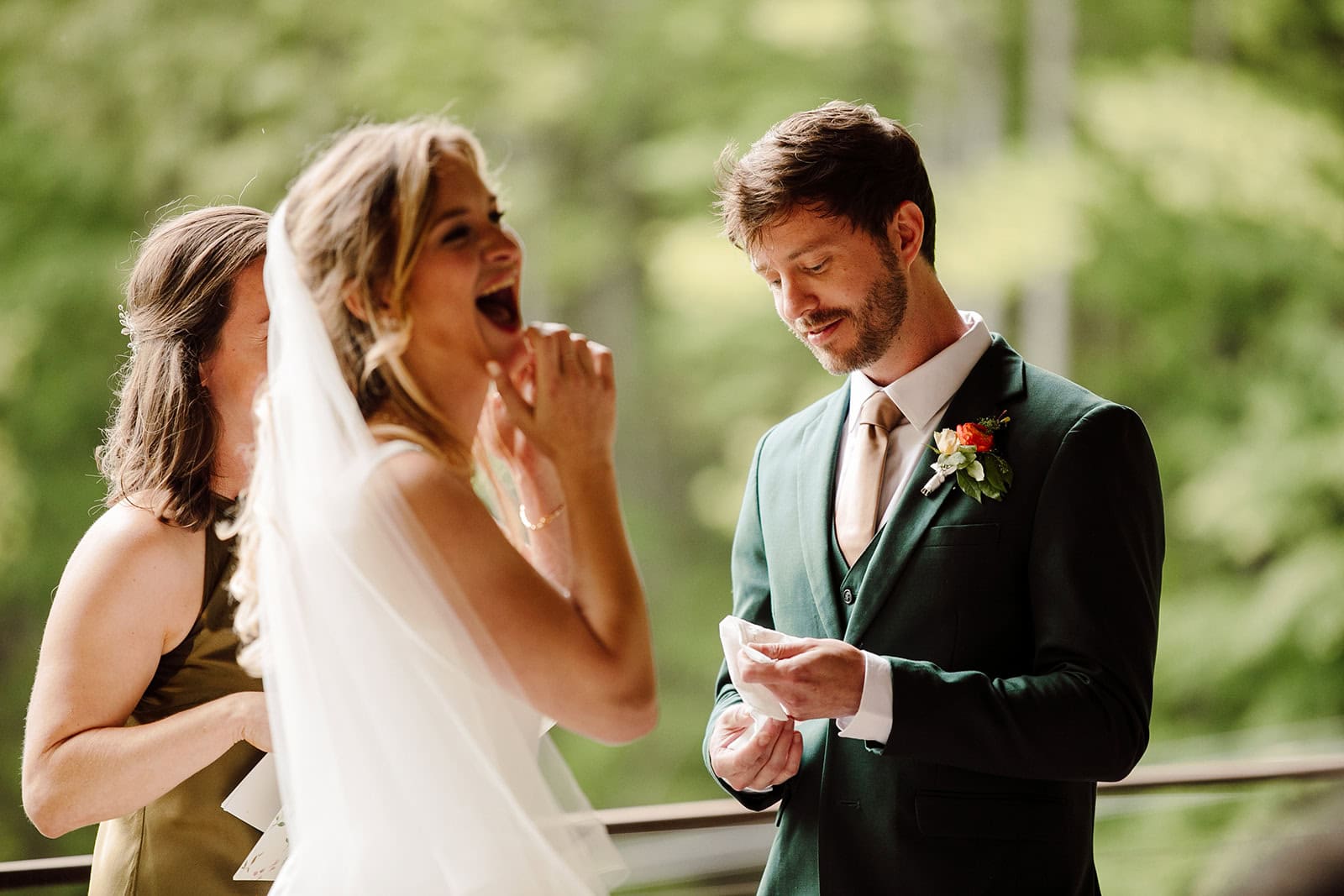 Tucked away on The Farm’s expansive grounds, Lauren and Samuel shared a quiet first look at the whimsical Chicken Chapel. With spring sunshine pouring through the trees, they exchanged private vows and gifts before the whirlwind of the day truly began. These slow, unscripted moments gave them space to soak it all in and connect deeply before their ceremony.