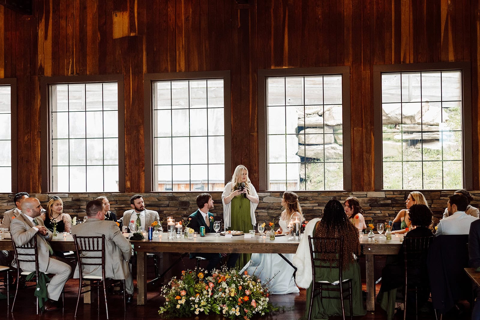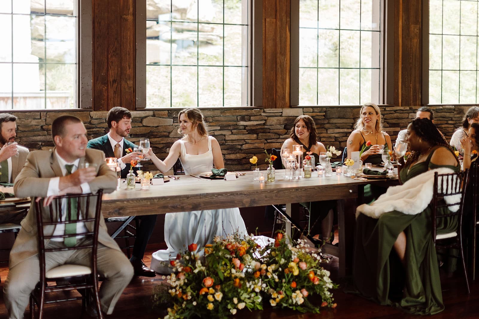 Guests were invited into the Event Center for a cozy family-style dinner, punctuated by heartfelt toasts from loved ones. Just as the sun dipped below the mountains, Lauren and Samuel took the floor for their first dance, followed by the kind of joyful, high-energy dance party that every couple dreams of.
