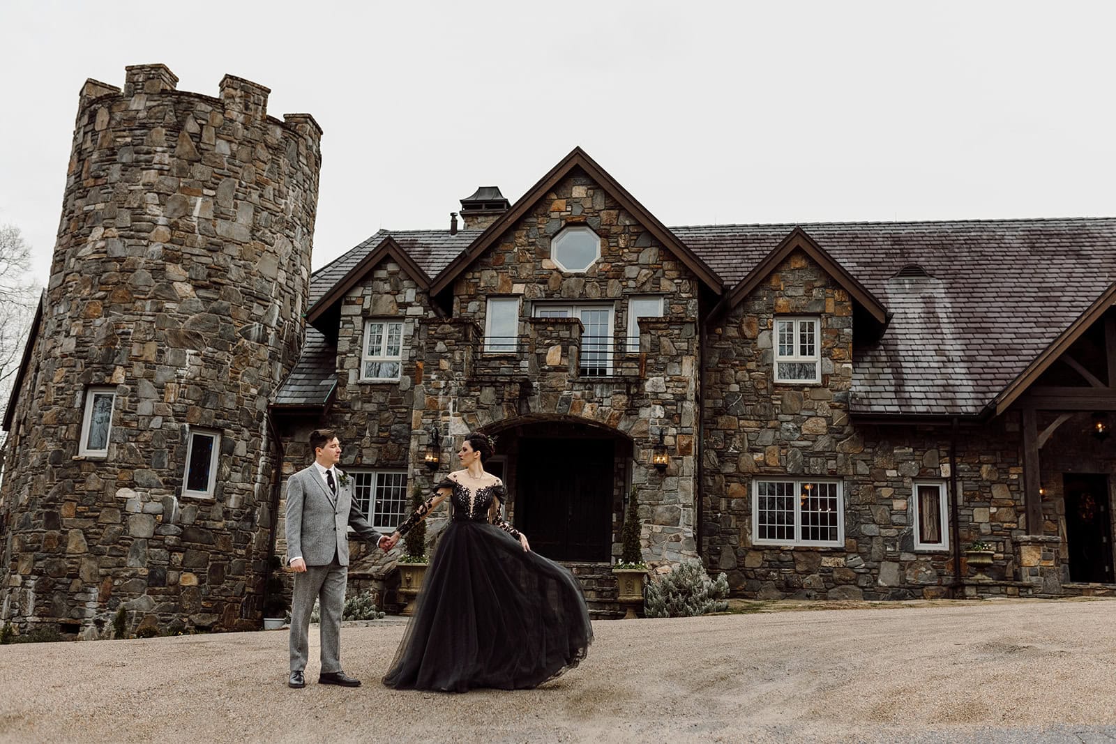 If you love a little whimsy, a lot of heart, and a castle straight out of a fairytale, Lisa and Gavin’s intimate December wedding at Castle Ladyhawke is going to steal your heart. Tucked away in Tuckasegee, NC, this magical celebration blended cozy winter vibes with personal details, playful gothic touches, and an unforgettable sense of fun. This wedding answers the age-old question: “What would it look like if JRR Tolkien married a Disney villain?”